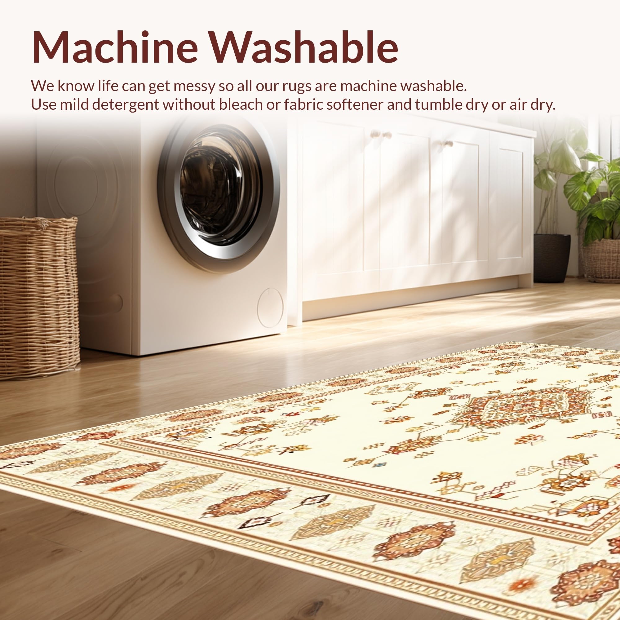 - Machine Washable: Our rugs can be easily thrown in the wash machine.