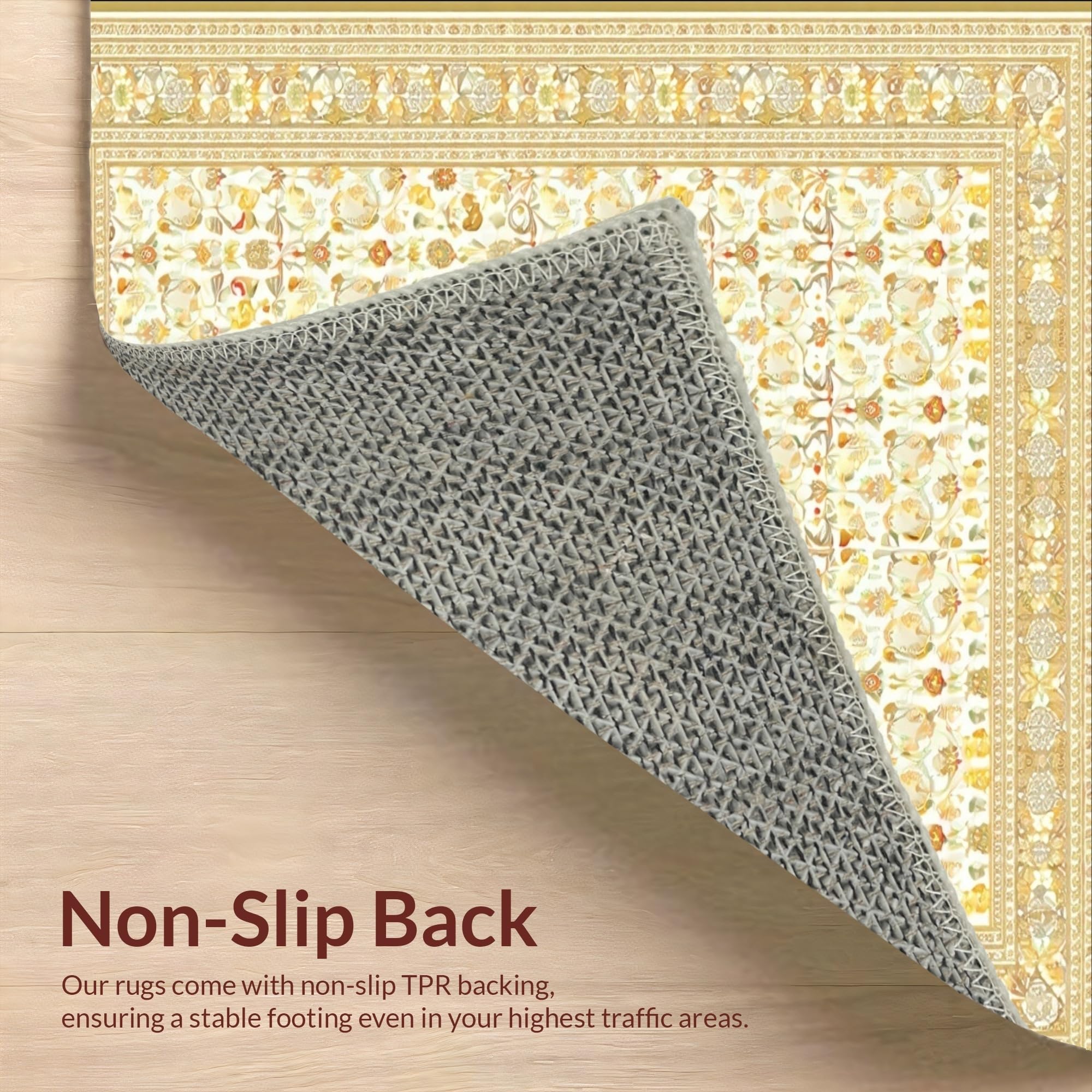 Ultra Soft Area Rug, Non Slip, Stain Resistant, Washable Area Rugs for Living Room, Bedroom, Boho Chic Beige Runner with a Paisley Inspired(Ivory) Overview: