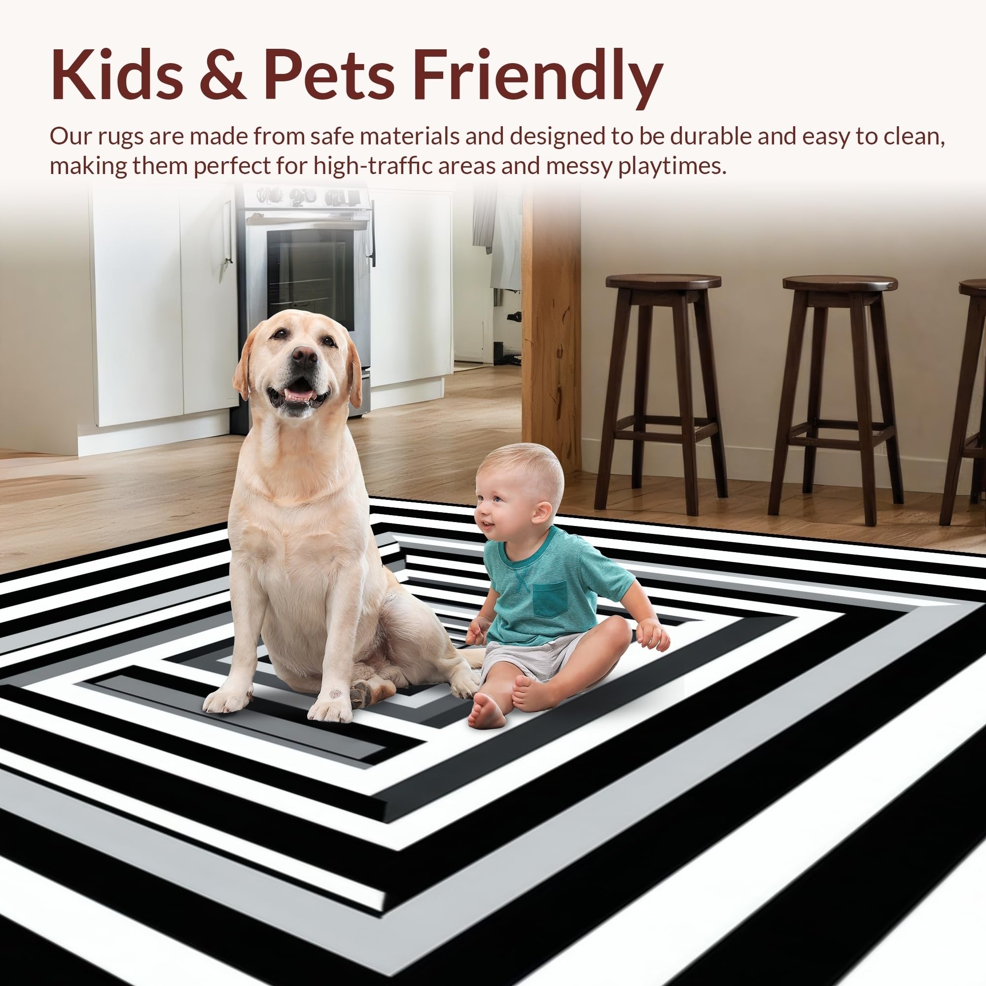 Ultra Soft Area Rug, Non Slip, Stain Resistant, Washable Area Rugs for Living Room, Bedroom, Boho Chic Black & White Checkered Area Modern Design(Black) Overview: