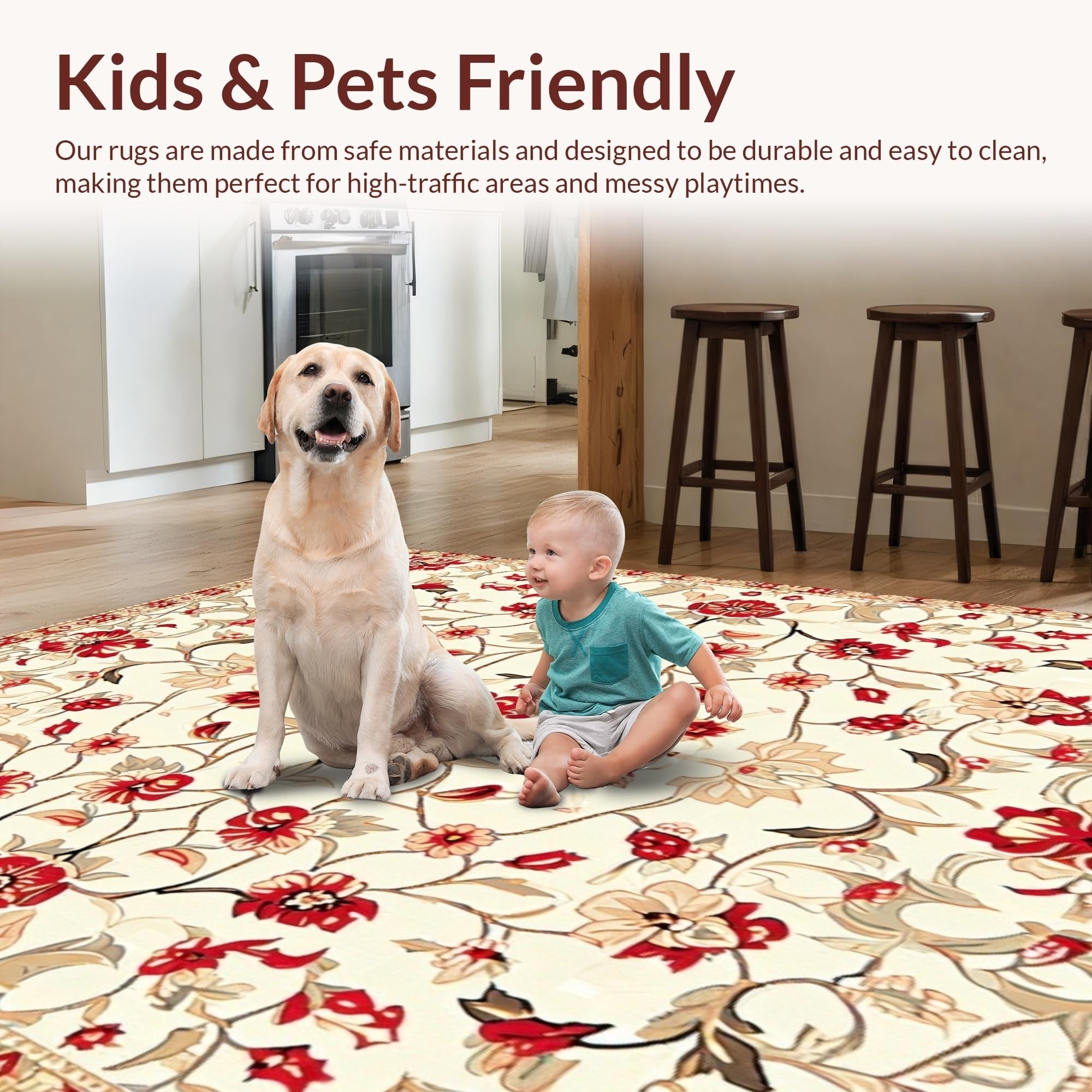 Ultra Soft Area Rug, Non Slip, Stain Resistant, Washable Area Rugs for Living Room, Bedroom, Boho Chic Floral Area Non Slip Kid Safe Low Pile(Beige) Overview: