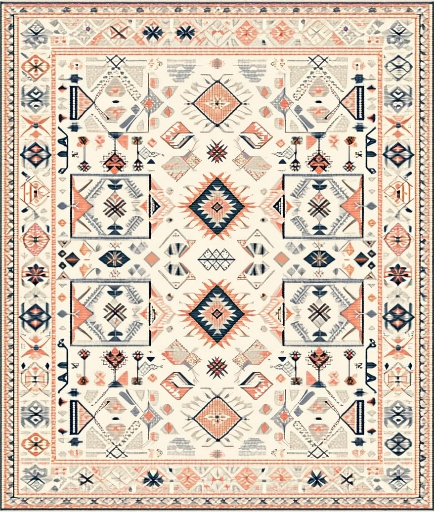 Ultra Soft Area Rug, Non Slip, Stain Resistant, Washable Area Rugs for Living Room, Bedroom, Boho Chic Geometric Area High Low Pile Style(Ivory) Overview: