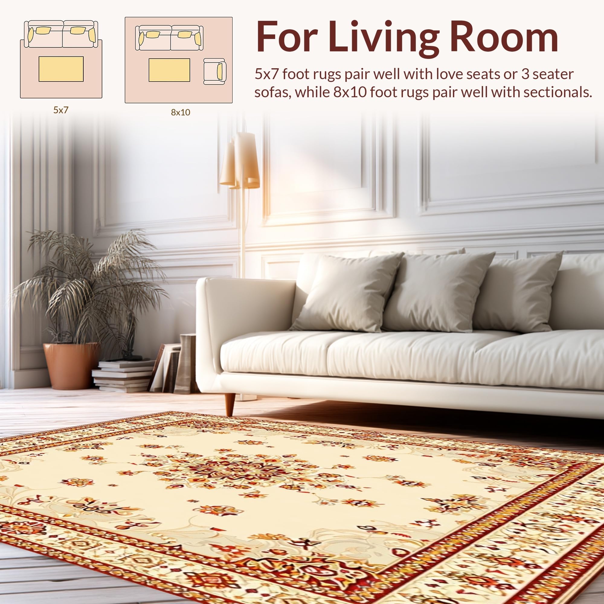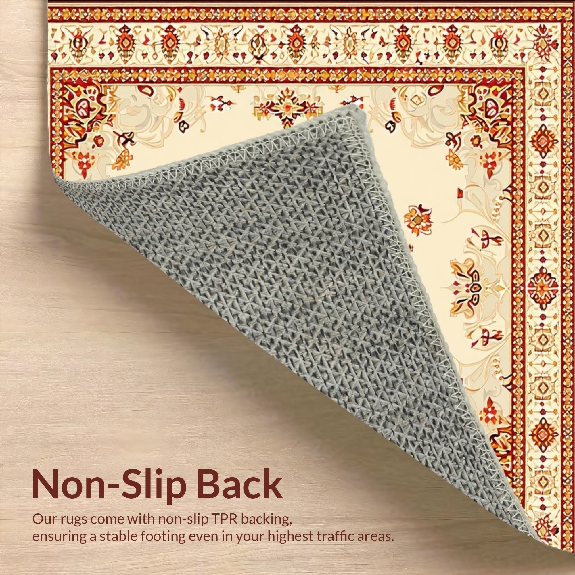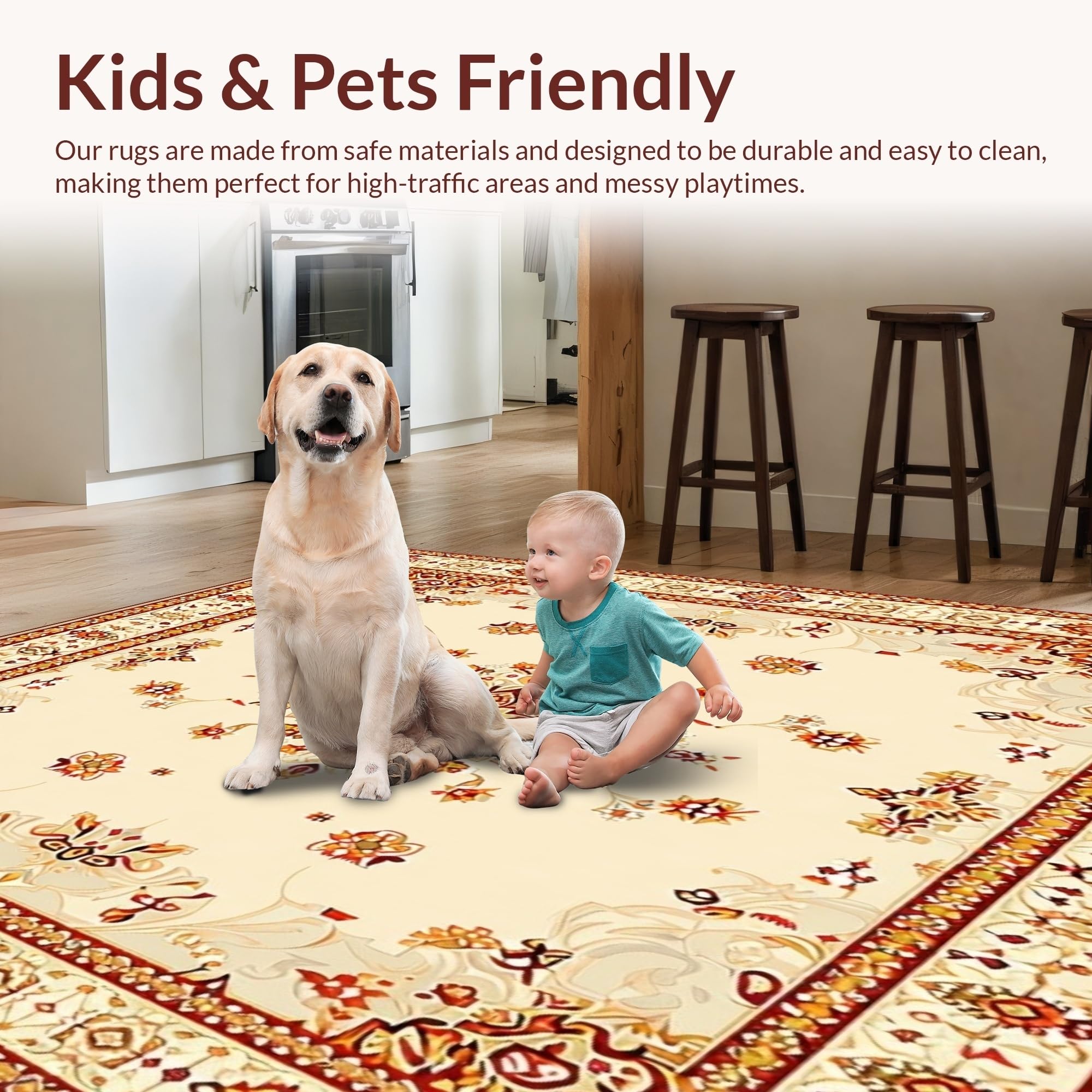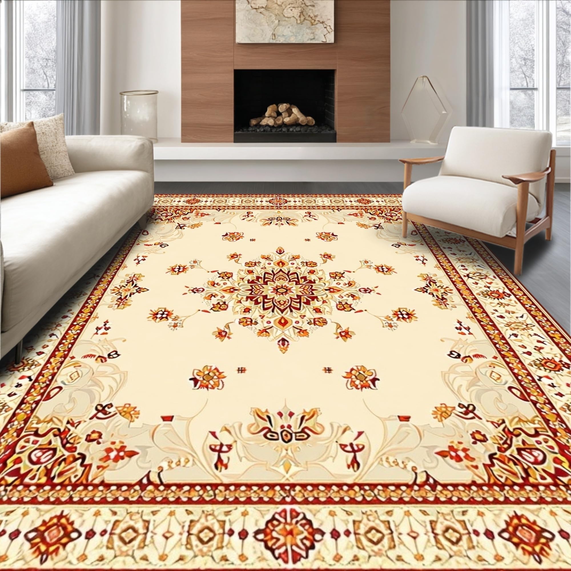 Ultra Soft Area Rug, Non Slip, Stain Resistant, Washable Area Rugs for Living Room, Bedroom, Boho Chic Medallion Area With Traditional Artisanal Elements(Beige) Overview: