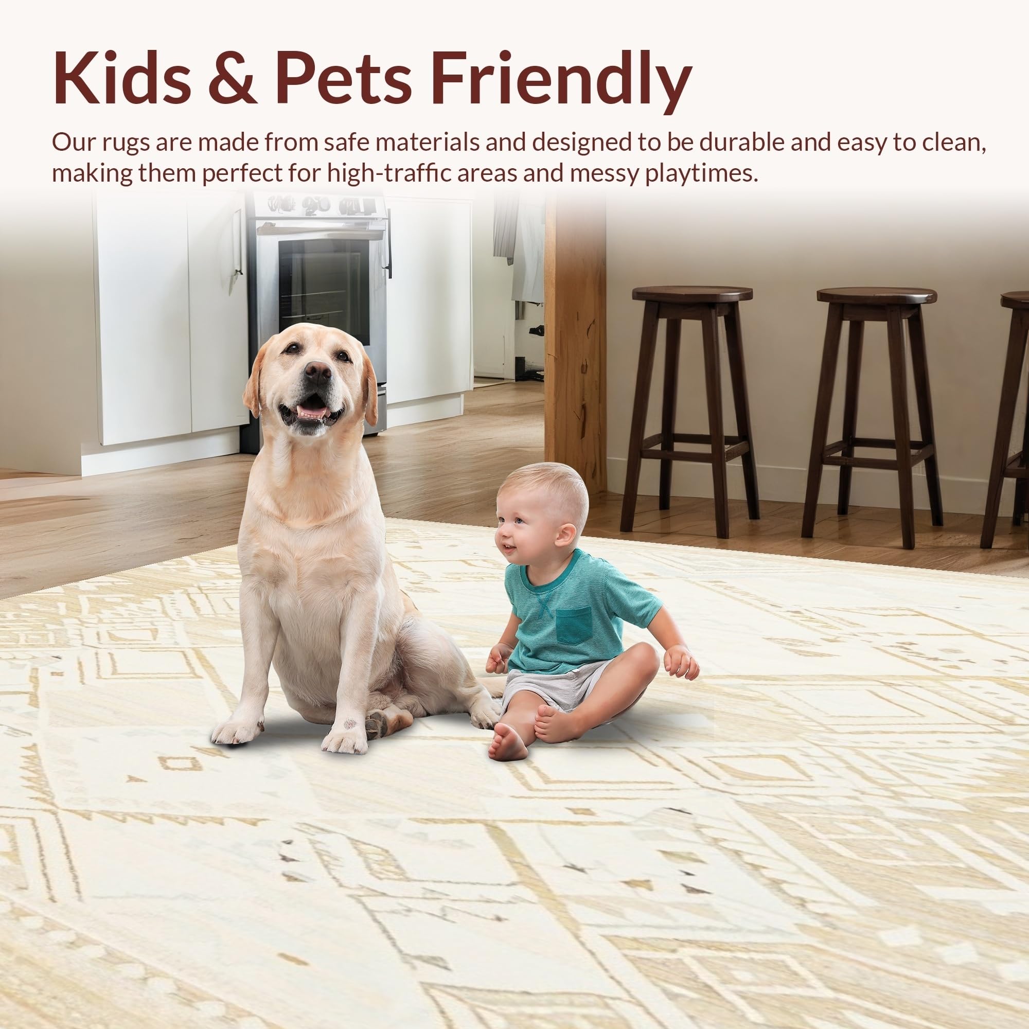 Ultra Soft Area Rug, Non Slip, Stain Resistant, Washable Area Rugs for Living Room, Bedroom, Boho Chic Neutral Toned Geometric Patterned Area For Modern Home(Beige) Overview: