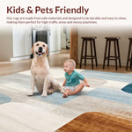 - Soft and Fluffy Comfort: This low pile rug is made from a faux cashmere texture, offering a smooth, soft touch that elevates any room. Ideal for areas where comfort matters without compromising on easy maintenance.
