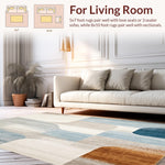 Ultra Soft Area Rug, Non Slip, Stain Resistant, Washable Area Rugs for Living Room, Bedroom, Boho Chic Neutral Tones with Blue Accents Abstract Art(Beige) Overview: