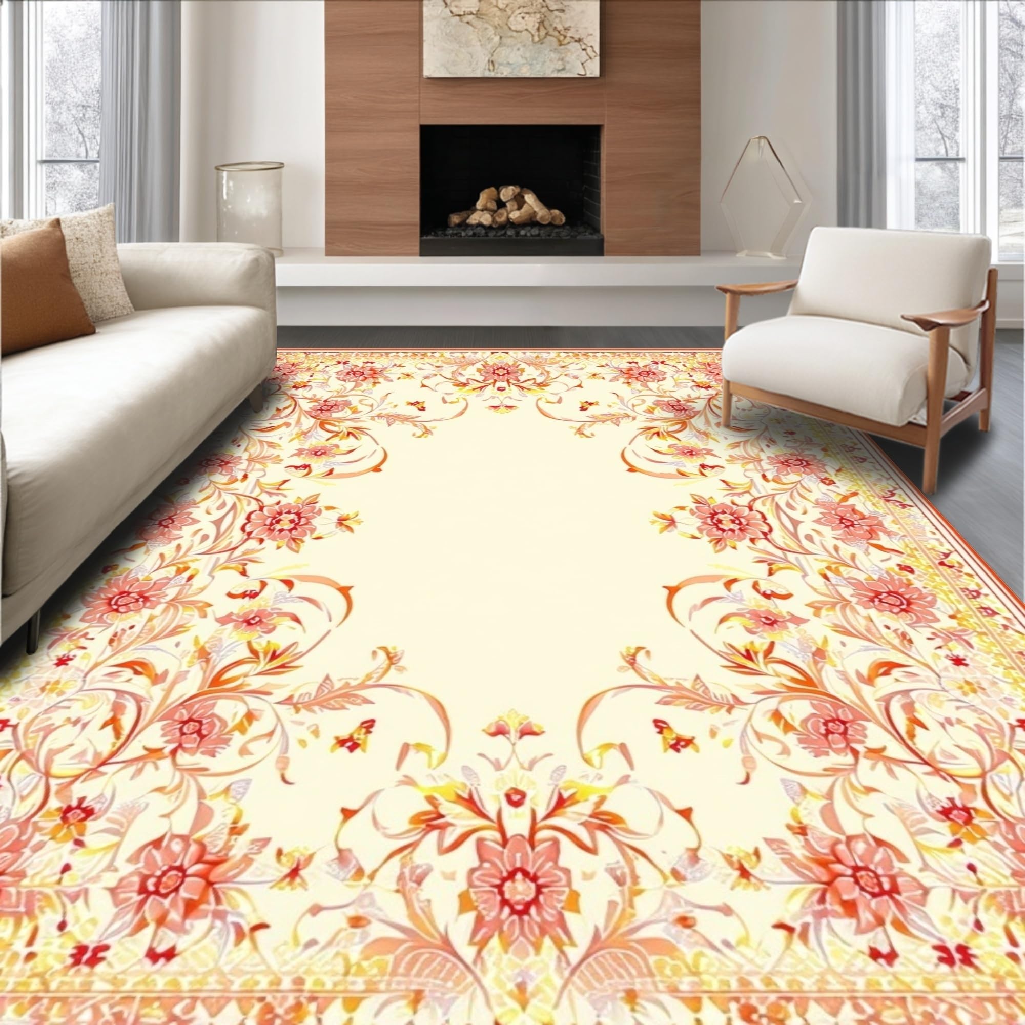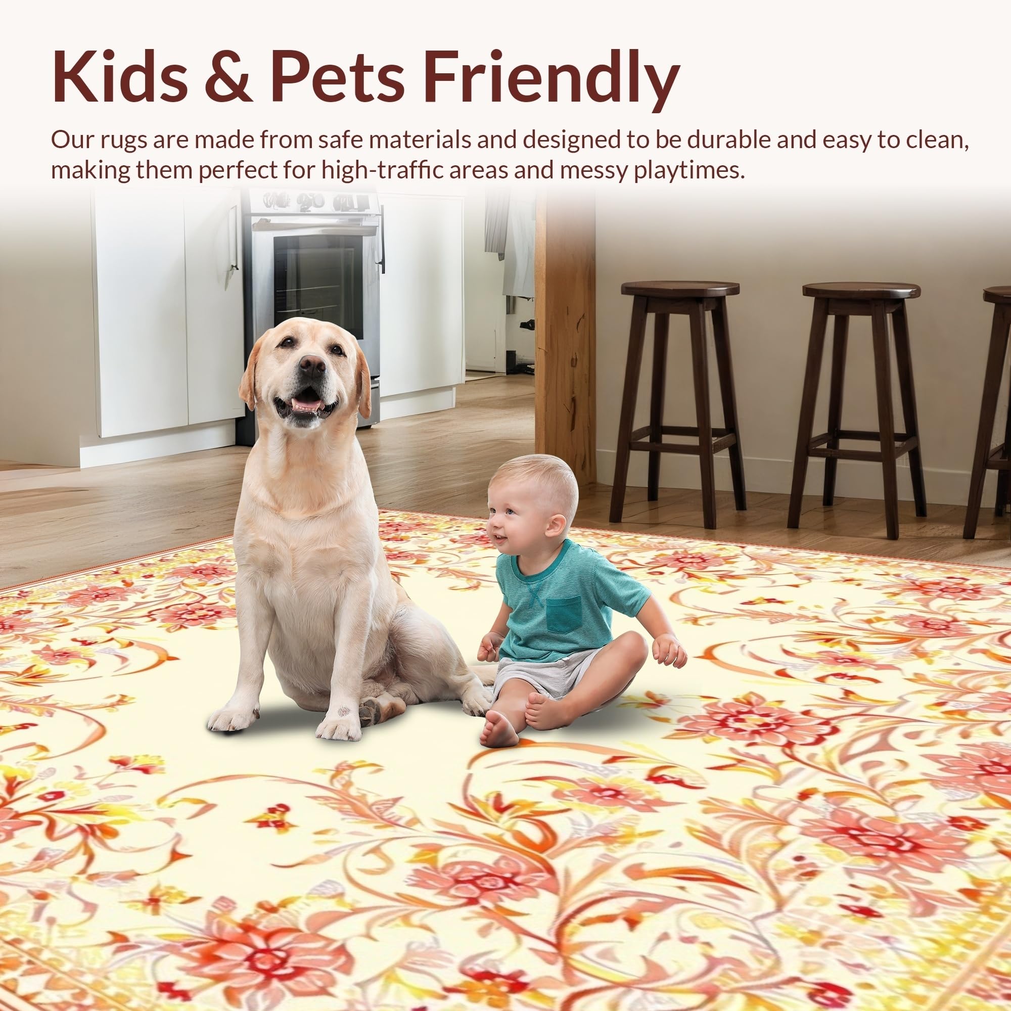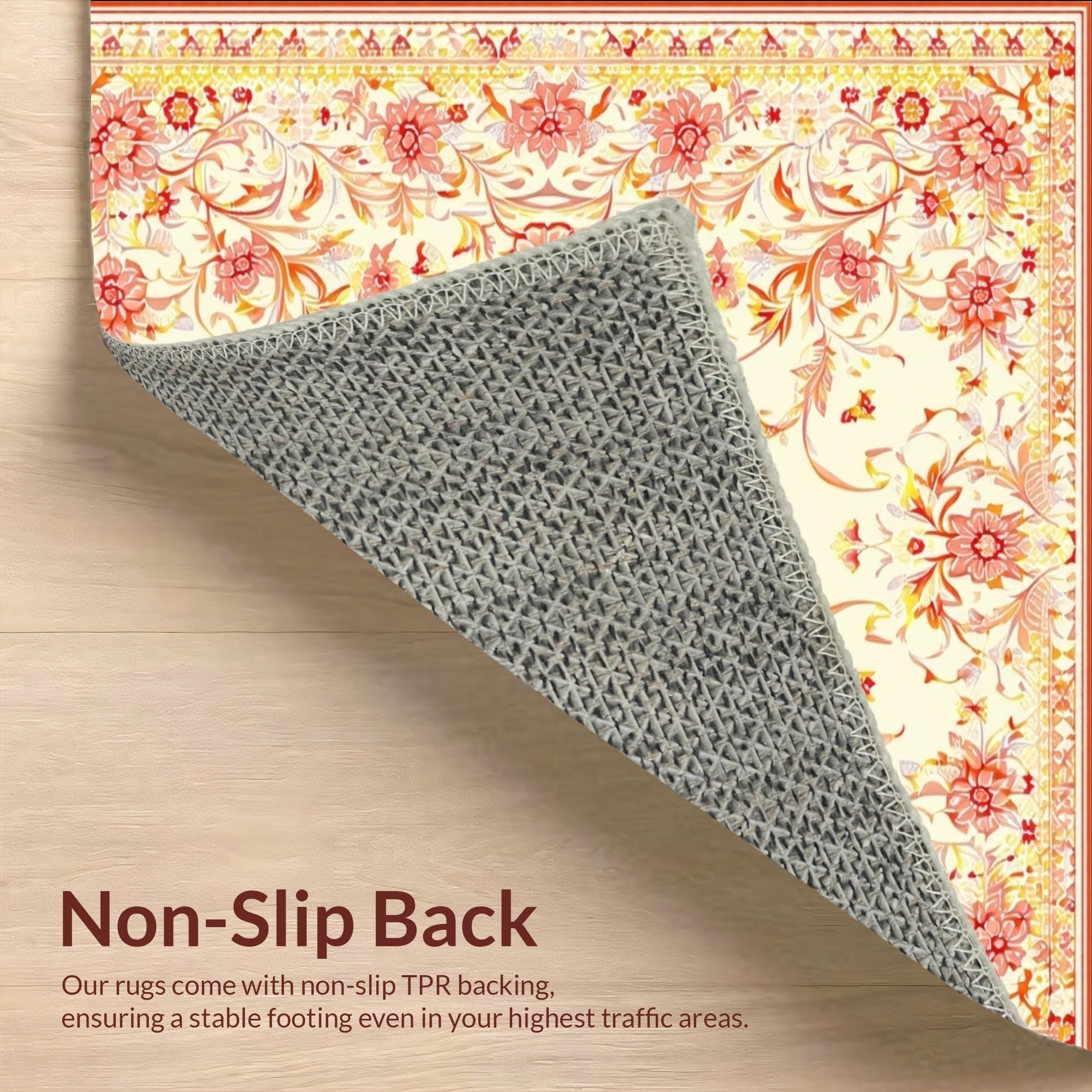 Ultra Soft Area Rug, Non Slip, Stain Resistant, Washable Area Rugs for Living Room, Bedroom, Boho Chic Sunset Inspired Orange and Cream(Ivory) Overview: