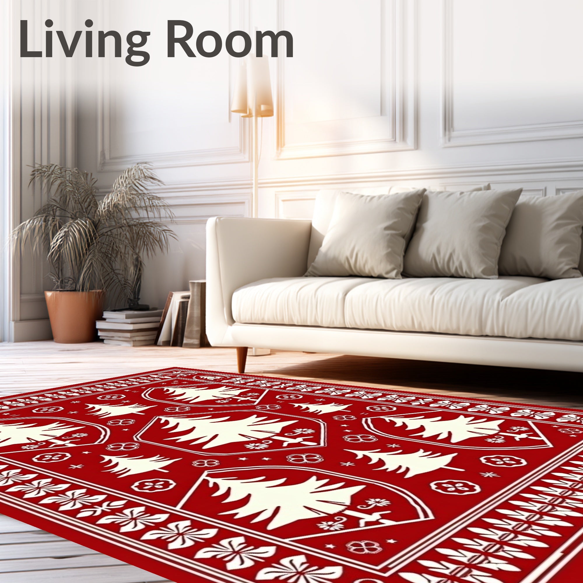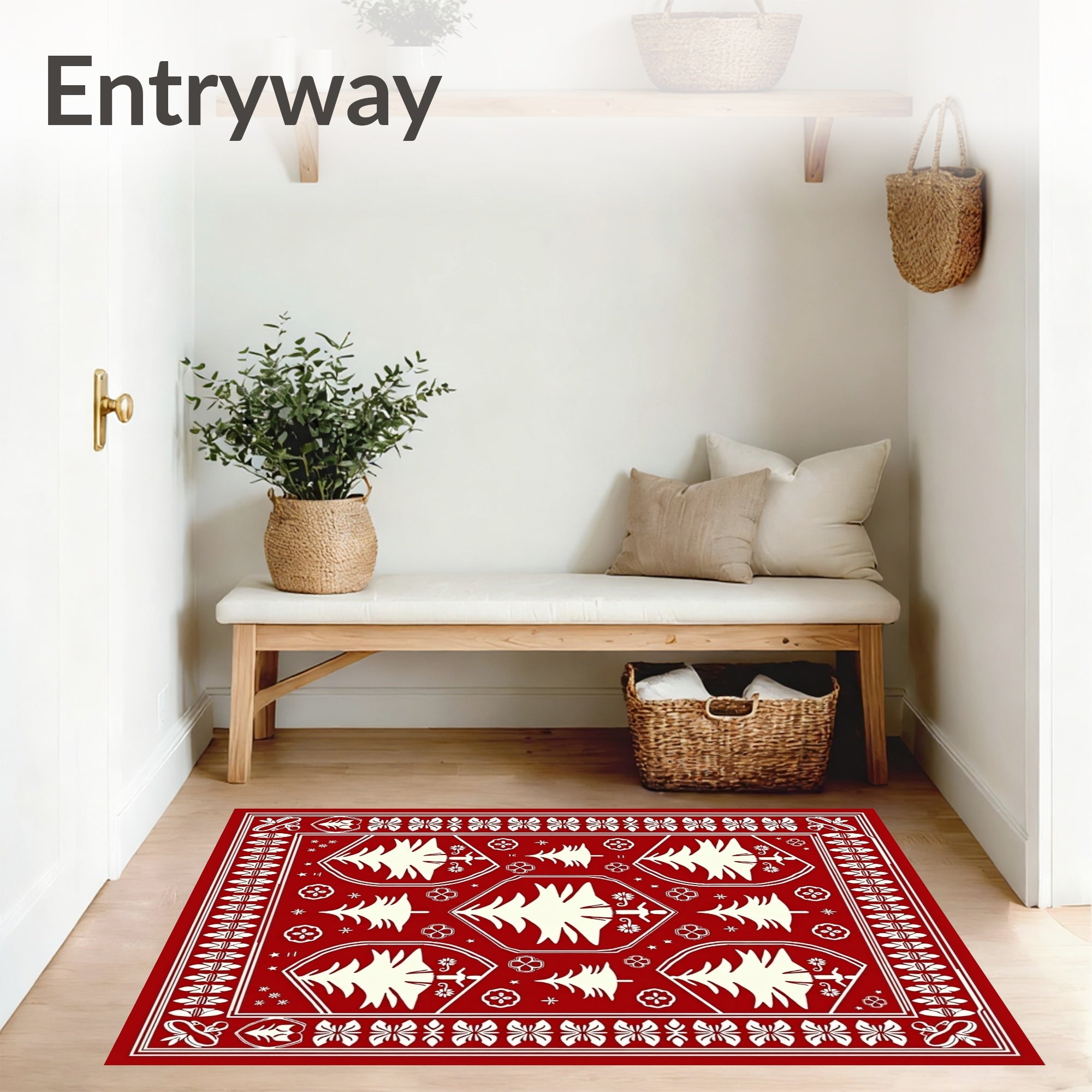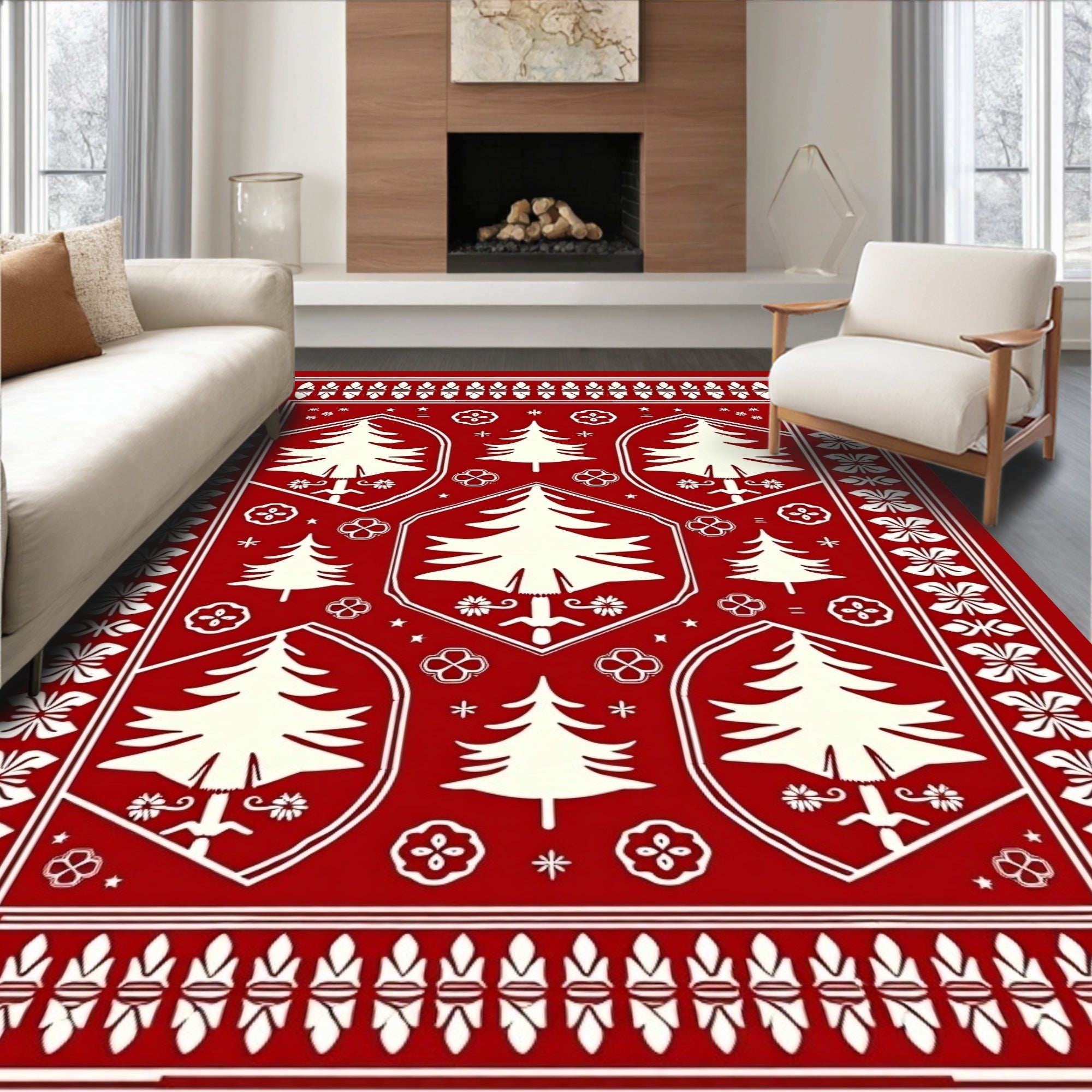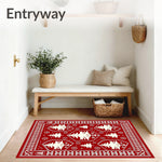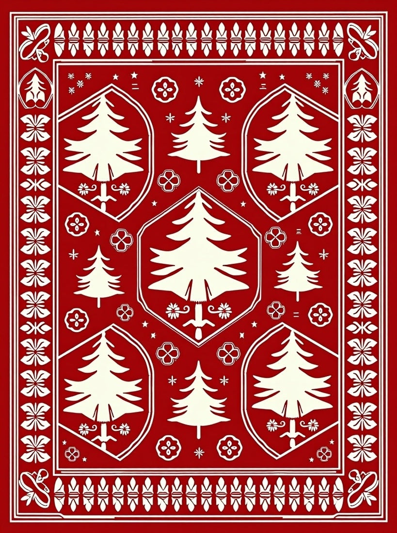Flatwoven High Traffic Area Rug, Boho Christmas Tree Medallion with Scandinavian Folk Art, Non Slip, Stain Resistant, Washable Area Rugs for Living Room, Bedroom (Red) Overview: