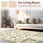 Ultra Soft Area Rug, Non Slip, Stain Resistant, Washable Area Rugs for Living Room, Bedroom, Boho Farmhouse Area Beige Sage Green Floral Print(Beige) Overview: