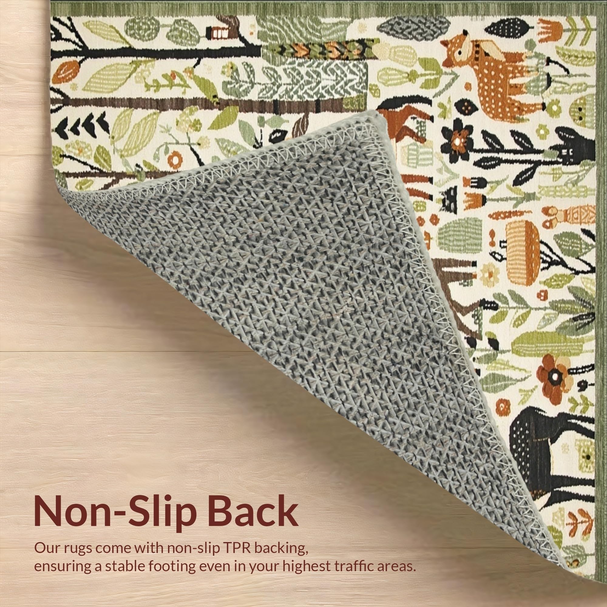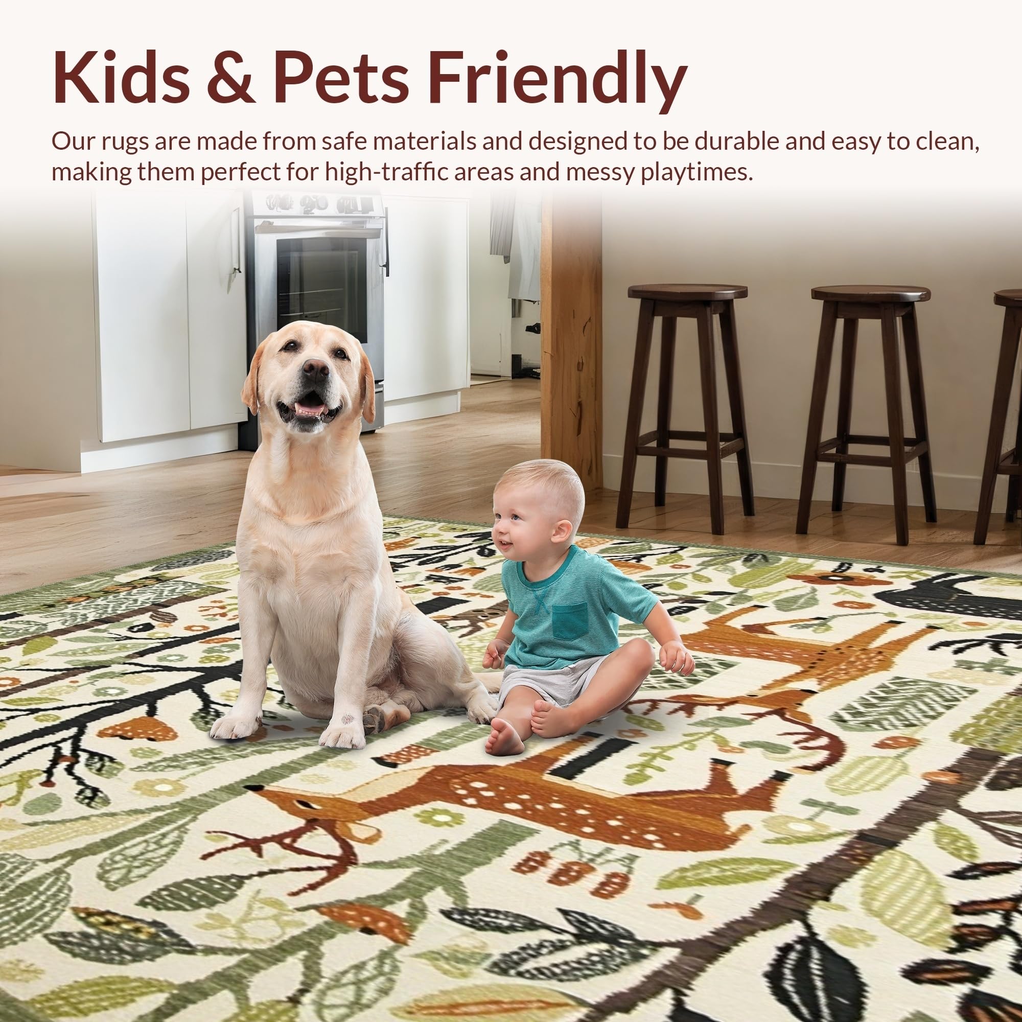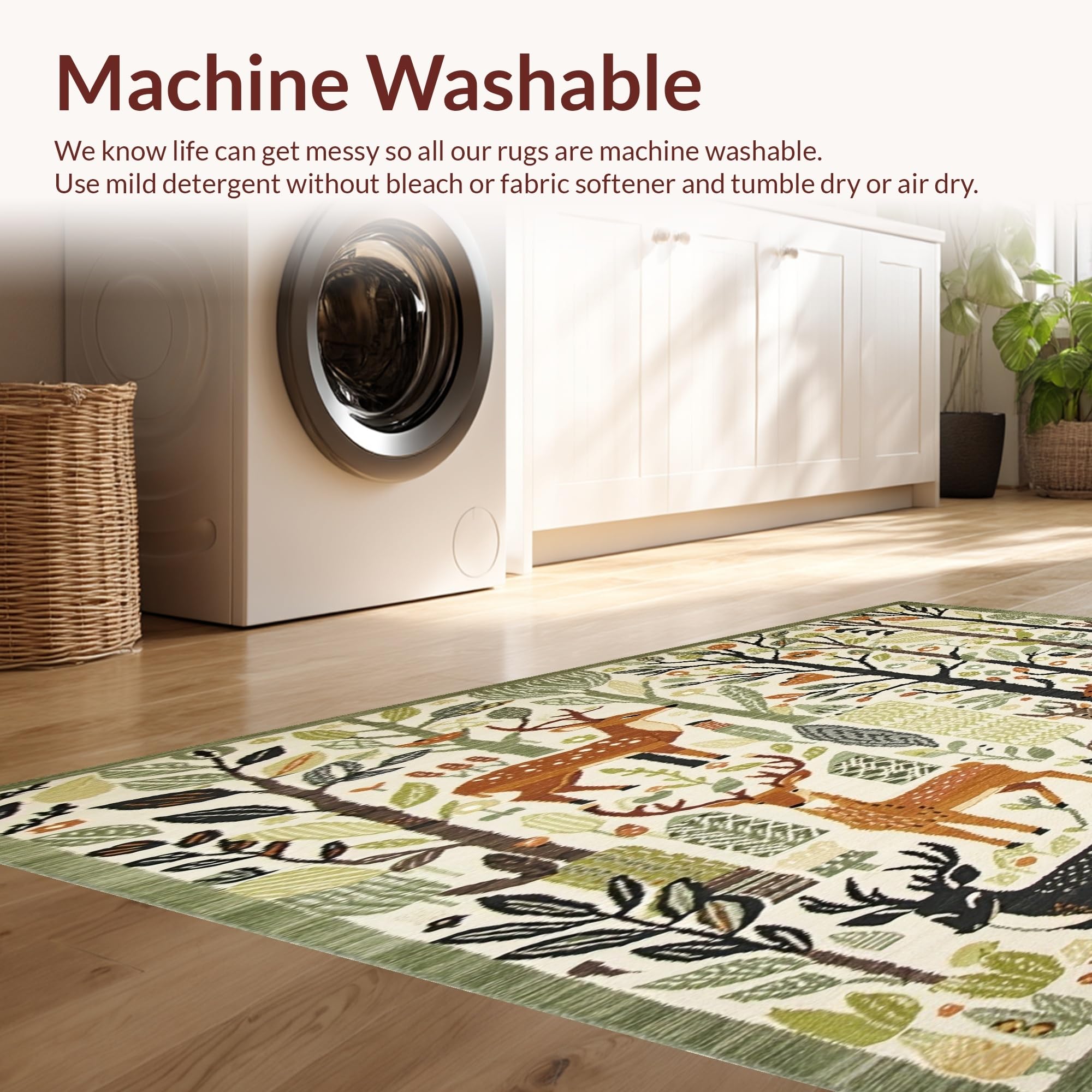 Ultra Soft Area Rug, Non Slip, Stain Resistant, Washable Area Rugs for Living Room, Bedroom, Boho Forest Friends(Beige) Overview: