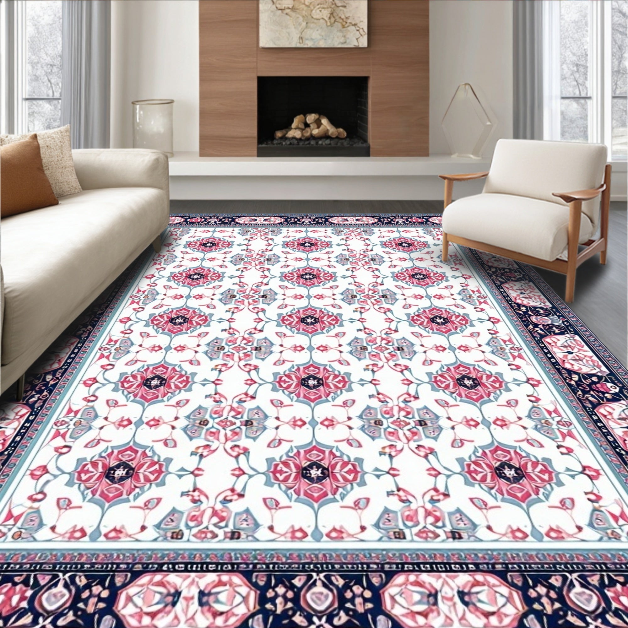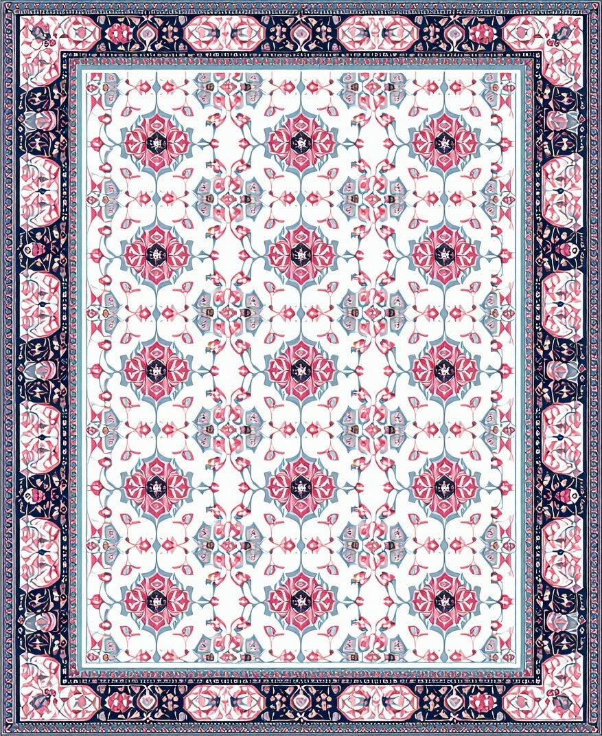 Flatwoven High Traffic Area Rug, Boho Geometric Blush and Sky, Non Slip, Stain Resistant, Washable Area Rugs for Living Room, Bedroom (White) Overview: