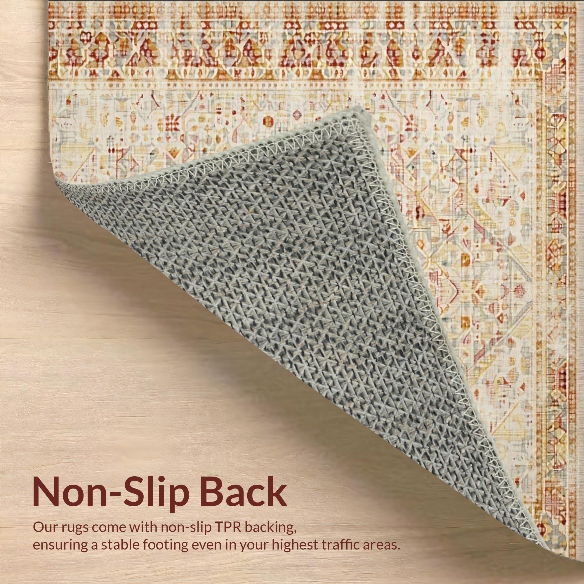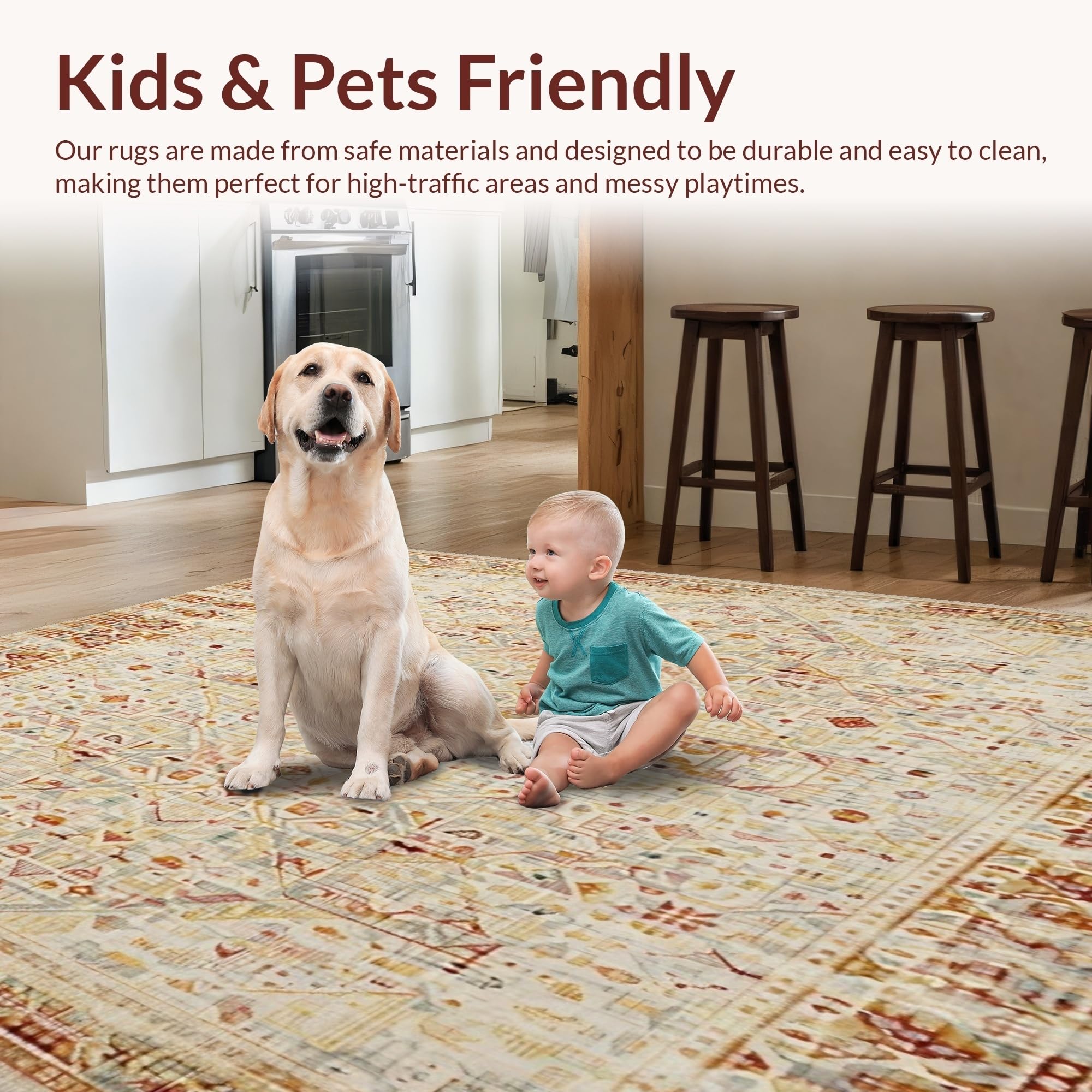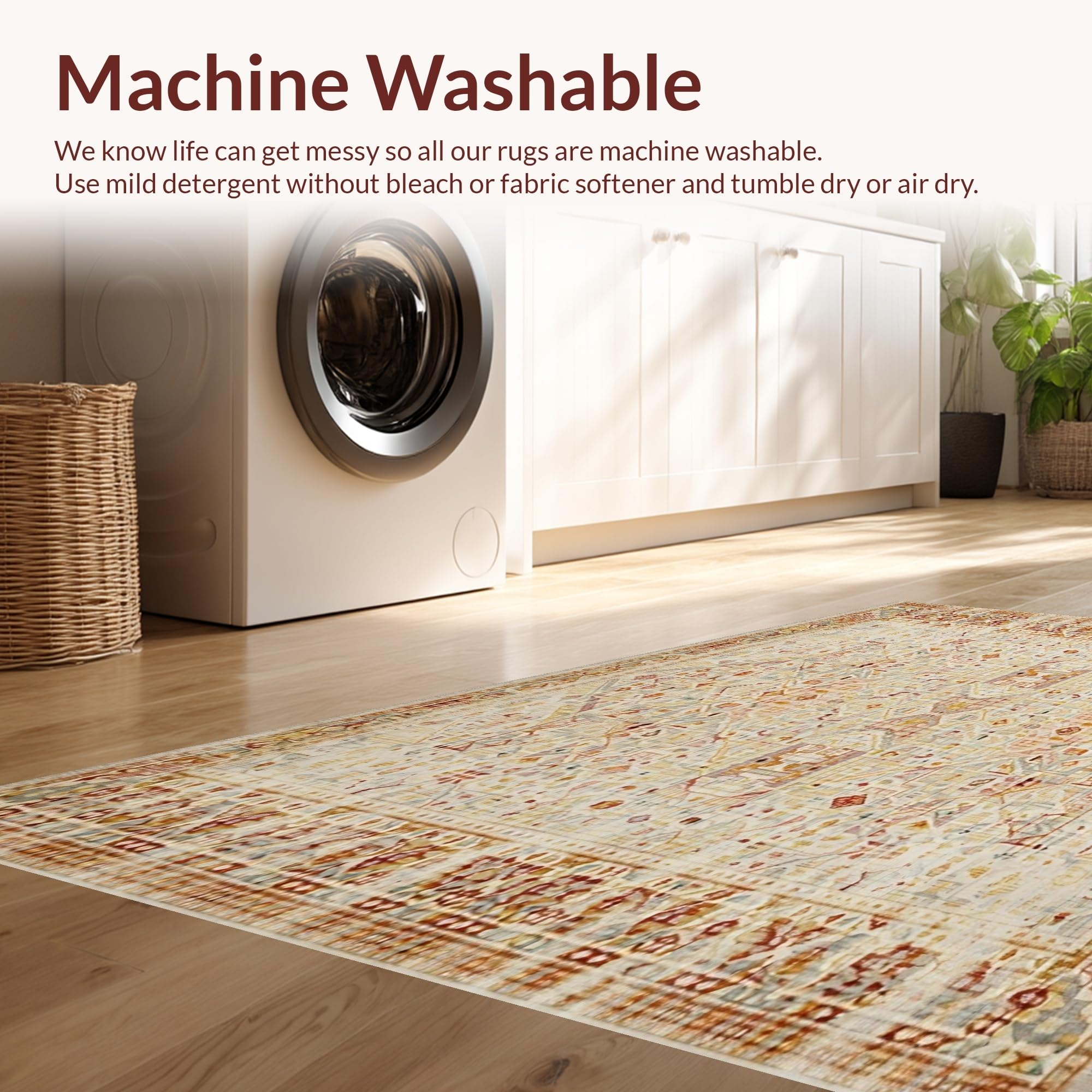 Ultra Soft Area Rug, Non Slip, Stain Resistant, Washable Area Rugs for Living Room, Bedroom, Boho Global with Beige and Earth Tones(Beige) Overview: