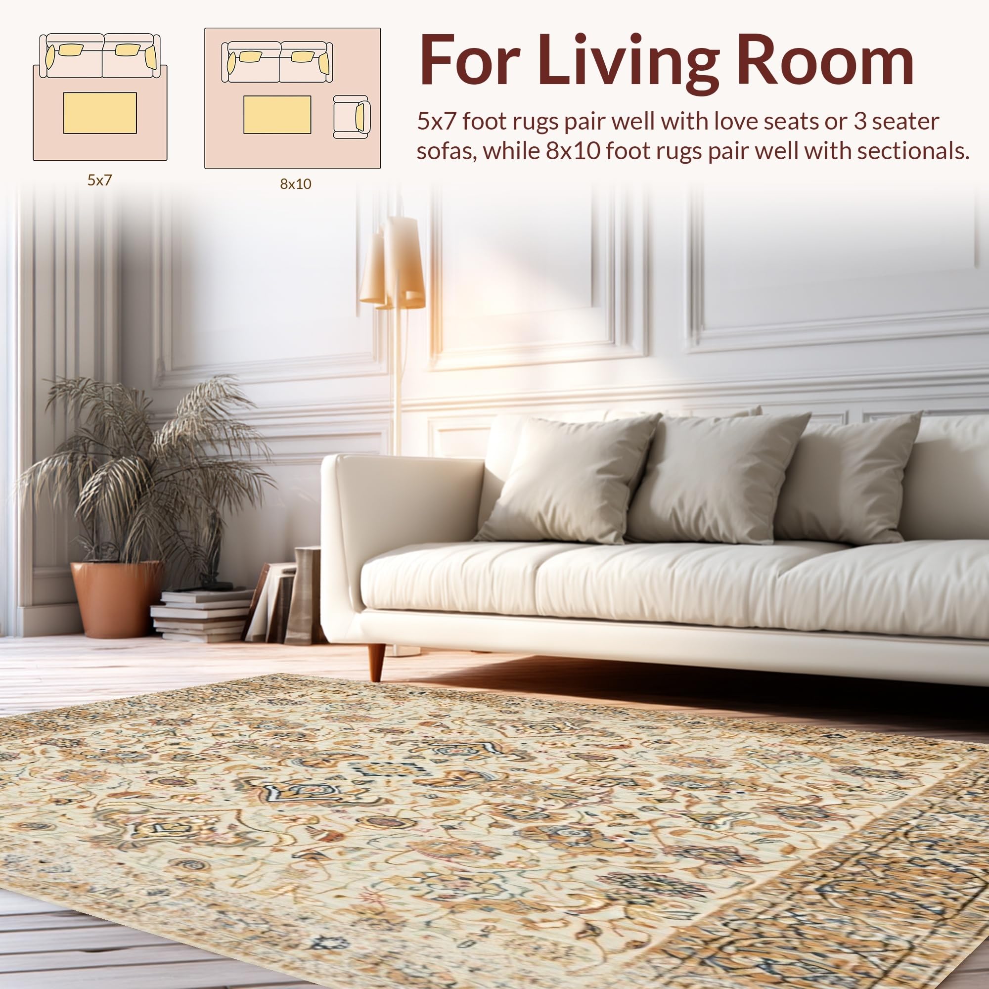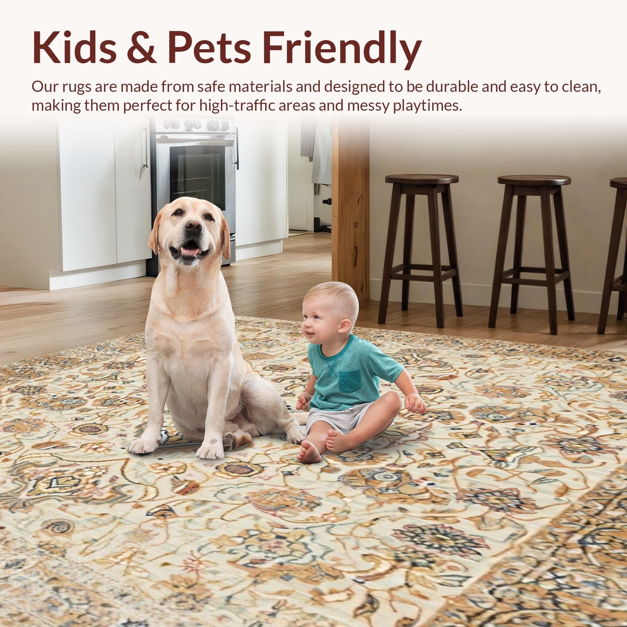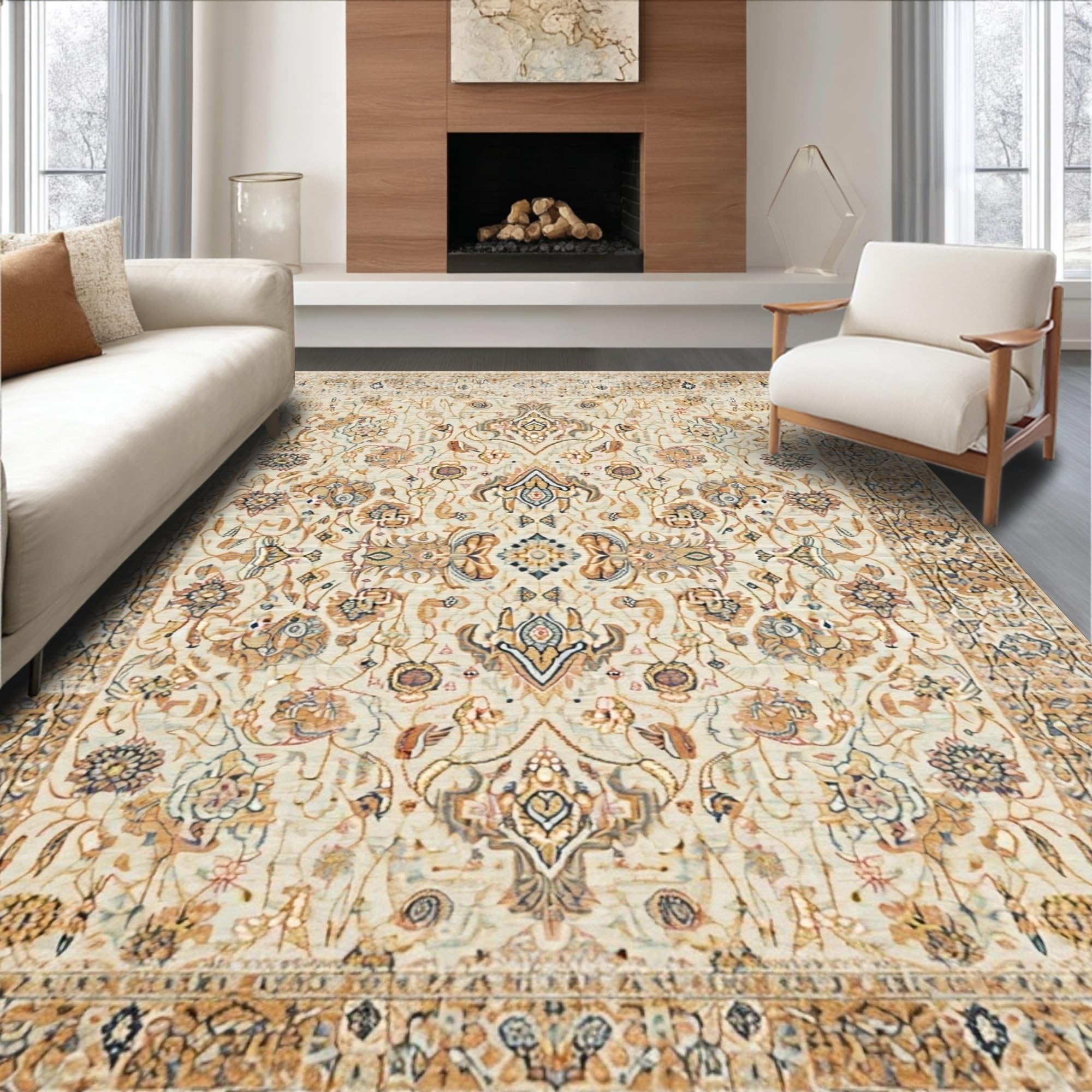Ultra Soft Area Rug, Non Slip, Stain Resistant, Washable Area Rugs for Living Room, Bedroom, Boho Inspired Area Textures(Beige) Overview: