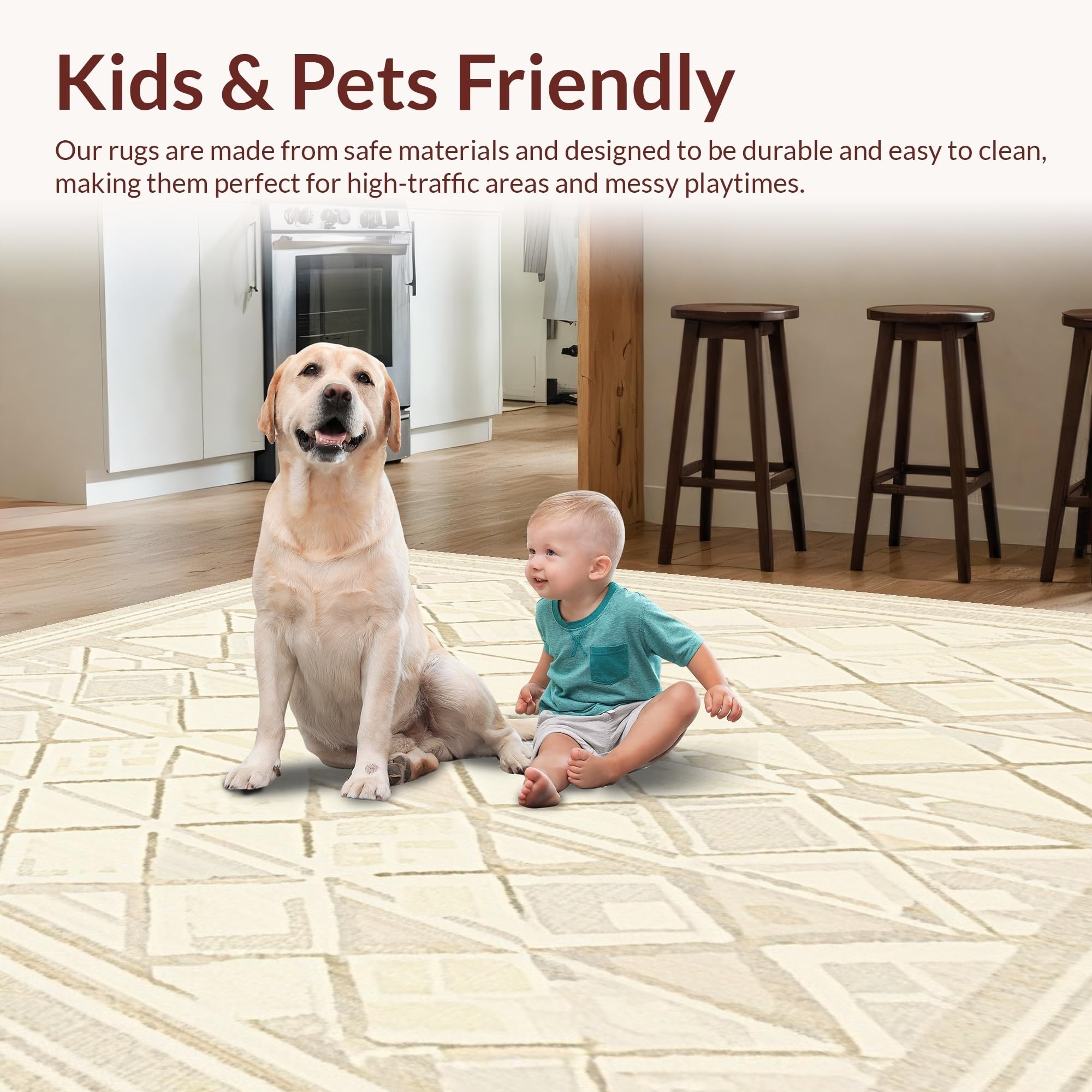 Ultra Soft Area Rug, Non Slip, Stain Resistant, Washable Area Rugs for Living Room, Bedroom, Boho Inspired Beige Area with Geometric Diamond Trellis(Beige) Overview: