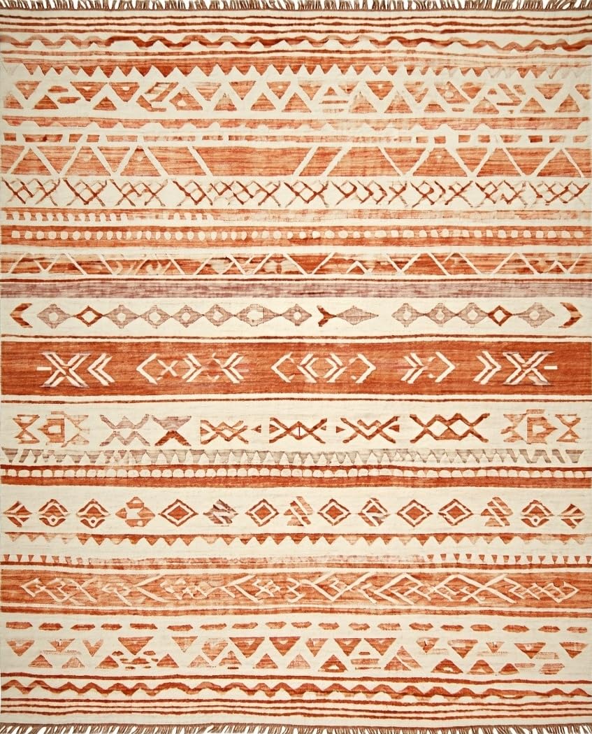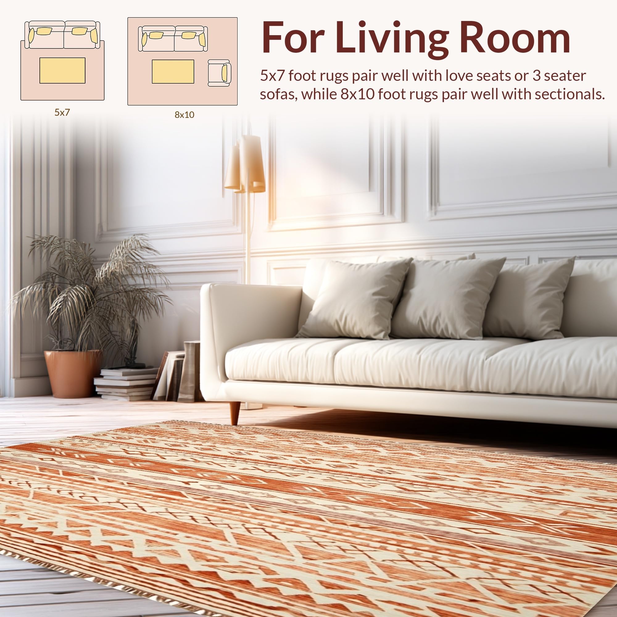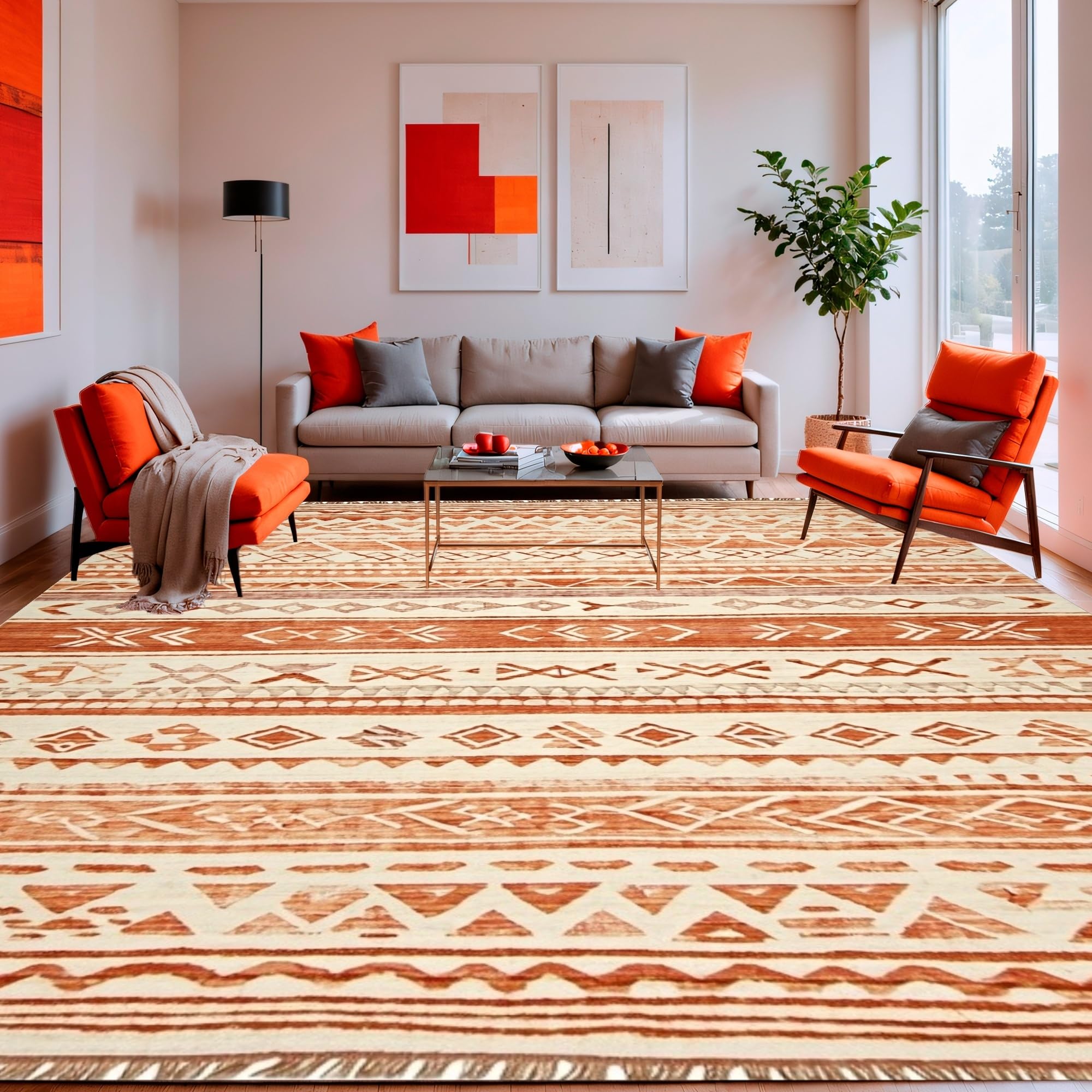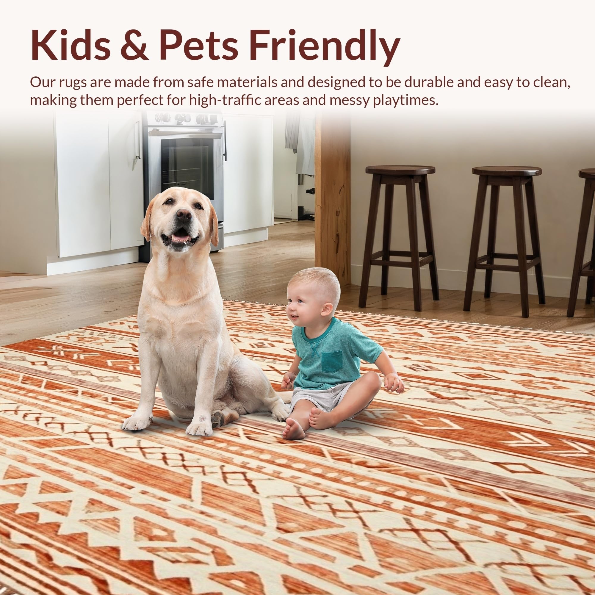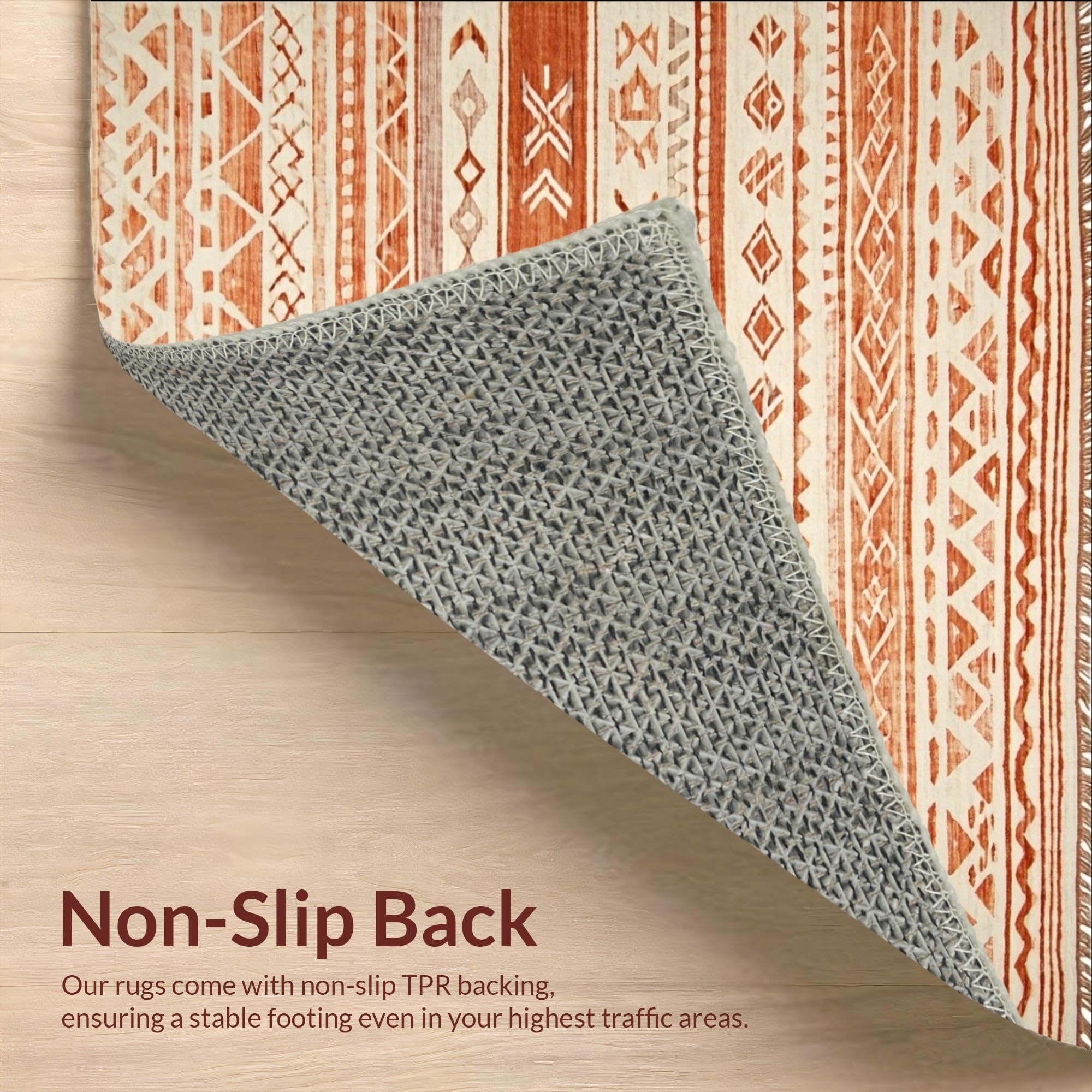 Ultra Soft Area Rug, Non Slip, Stain Resistant, Washable Area Rugs for Living Room, Bedroom, Boho Inspired Beige Runner With Artisanal Tribal Geometric Design(Orange) Overview: