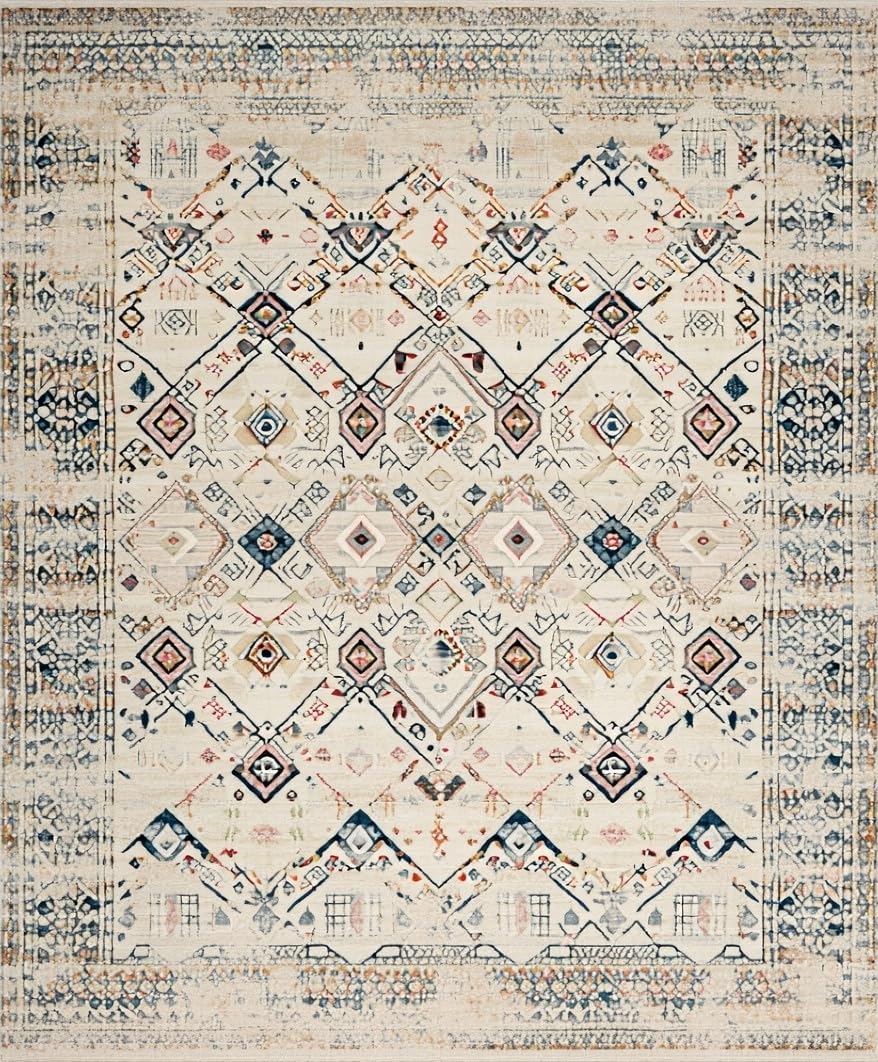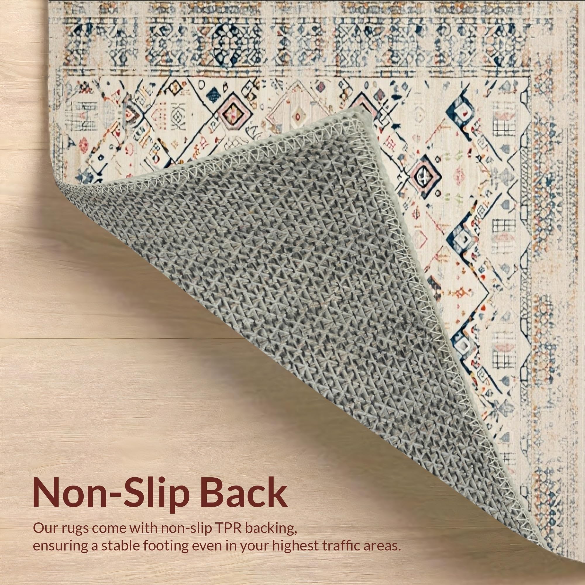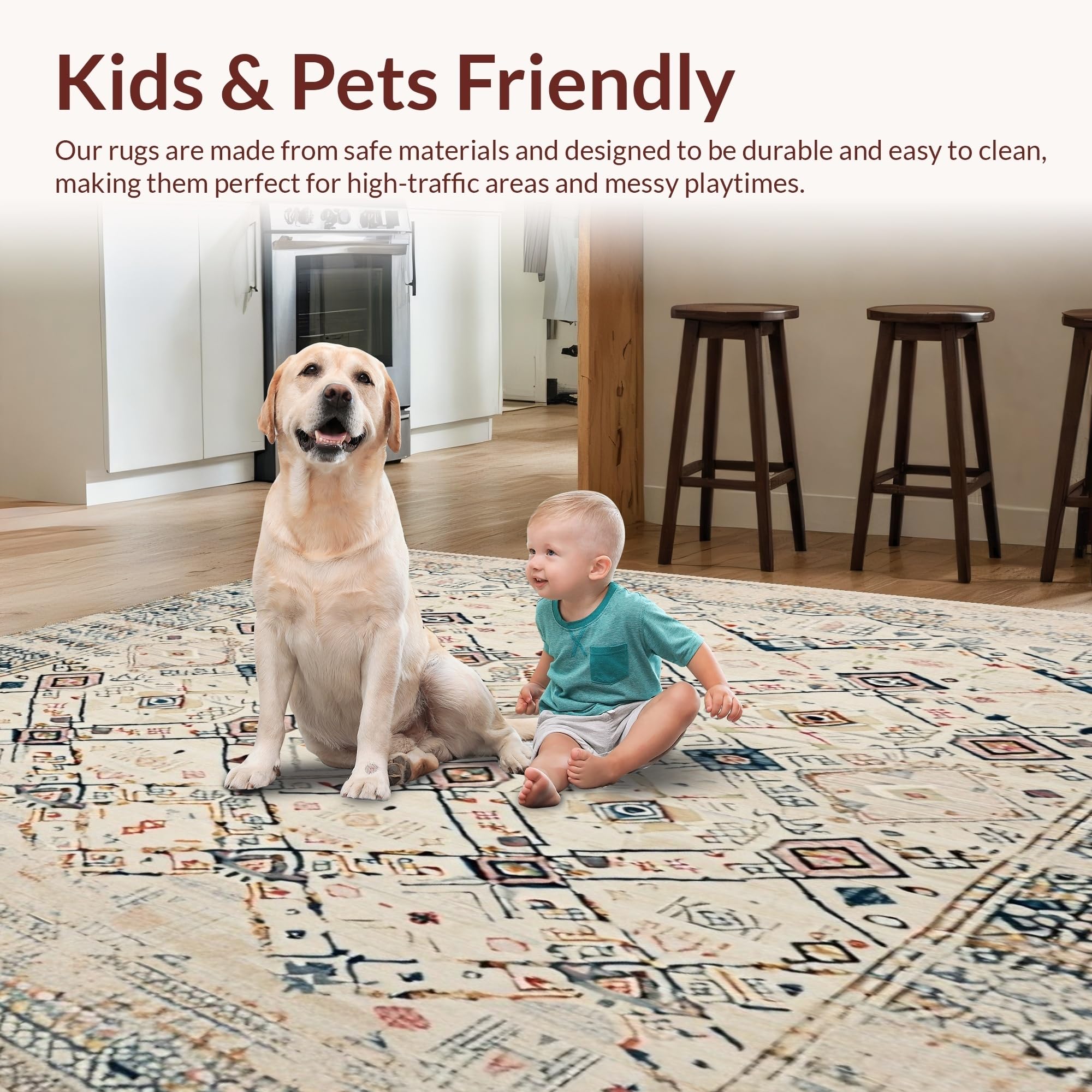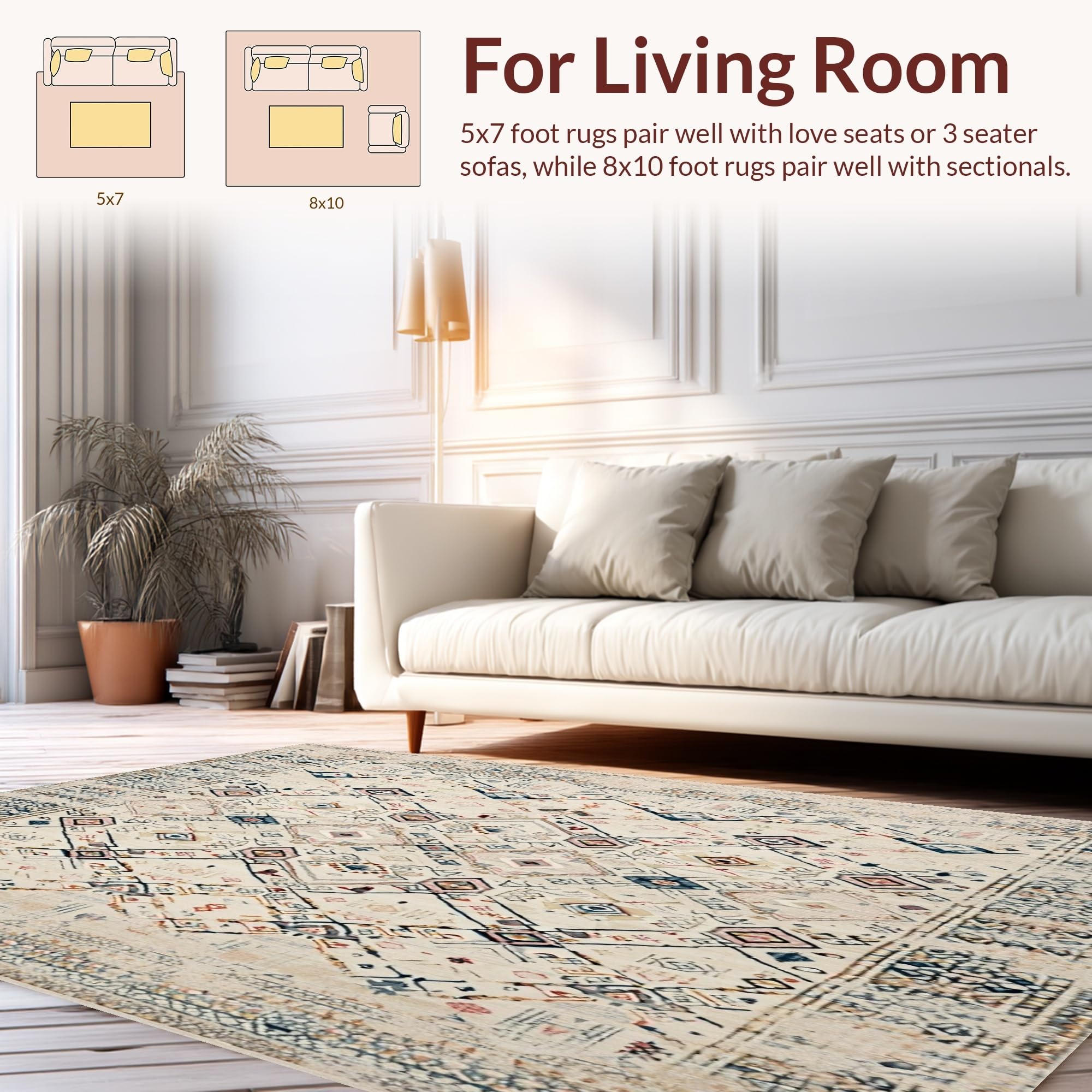 Ultra Soft Area Rug, Non Slip, Stain Resistant, Washable Area Rugs for Living Room, Bedroom, Boho Inspired Diamond Medallion Area with Raised Textural Elements(Beige) Overview: