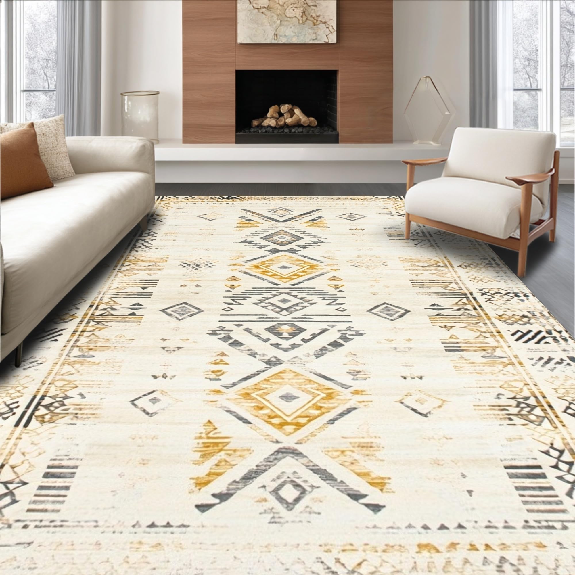 Ultra Soft Area Rug, Non Slip, Stain Resistant, Washable Area Rugs for Living Room, Bedroom, Boho Kitchen Floor Runner Non Slip Long for Hallways(Beige) Overview:
