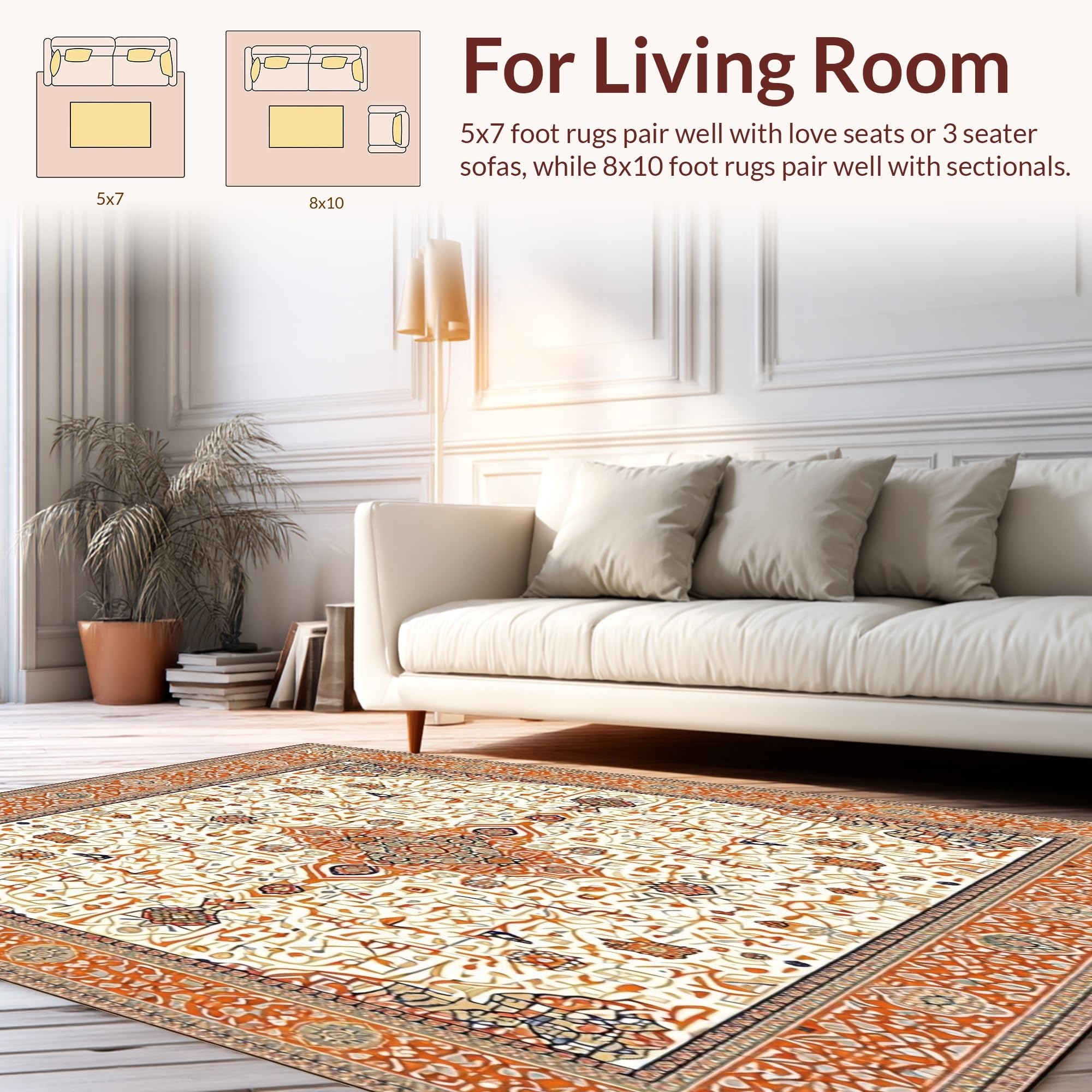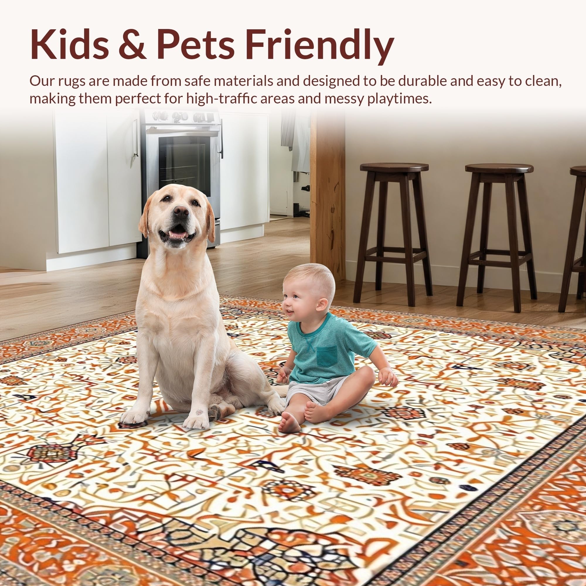 Ultra Soft Area Rug, Non Slip, Stain Resistant, Washable Area Rugs for Living Room, Bedroom, Boho Medallion Artistic Geometric Accent for Decor(Ivory) Overview:
