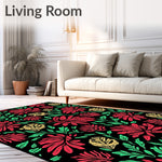 Ultra Soft Area Rug, Non Slip, Stain Resistant, Washable Area Rugs for Living Room, Bedroom, Boho Nordic Pinecone Mosaic with Festive Botanical Accents(Red) Overview: