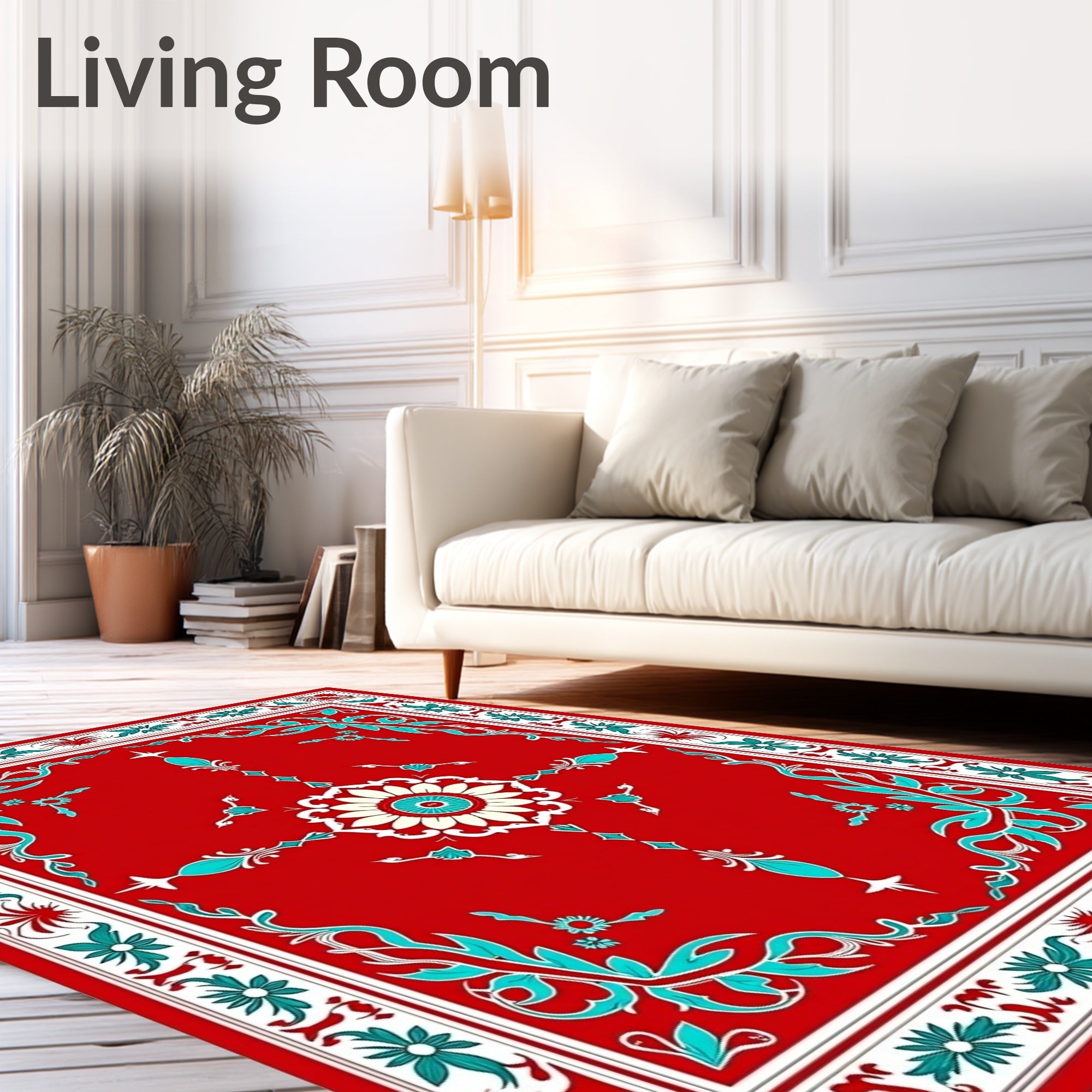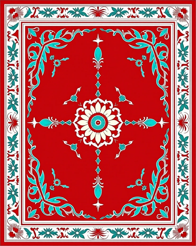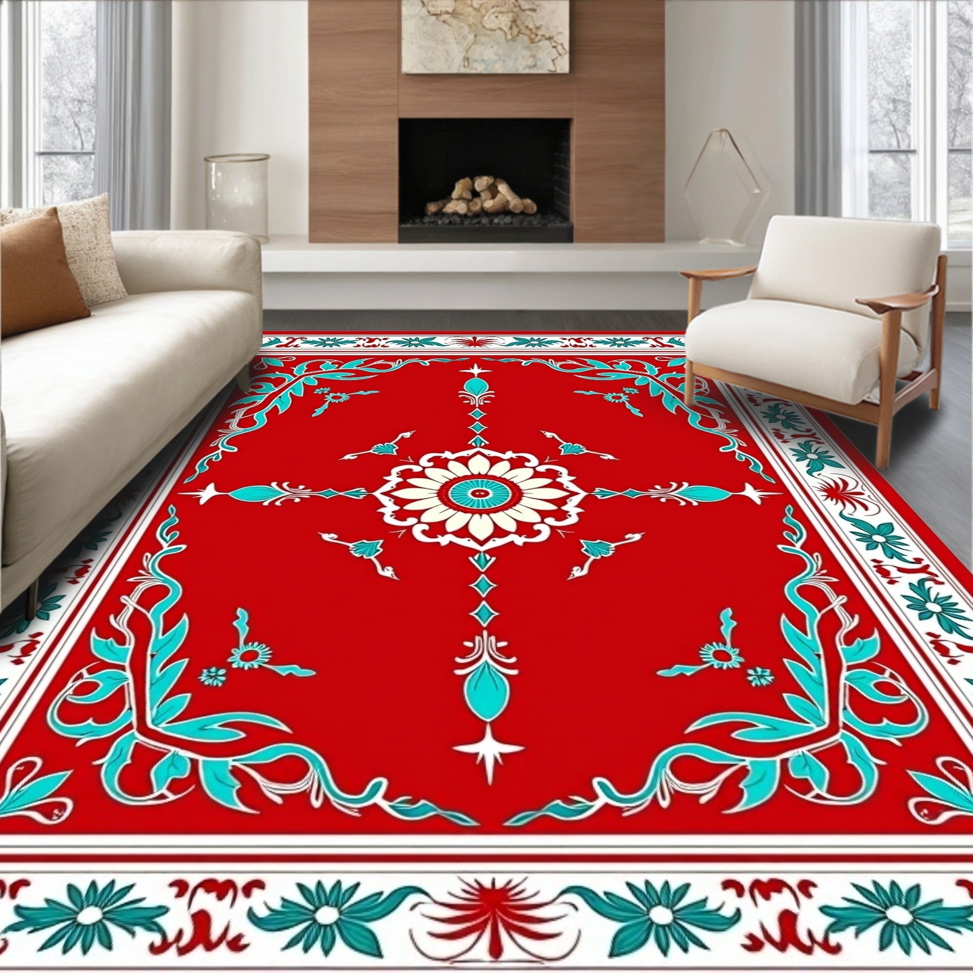 Ultra Soft Area Rug, Non Slip, Stain Resistant, Washable Area Rugs for Living Room, Bedroom, Boho Ornament Motifs with Festive Flourishes(Red) Overview: