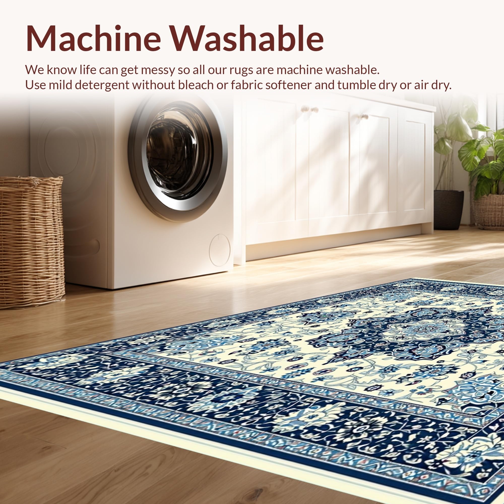 - Machine Washable: Our rugs can be easily thrown in the wash machine.