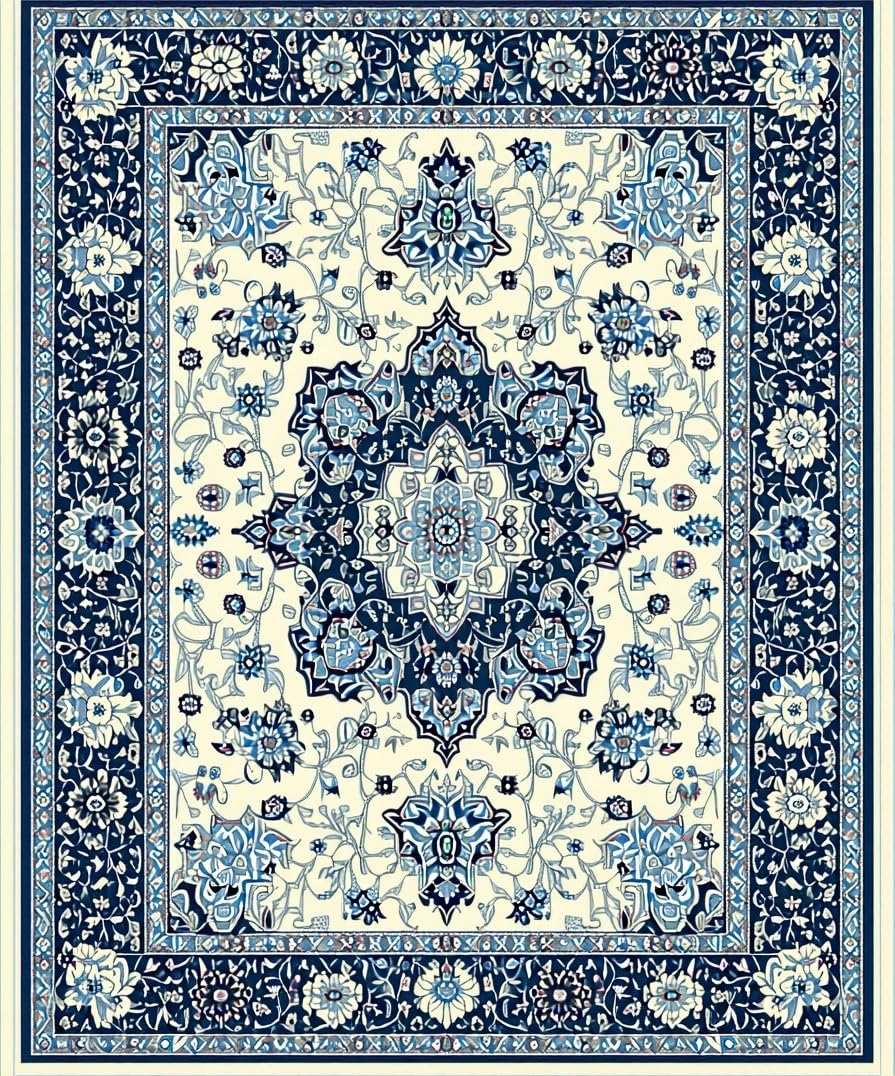 Ultra Soft Area Rug, Non Slip, Stain Resistant, Washable Area Rugs for Living Room, Bedroom, Boho Oval Floral Rhapsody(White) Overview: