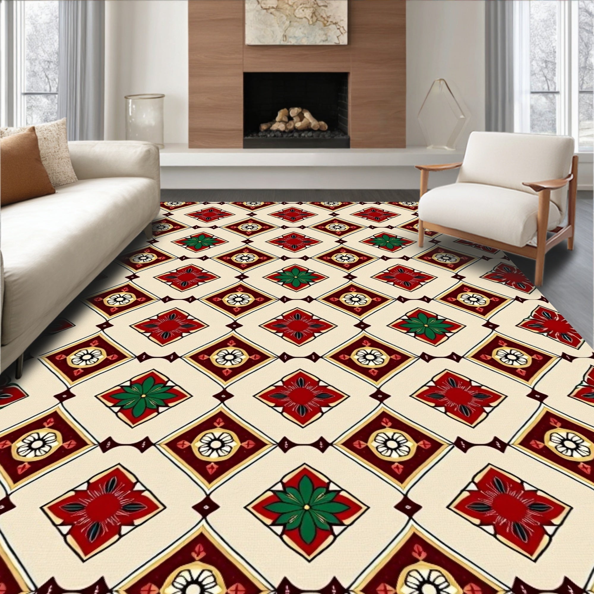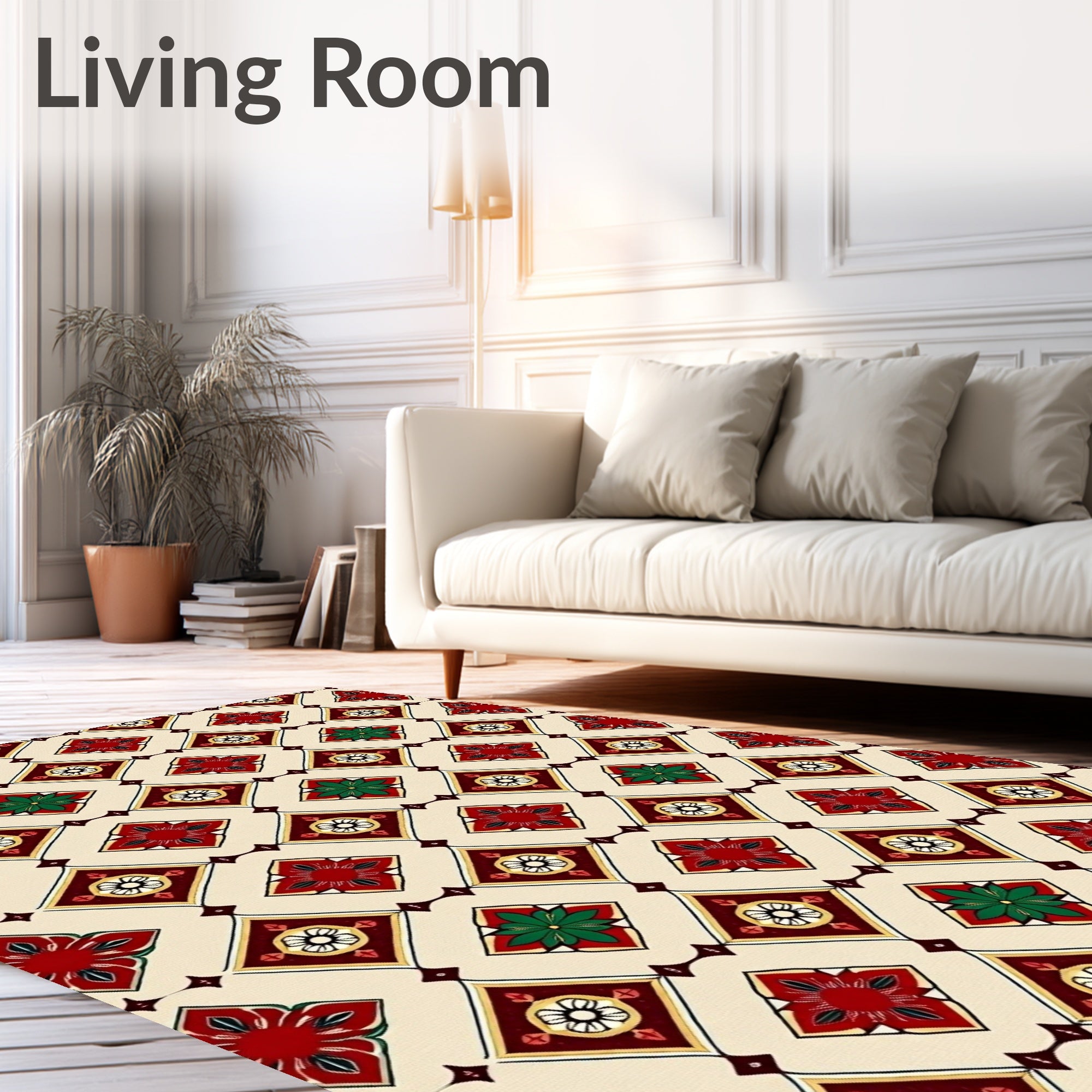 Ultra Soft Area Rug, Non Slip, Stain Resistant, Washable Area Rugs for Living Room, Bedroom, Boho Patchwork with Interlocking Floral and Designs(Beige) Overview: