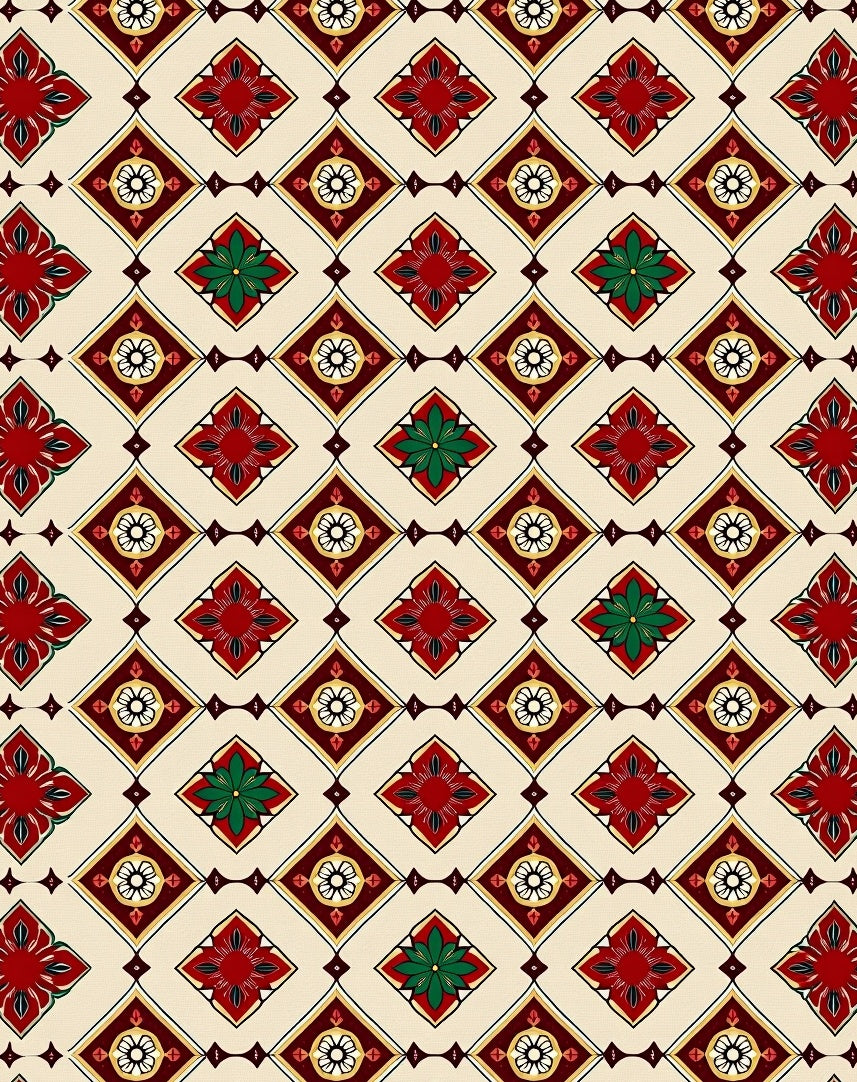 Boho Patchwork with Interlocking Floral and Designs(Beige)