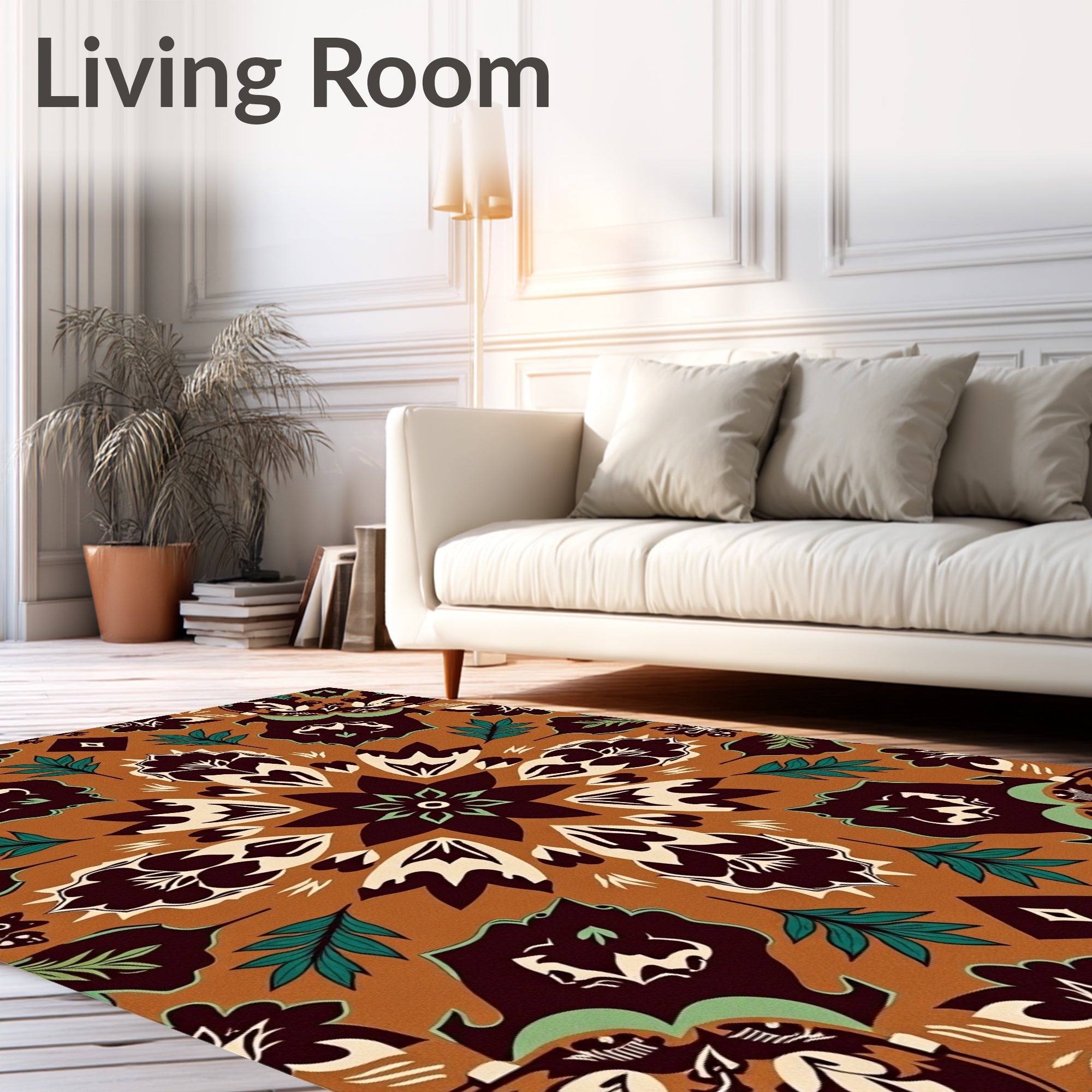 Ultra Soft Area Rug, Non Slip, Stain Resistant, Washable Area Rugs for Living Room, Bedroom, Boho Pinecone Medallion with Seasonal Berry Branch(Brown) Overview: