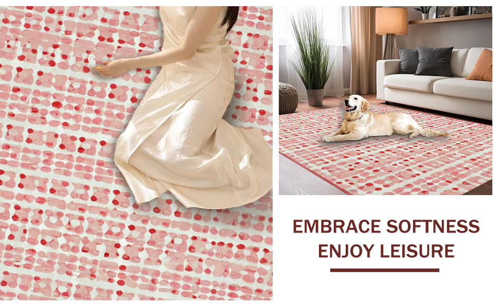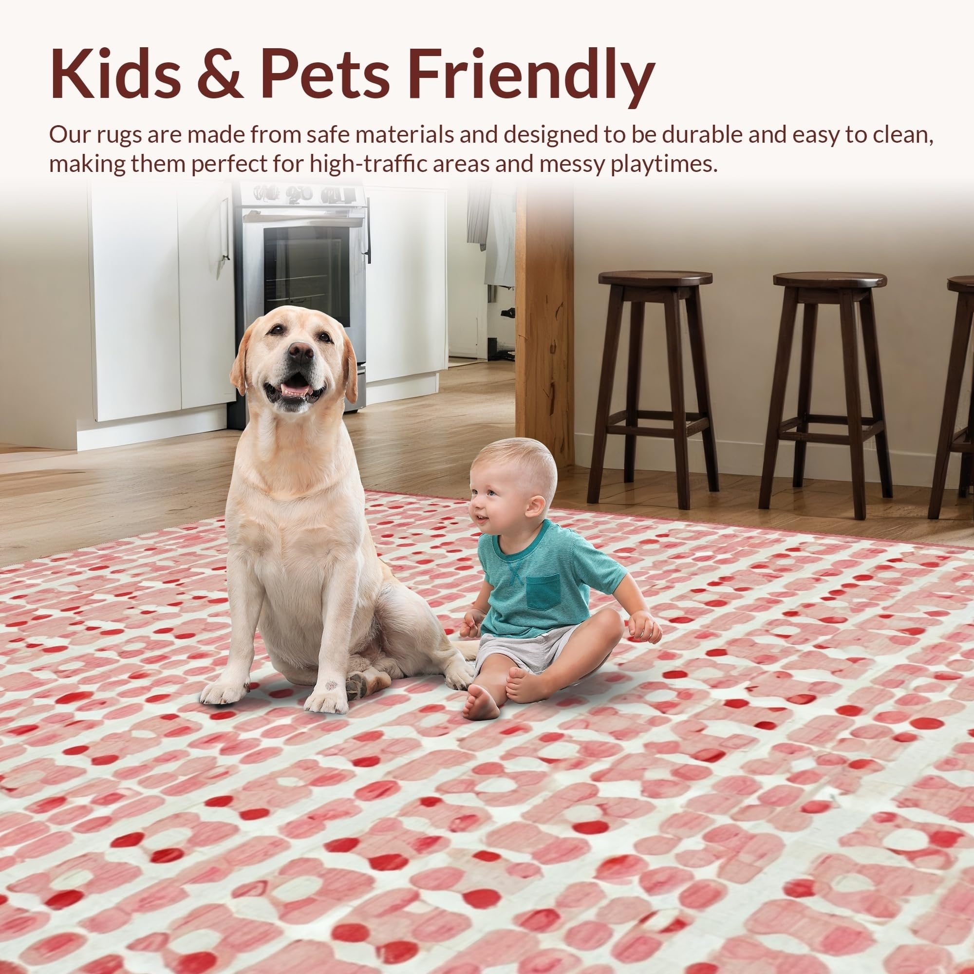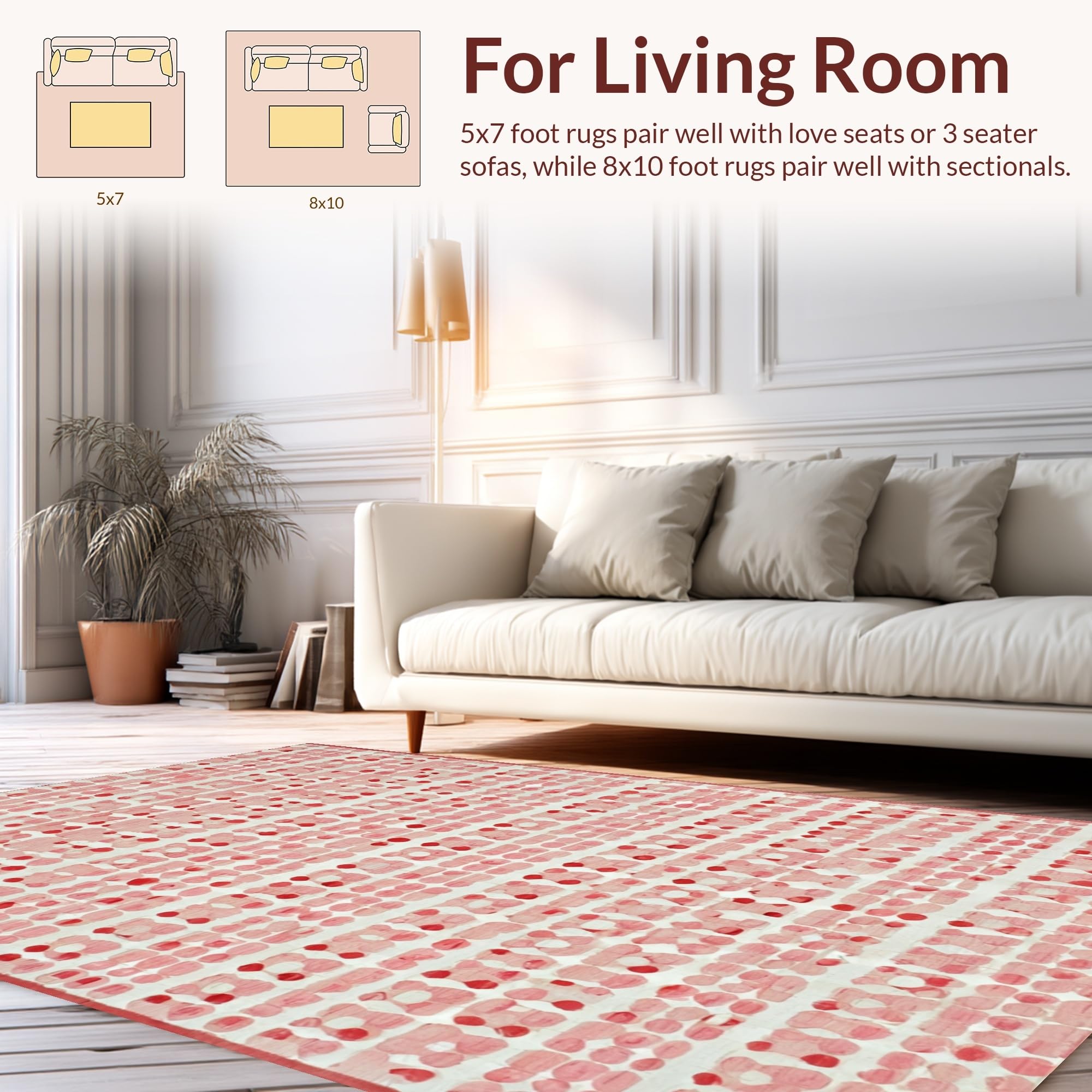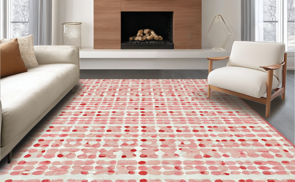 Ultra Soft Area Rug, Non Slip, Stain Resistant, Washable Area Rugs for Living Room, Bedroom, Boho Pink Bow Carpet, Seamless Ribbons(Red) Overview: