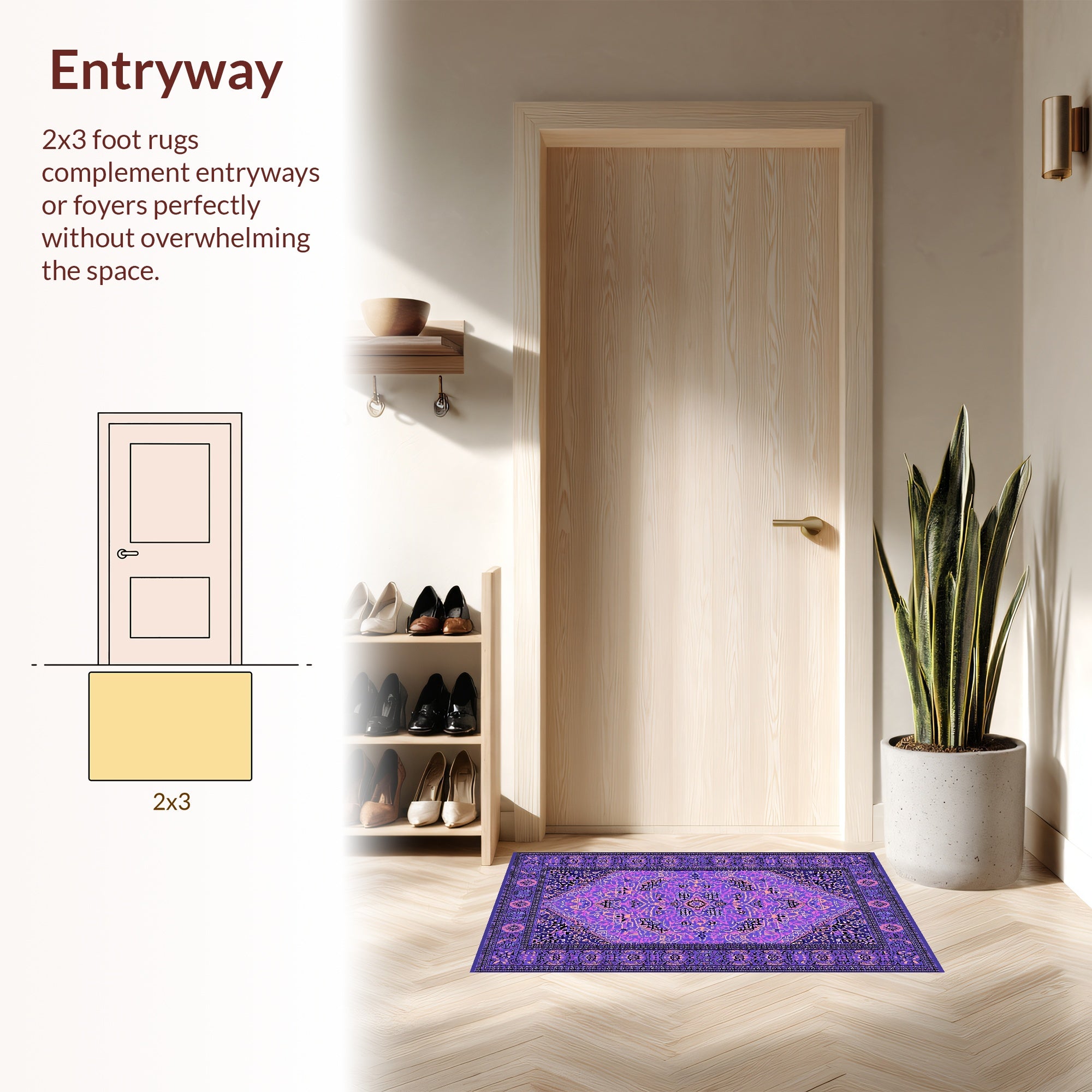 Flatwoven High Traffic Area Rug, Boho Purple Low Pile, Non Slip, Stain Resistant, Washable Area Rugs for Living Room, Bedroom (Purple) Overview: