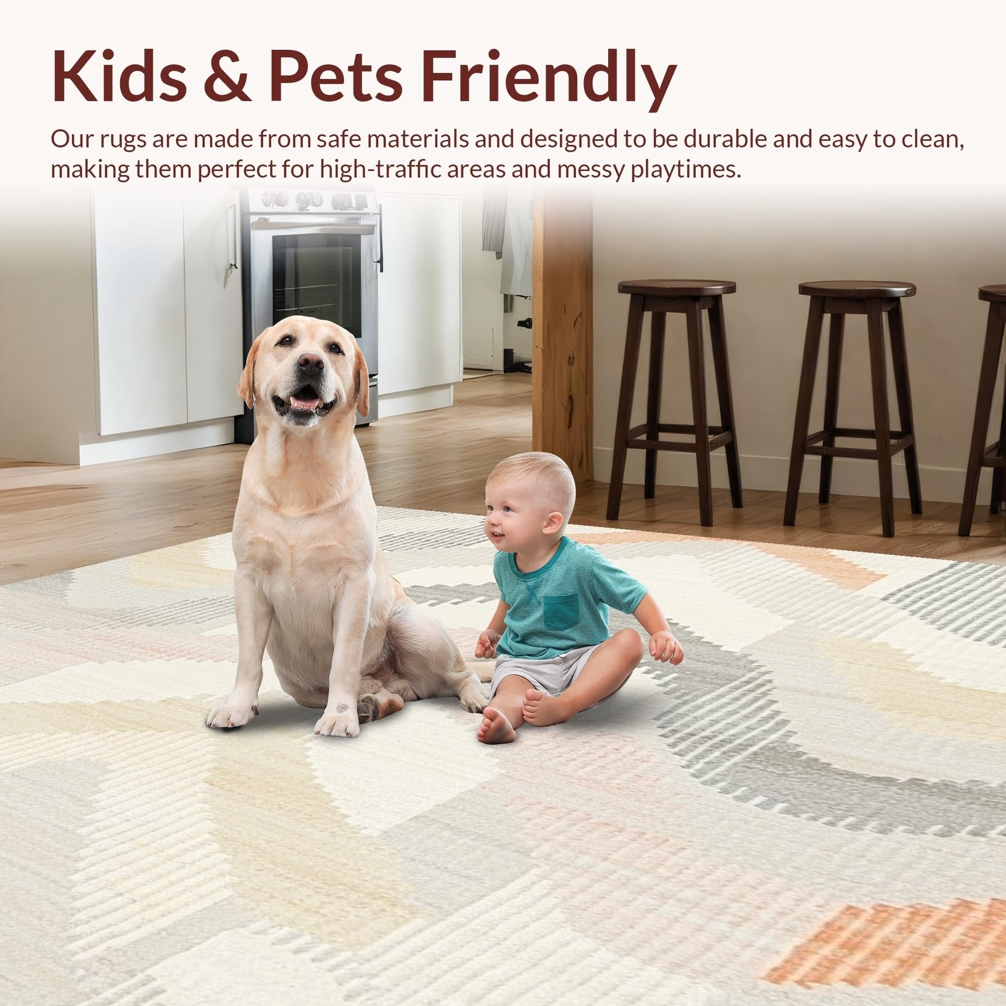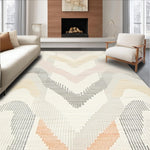 Ultra Soft Area Rug, Non Slip, Stain Resistant, Washable Area Rugs for Living Room, Bedroom, Boho Retreat Runner Showcasing Freeform Chevron Waves and Contrasts(Beige) Overview:
