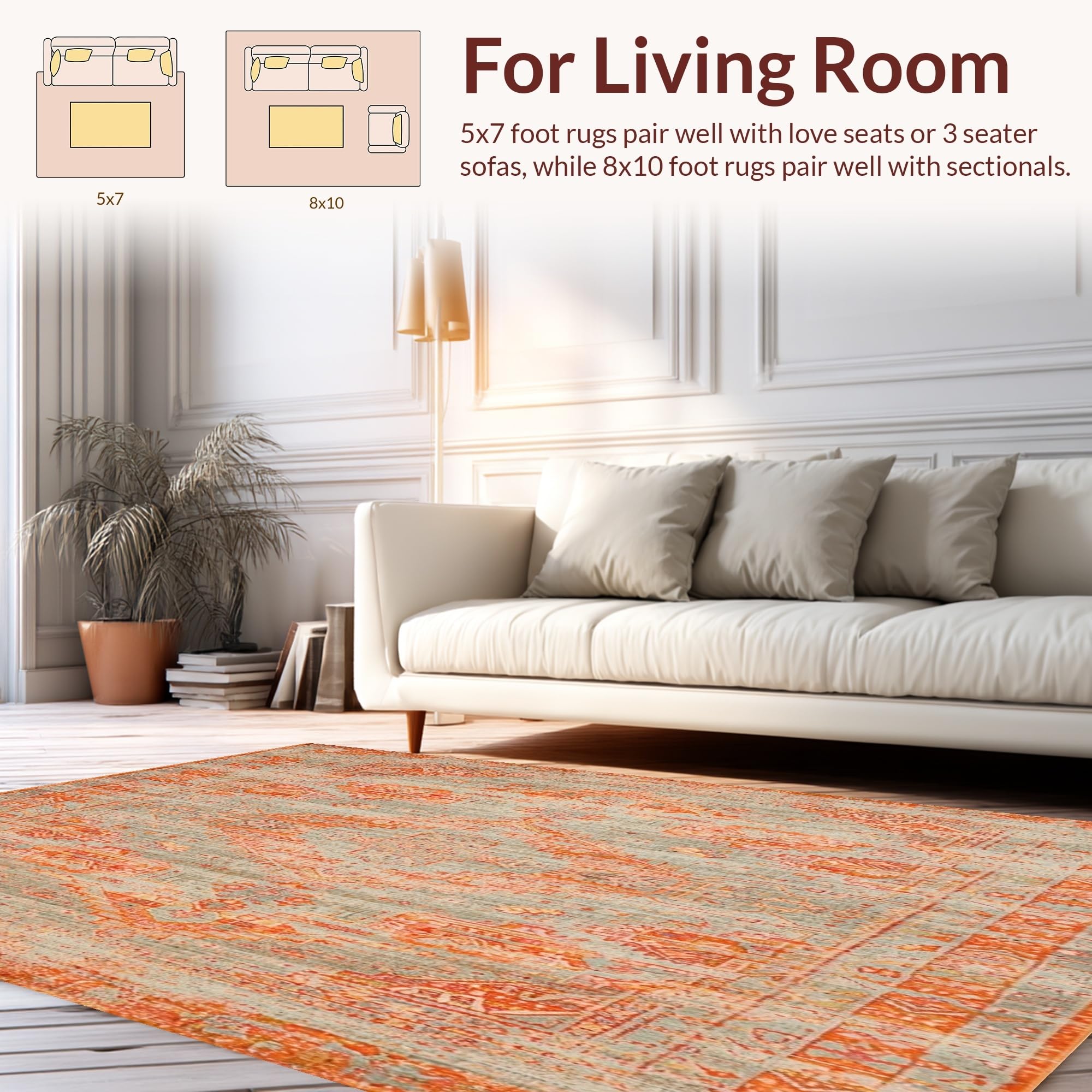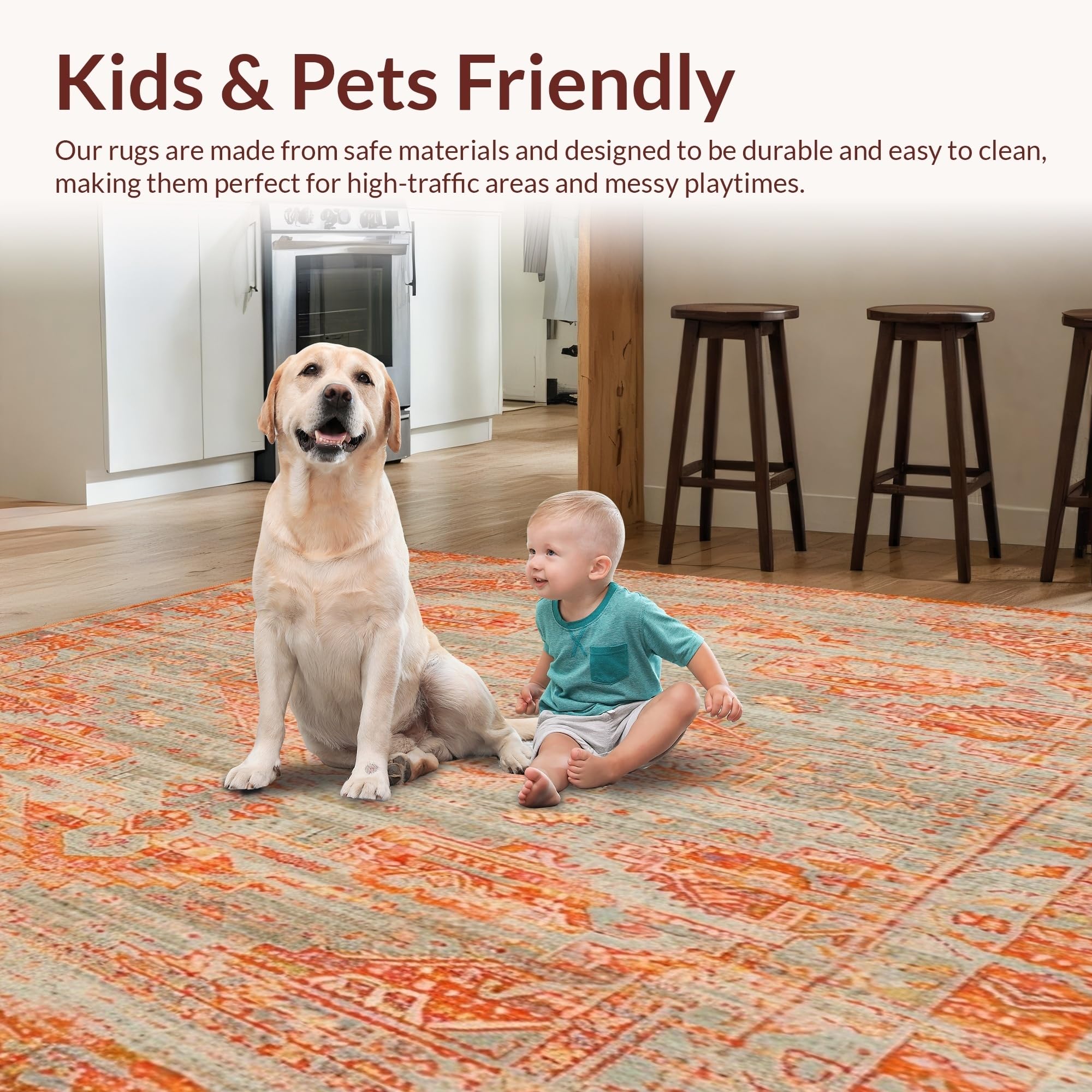 Ultra Soft Area Rug, Non Slip, Stain Resistant, Washable Area Rugs for Living Room, Bedroom, Boho Retro Runner Non Slip Unique Neutral(Orange) Overview:
