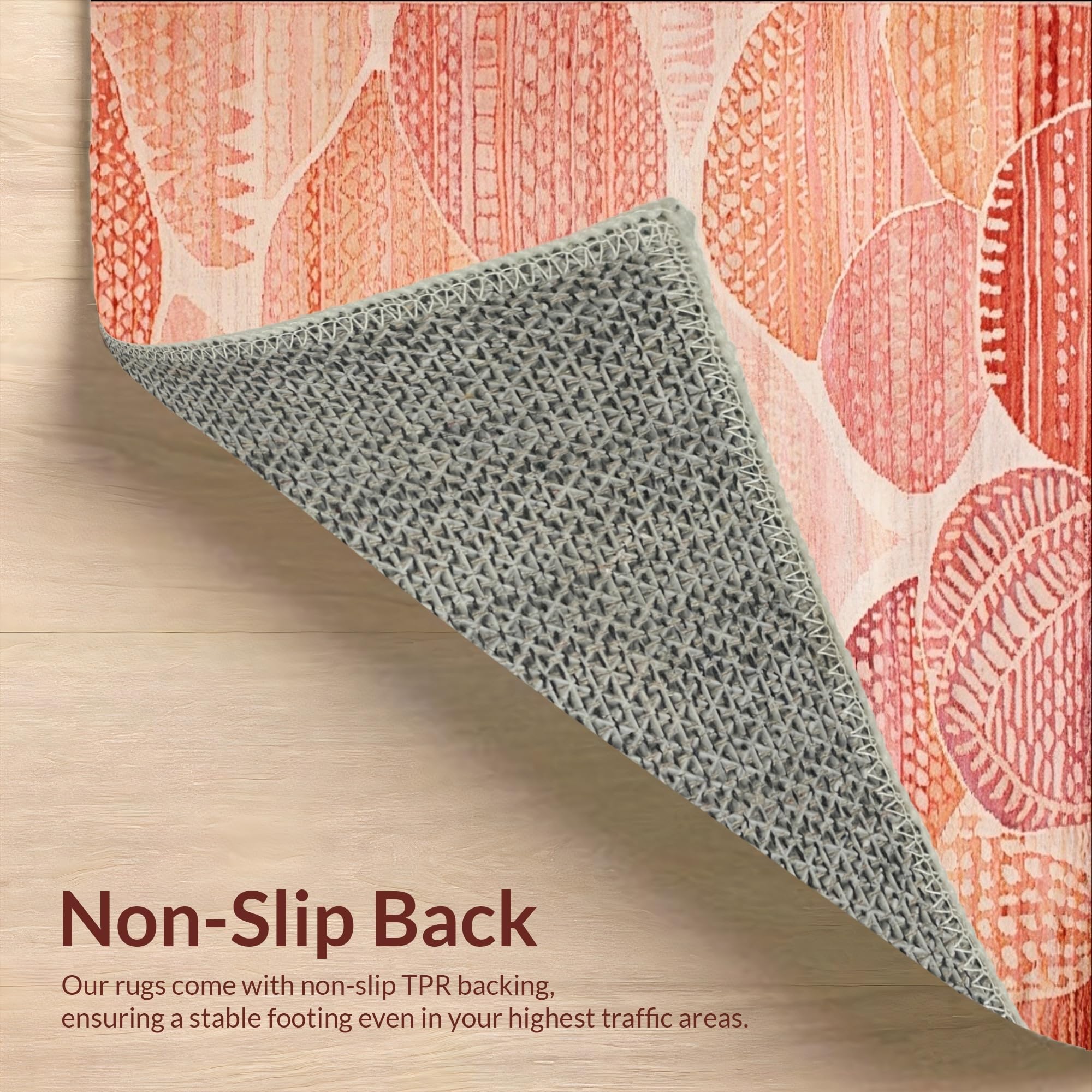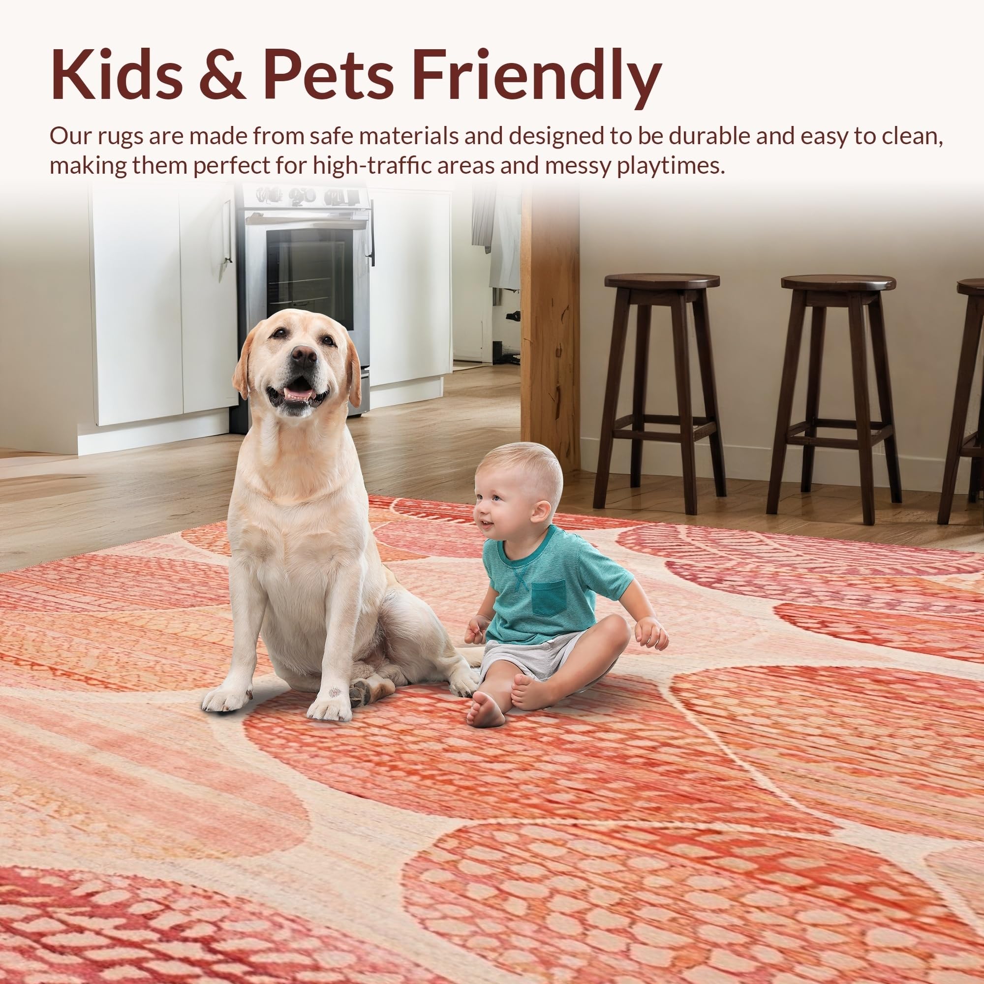 Ultra Soft Area Rug, Non Slip, Stain Resistant, Washable Area Rugs for Living Room, Bedroom, Boho Scallop(Red) Overview: