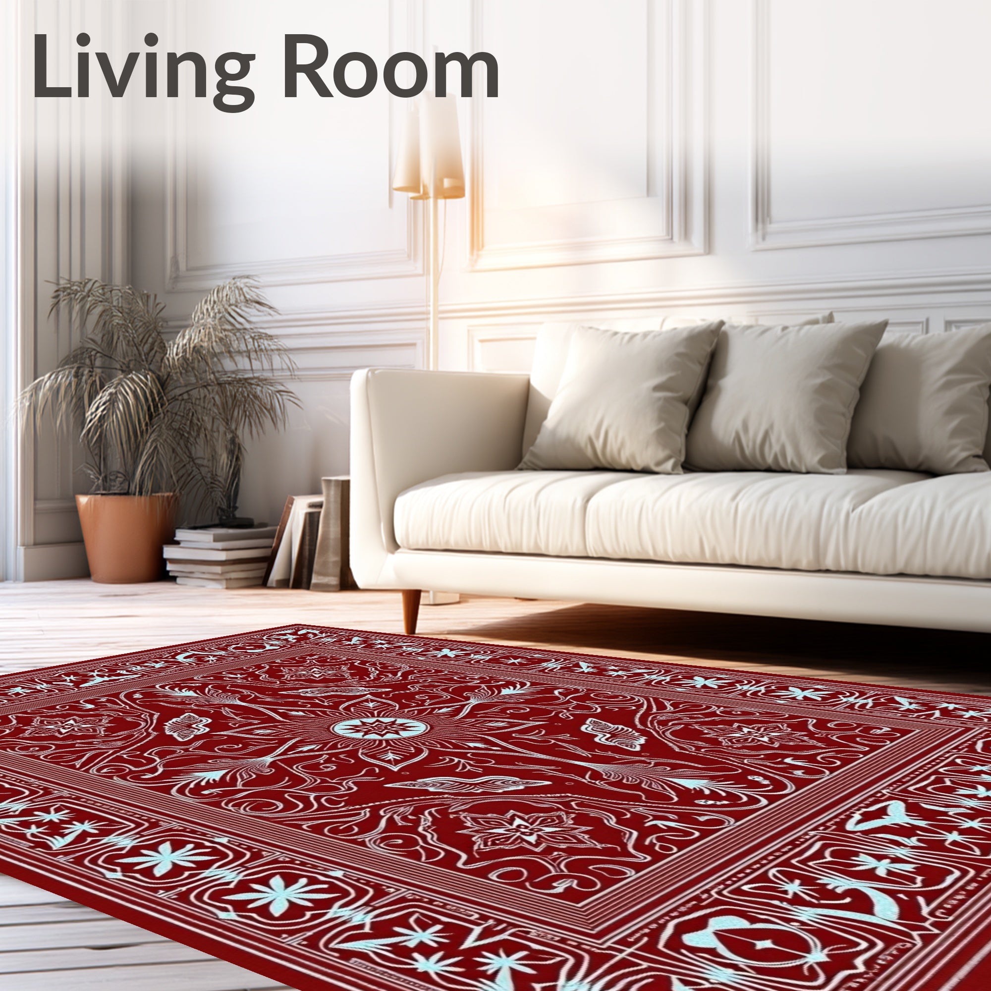 Ultra Soft Area Rug, Non Slip, Stain Resistant, Washable Area Rugs for Living Room, Bedroom, Boho Snowflake Lattice Winter Wonderland Design(Red) Overview: