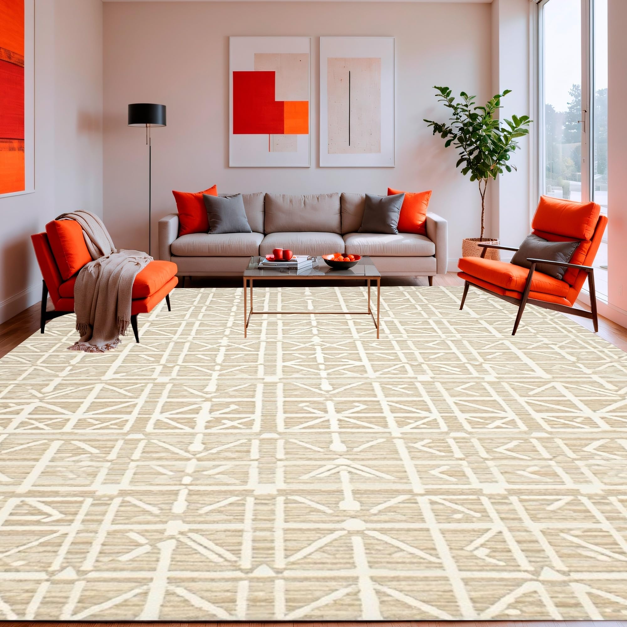 Ultra Soft Area Rug, Non Slip, Stain Resistant, Washable Area Rugs for Living Room, Bedroom, Boho Stair Runner Beige Geometric Stairway for Steps(Beige) Overview: