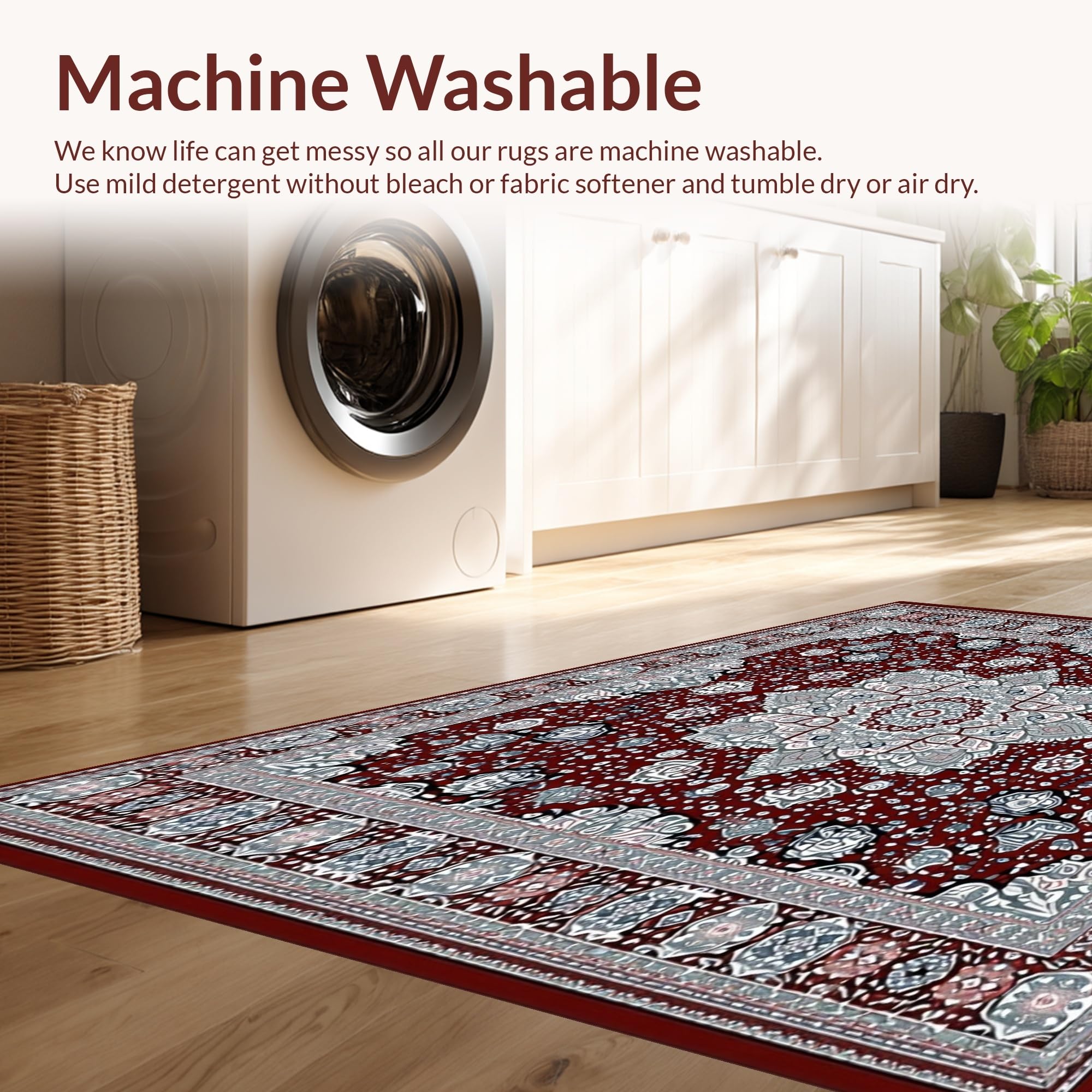 - Machine Washable: Our rugs can be easily thrown in the wash machine.