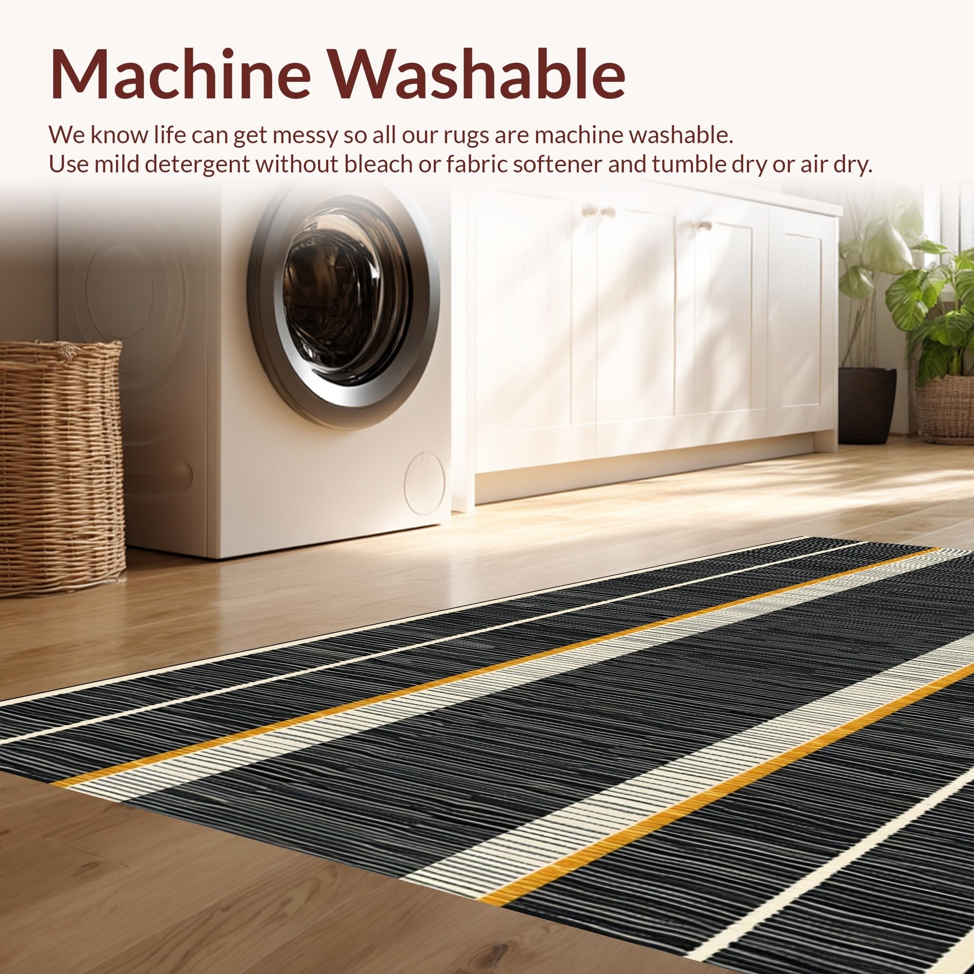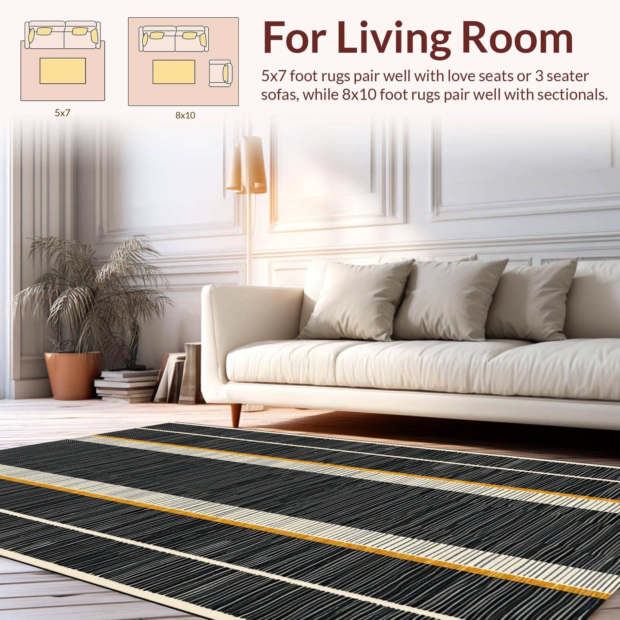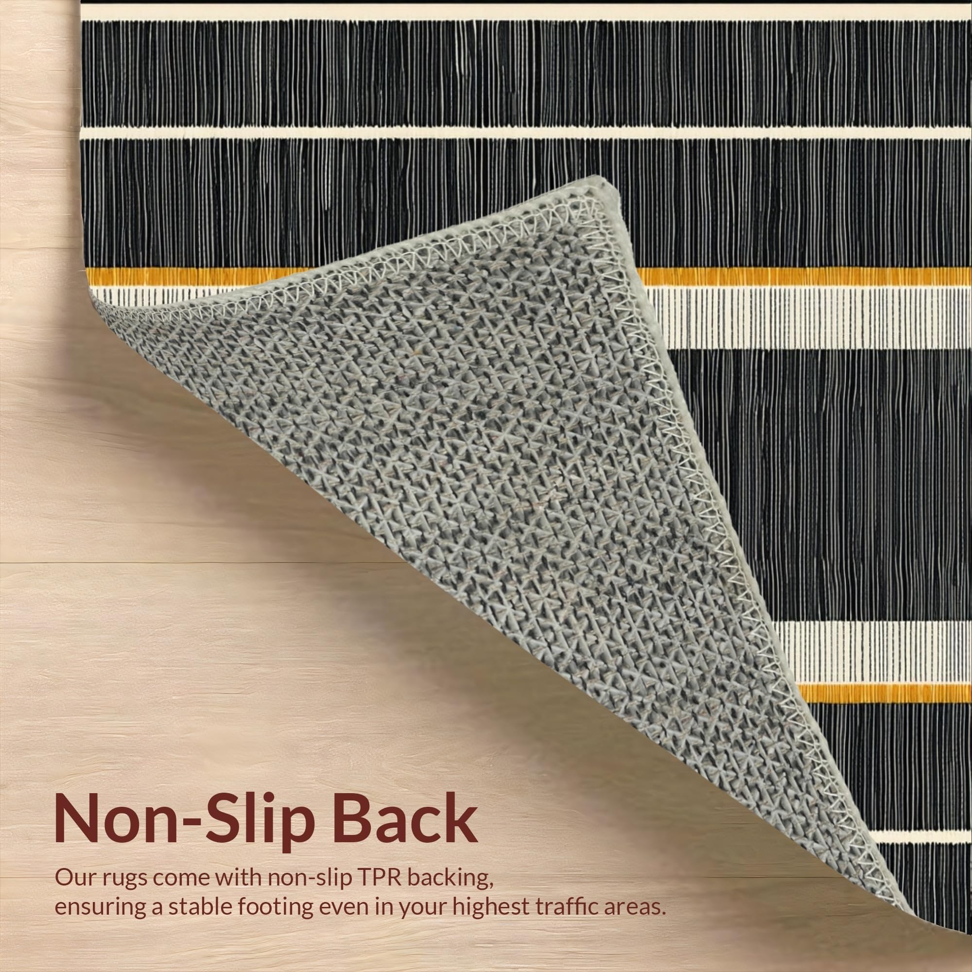 Ultra Soft Area Rug, Non Slip, Stain Resistant, Washable Area Rugs for Living Room, Bedroom, Boho Striped Monochrome Aesthetic(Black) Overview: