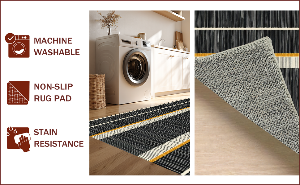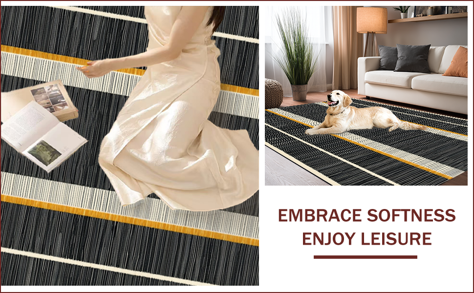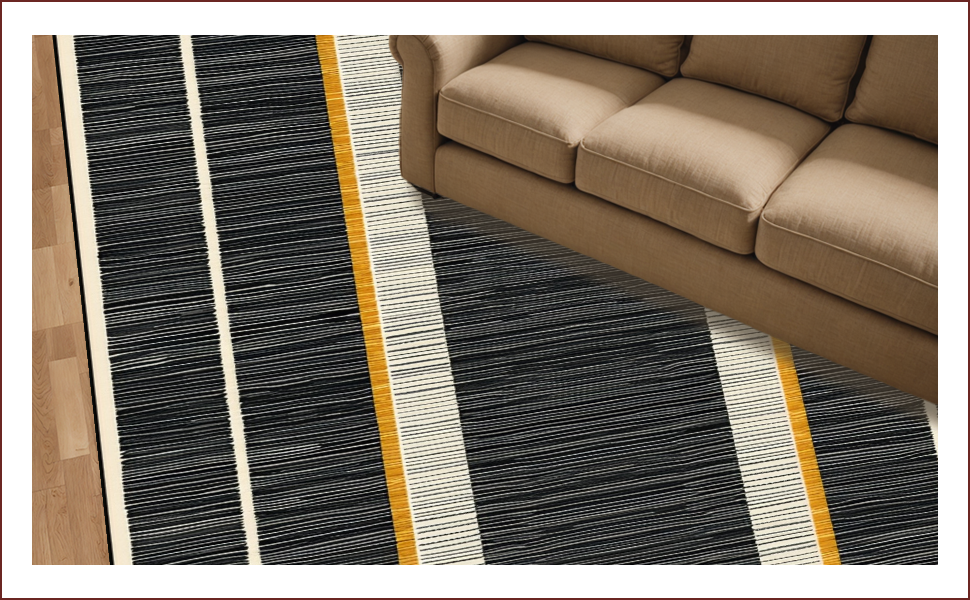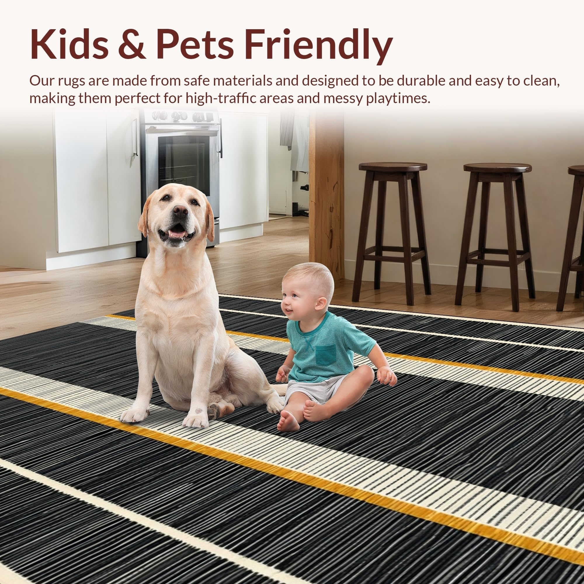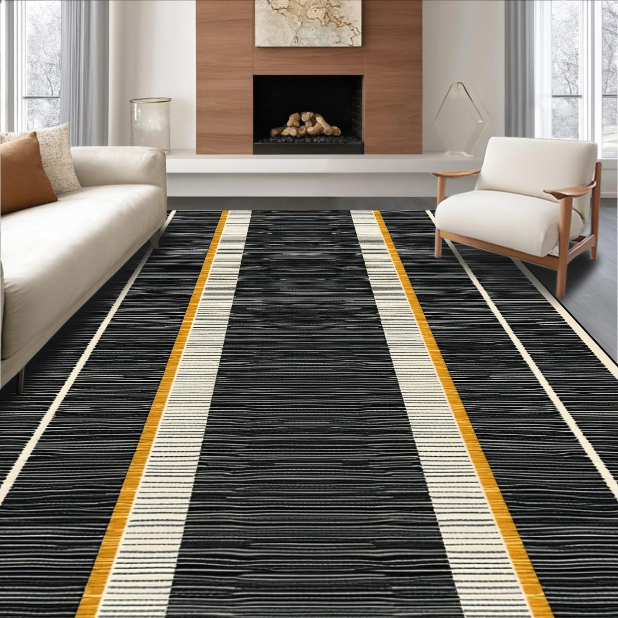 Ultra Soft Area Rug, Non Slip, Stain Resistant, Washable Area Rugs for Living Room, Bedroom, Boho Striped Monochrome Aesthetic(Black) Overview: