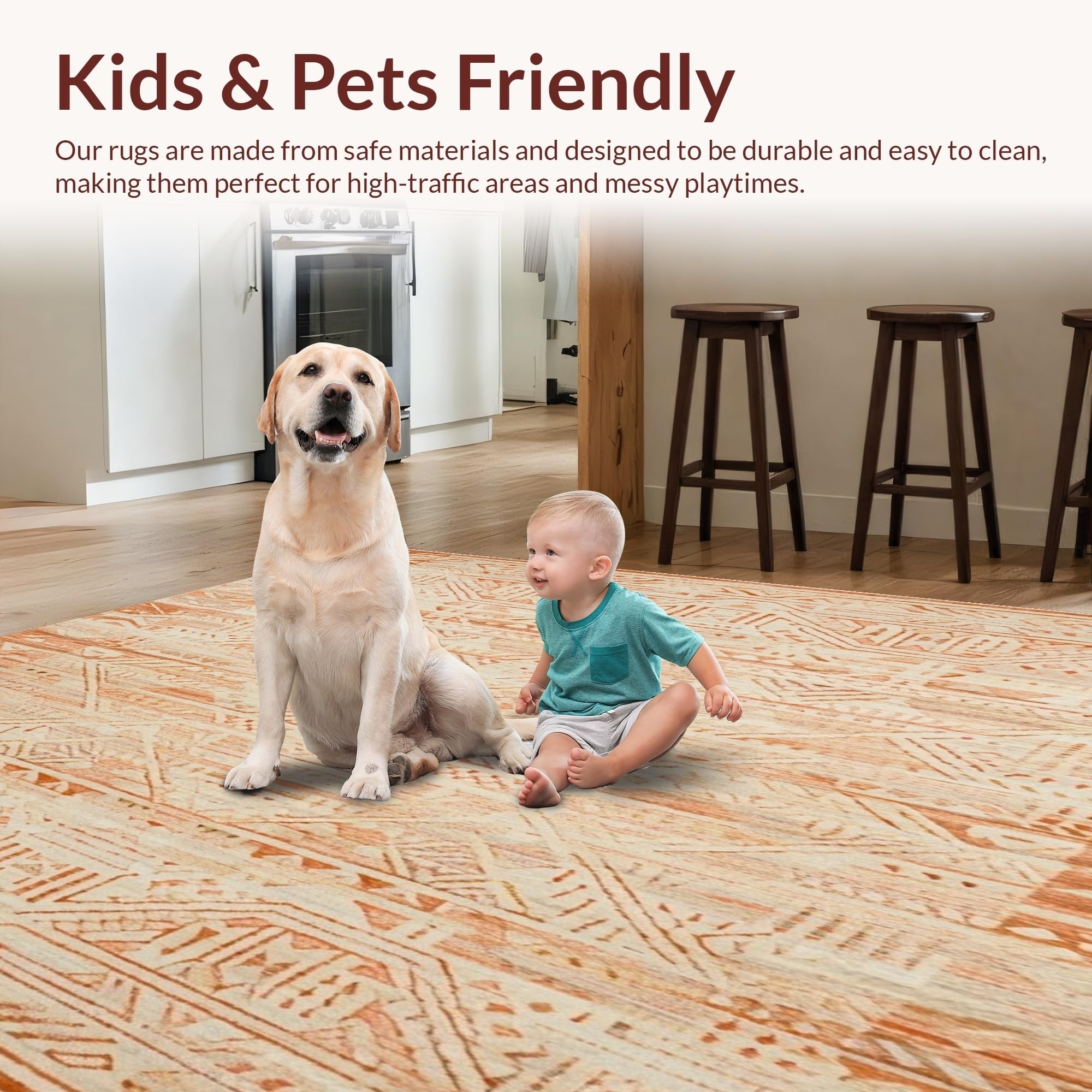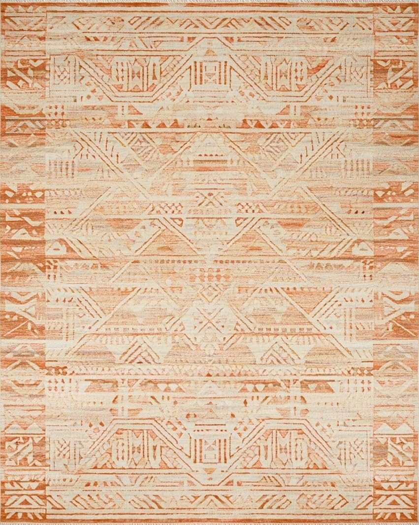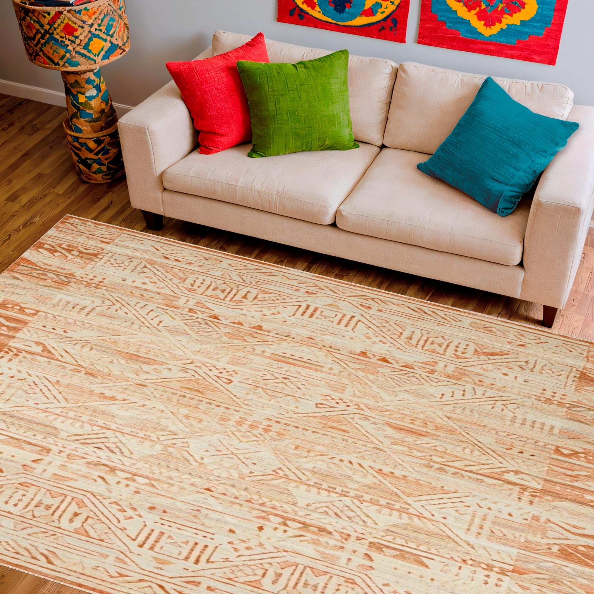 Ultra Soft Area Rug, Non Slip, Stain Resistant, Washable Area Rugs for Living Room, Bedroom, Boho Style Area Rustic Beige Design(Orange) Overview: