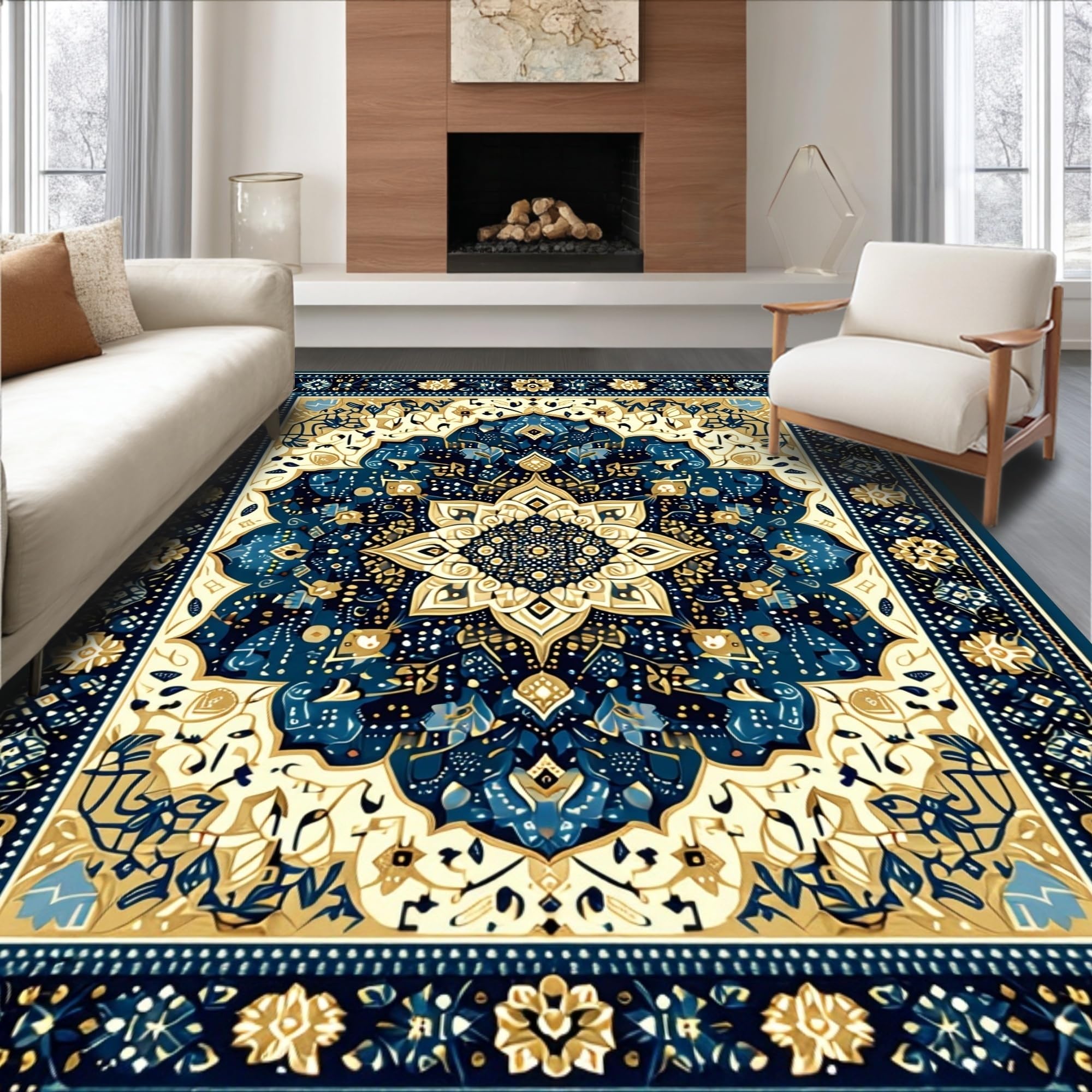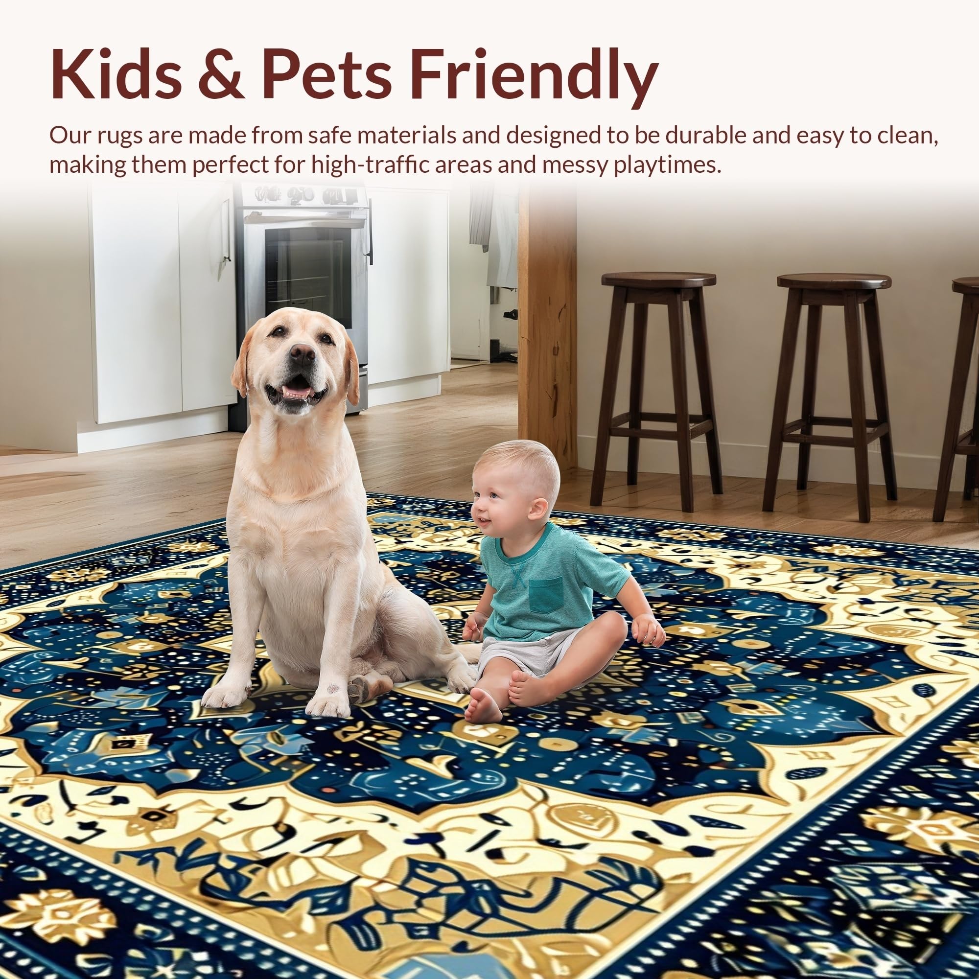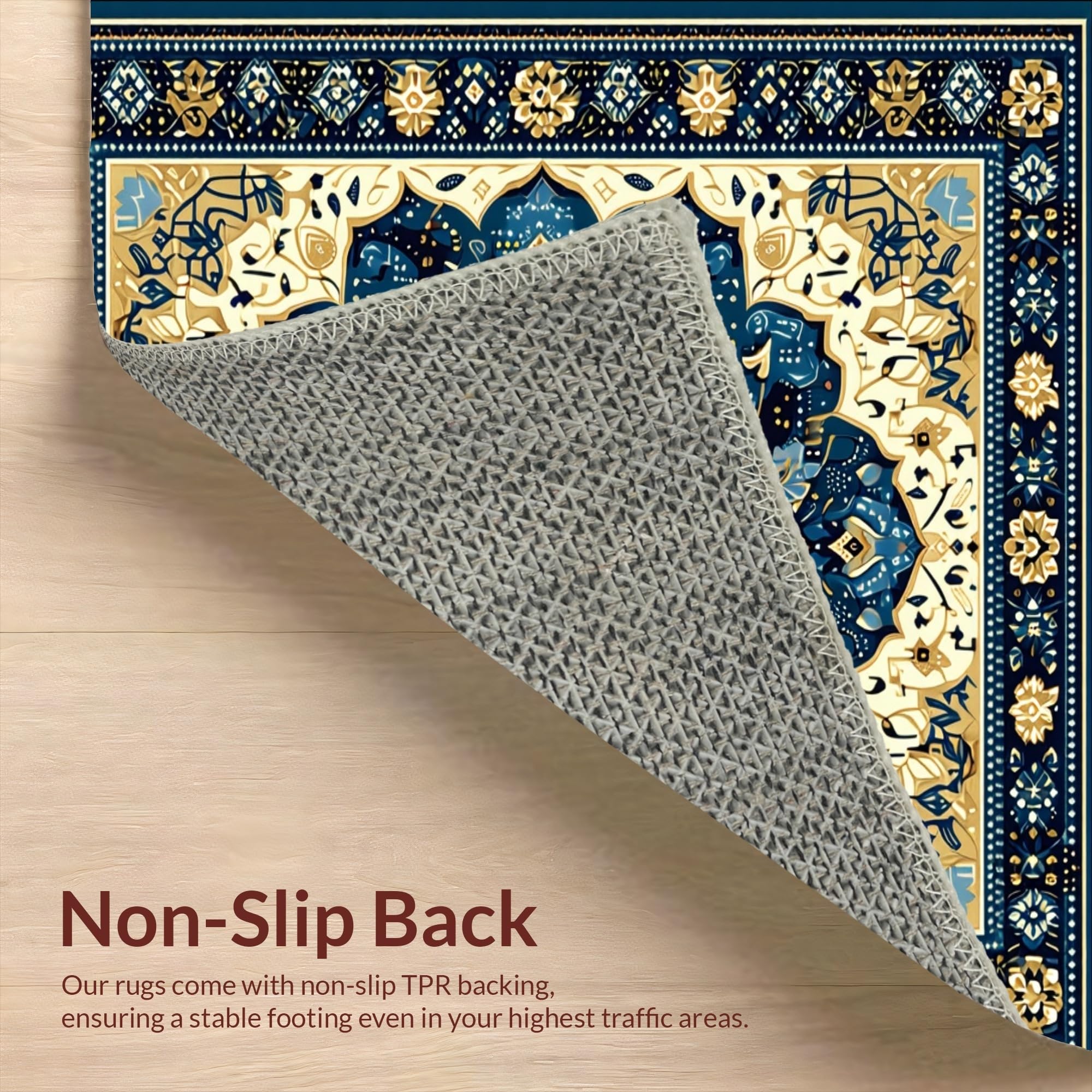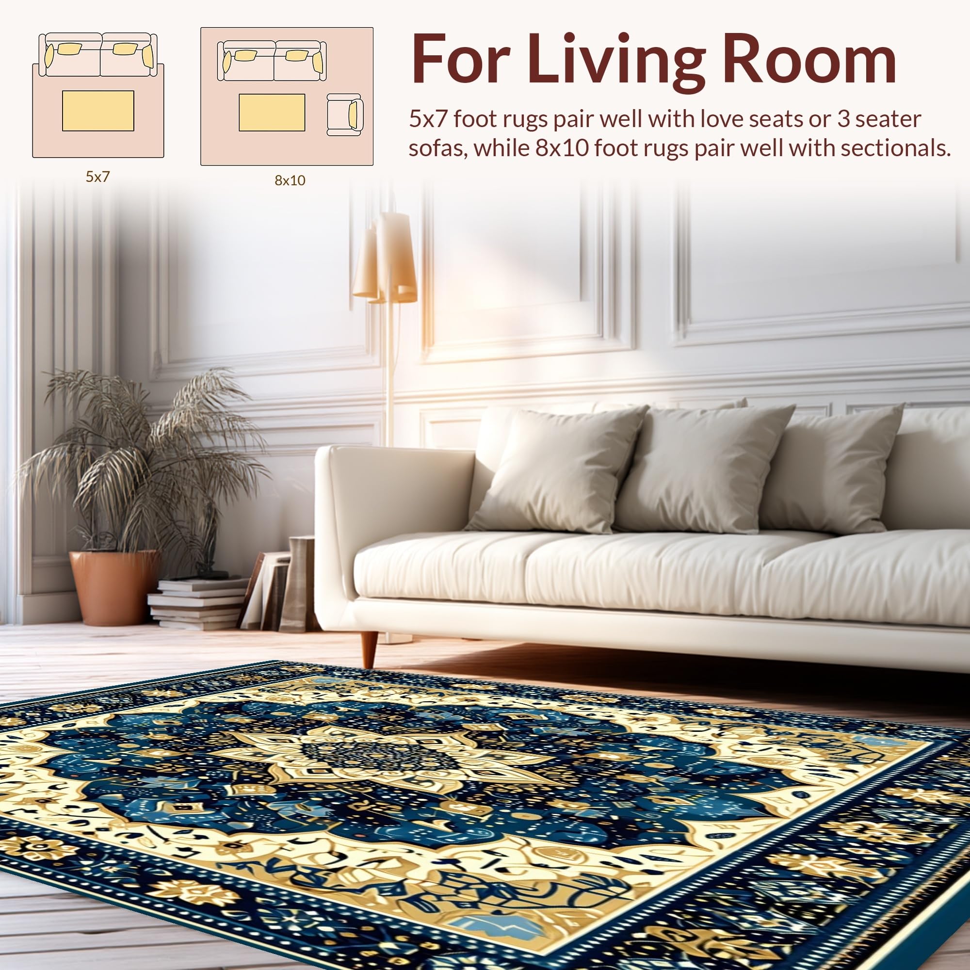 Ultra Soft Area Rug, Non Slip, Stain Resistant, Washable Area Rugs for Living Room, Bedroom, Boho Style Beige Abstract(Blue) Overview:
