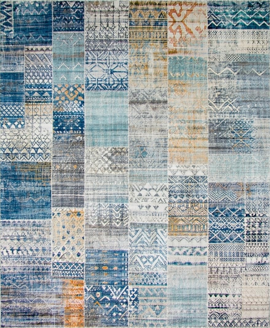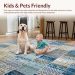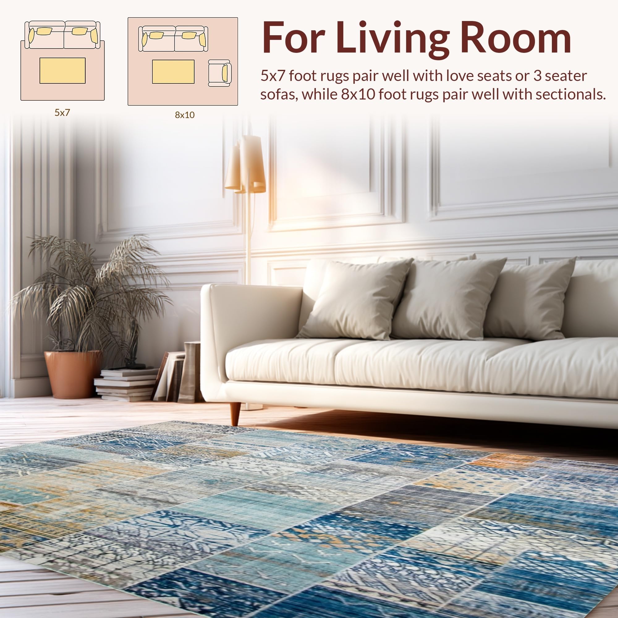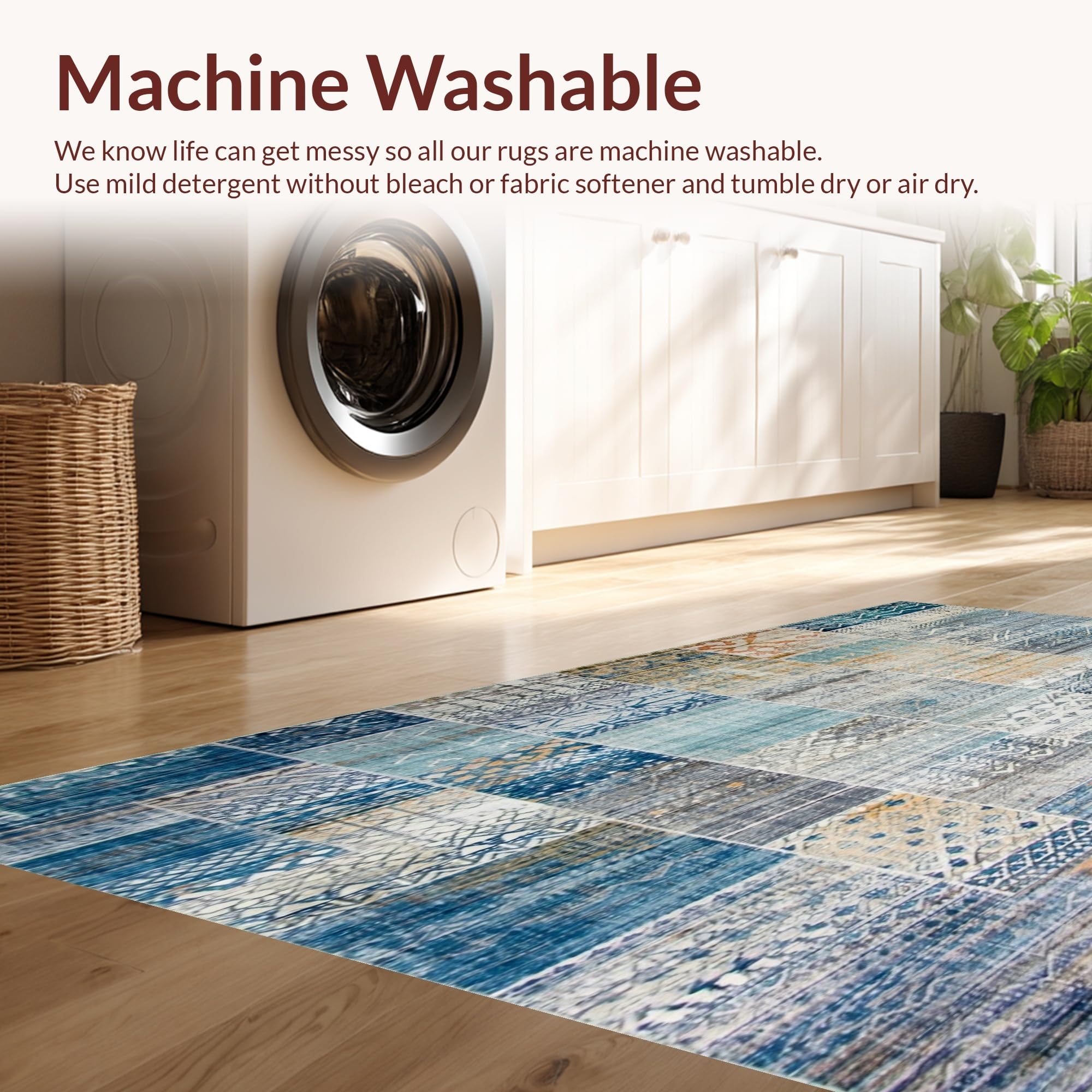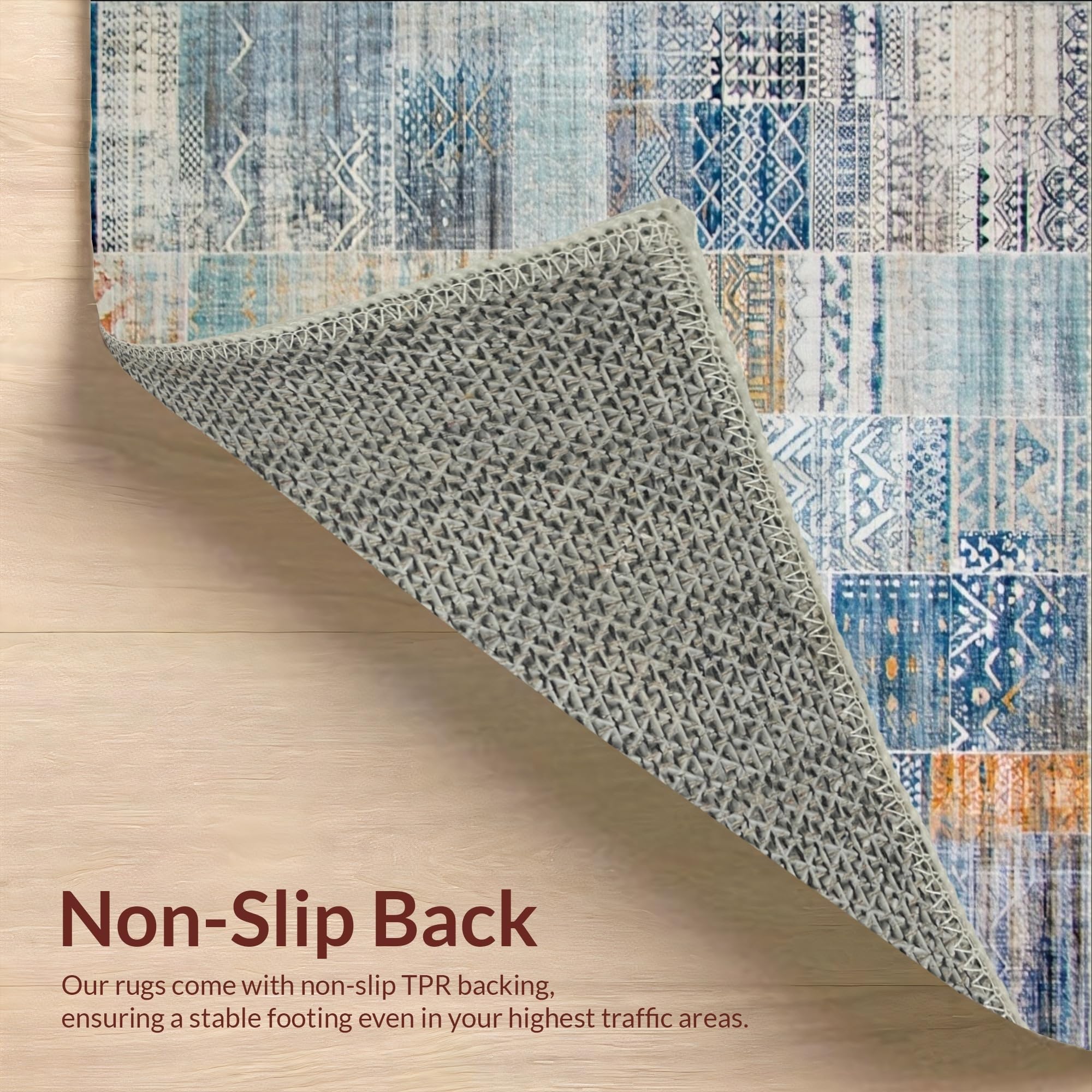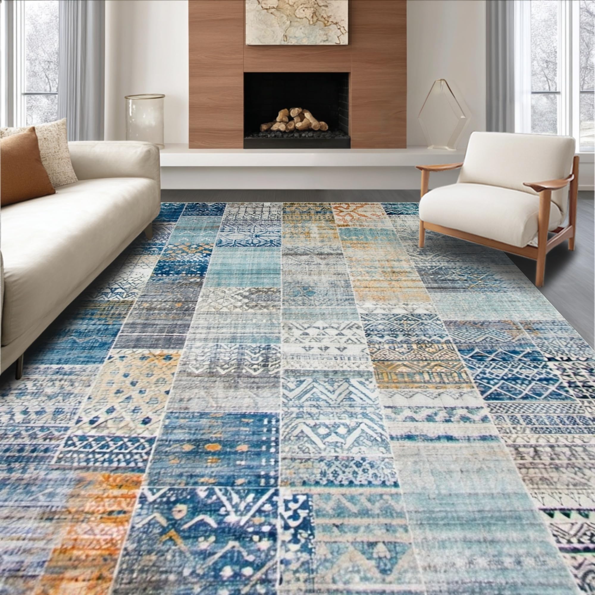 Ultra Soft Area Rug, Non Slip, Stain Resistant, Washable Area Rugs for Living Room, Bedroom, Boho Style Patchwork Multi Colored(Blue) Overview: