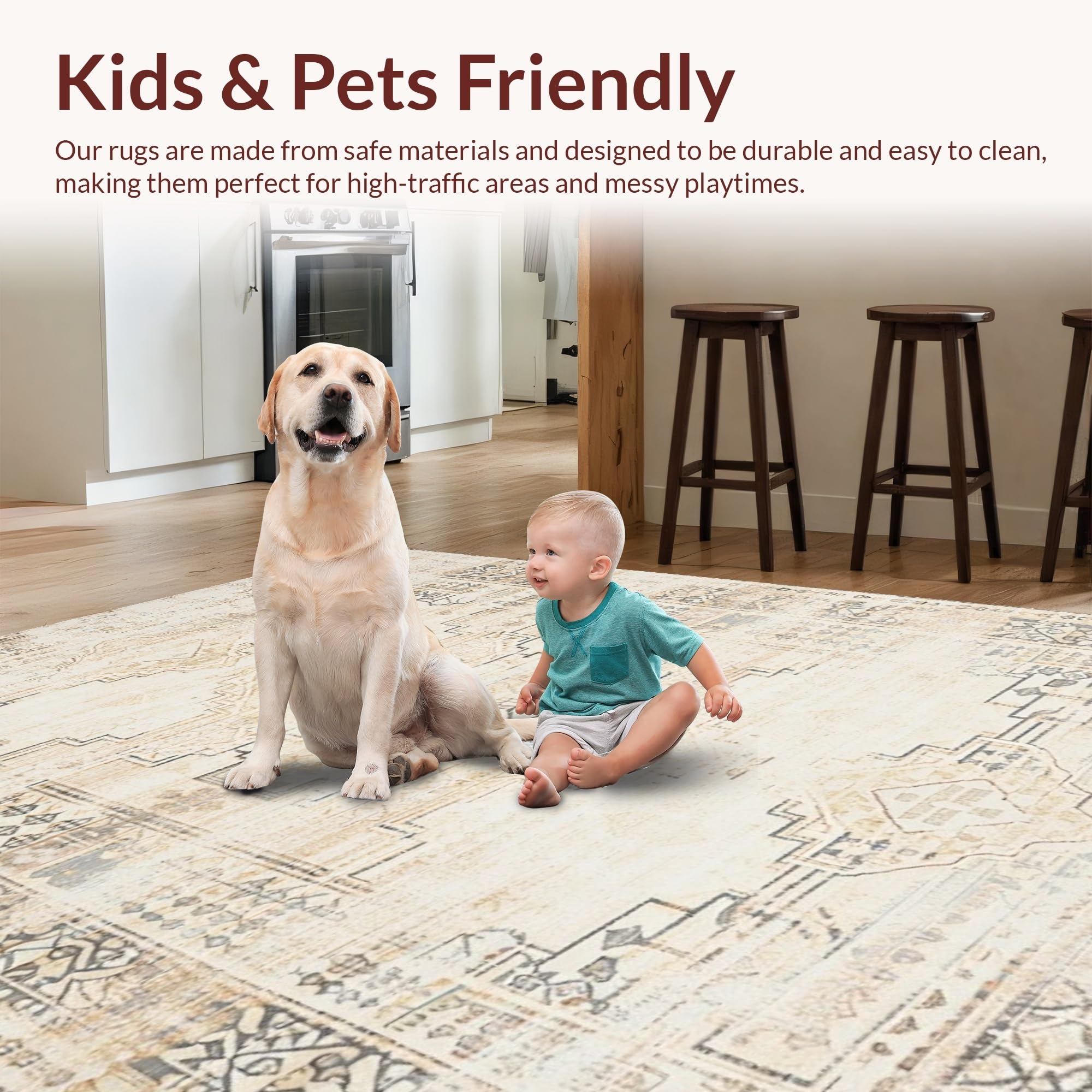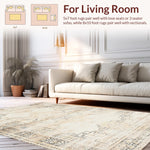 Ultra Soft Area Rug, Non Slip, Stain Resistant, Washable Area Rugs for Living Room, Bedroom, Boho Style with Geo Elements in Beige and Cream(Beige) Overview:
