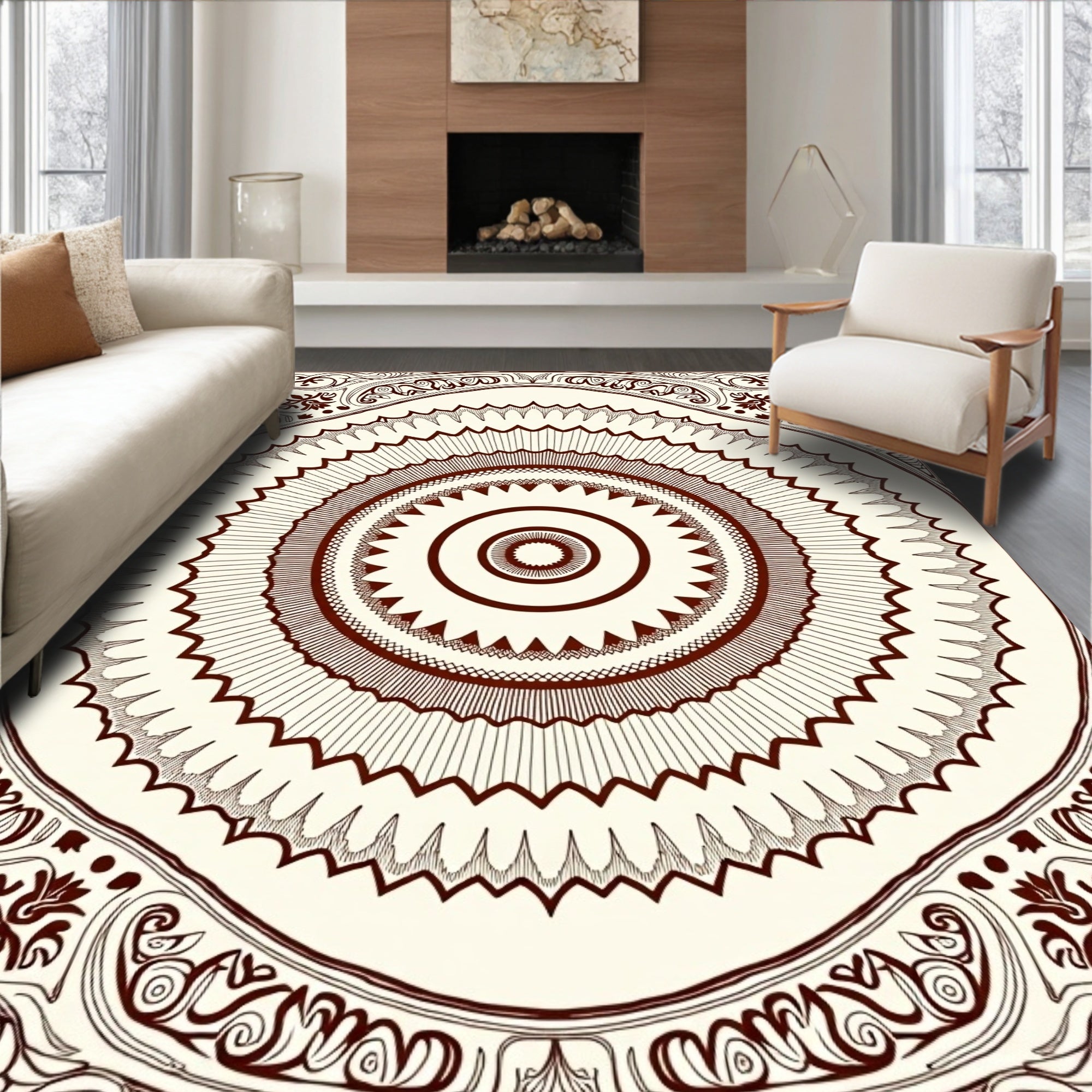 Flatwoven High Traffic Area Rug, Boho Sunburst Radiant Celestial Tapestry, Non Slip, Stain Resistant, Washable Area Rugs for Living Room, Bedroom (Brown) Overview: