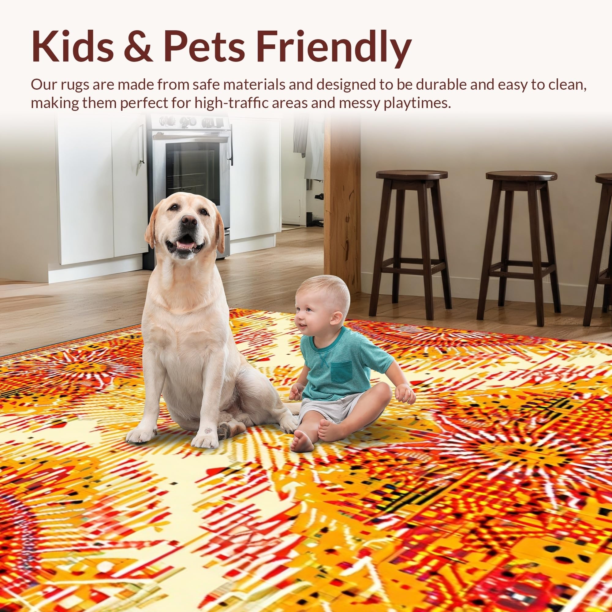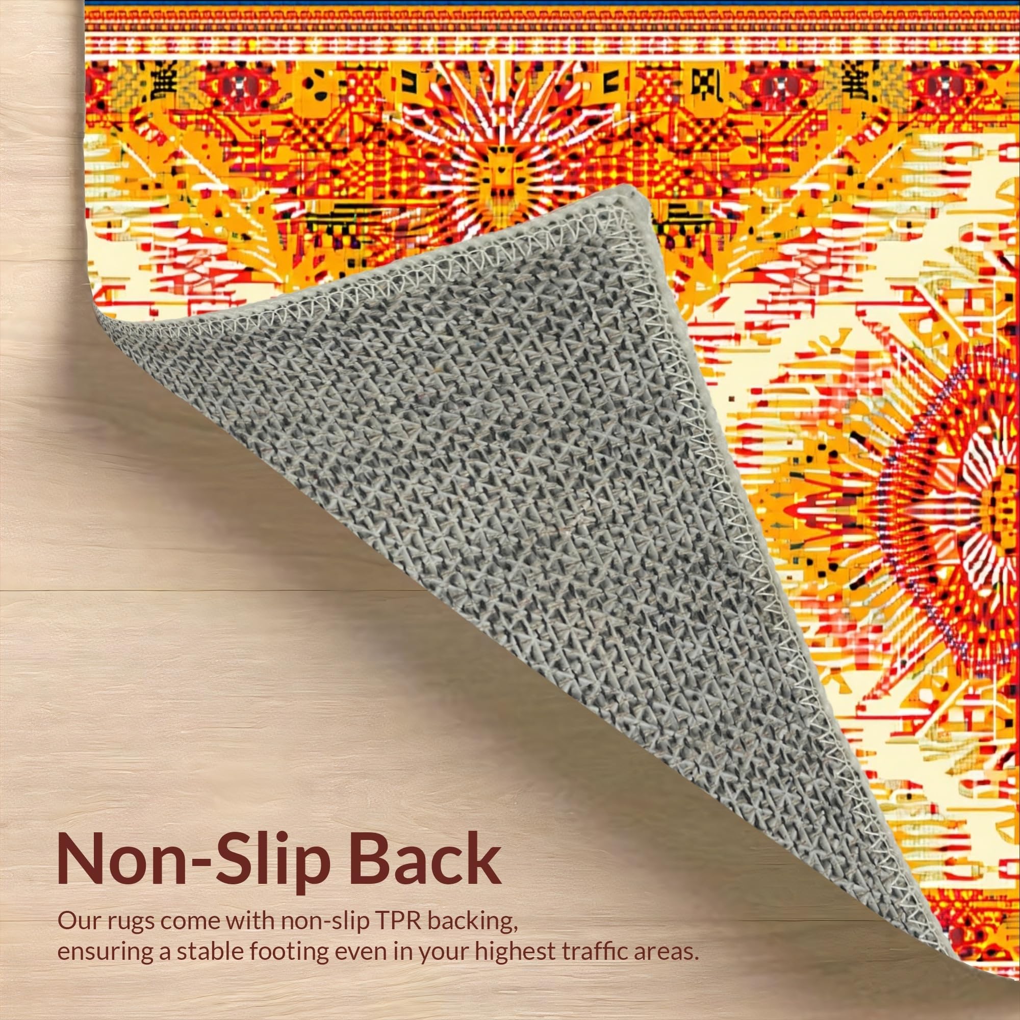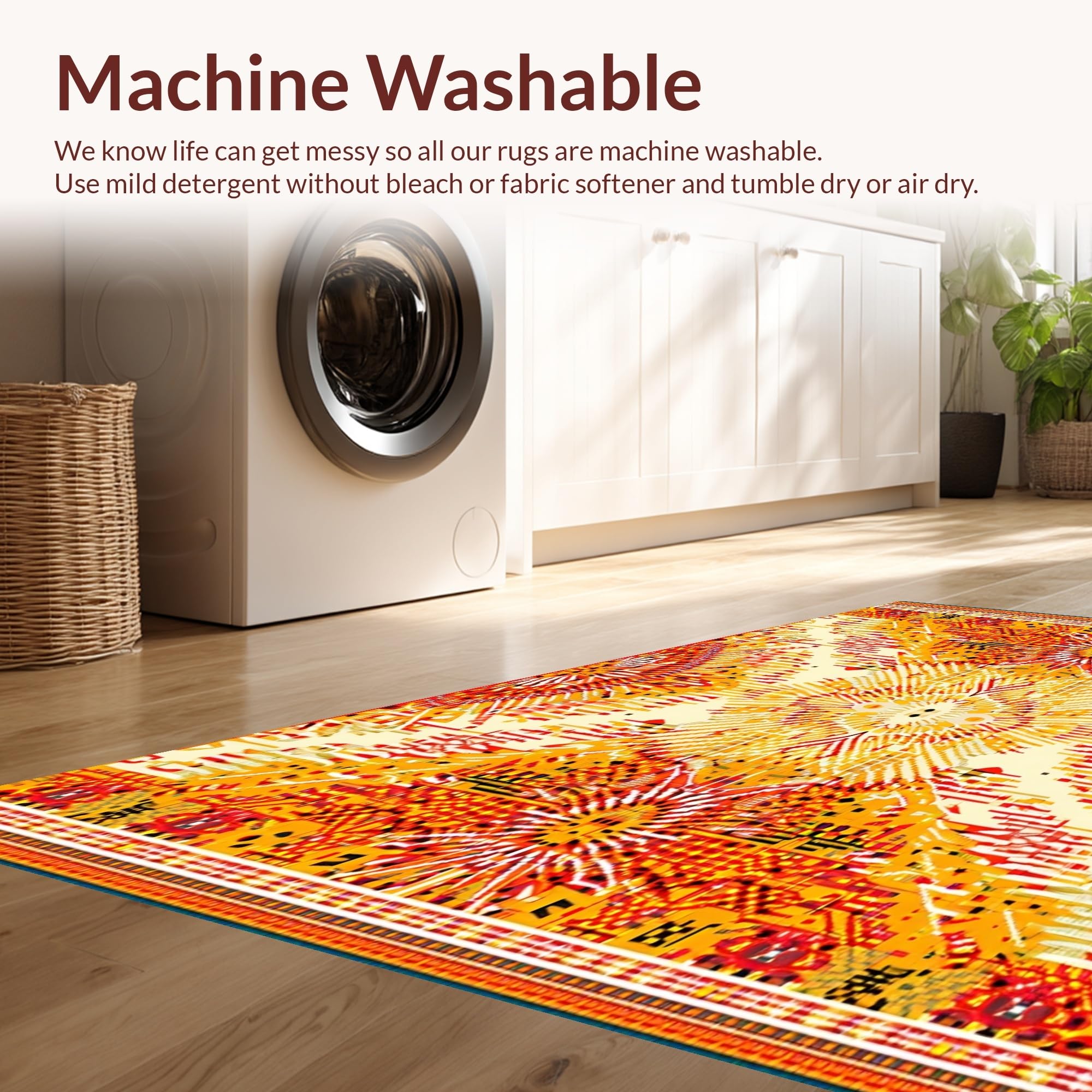 Ultra Soft Area Rug, Non Slip, Stain Resistant, Washable Area Rugs for Living Room, Bedroom, Boho Sunburst(Yellow) Overview: