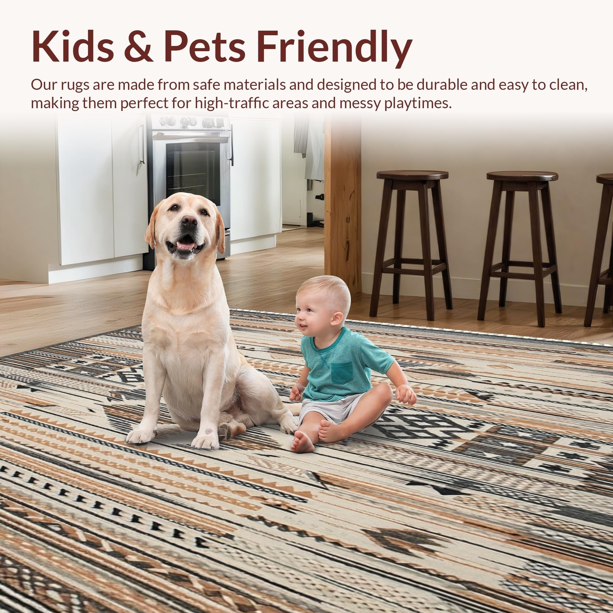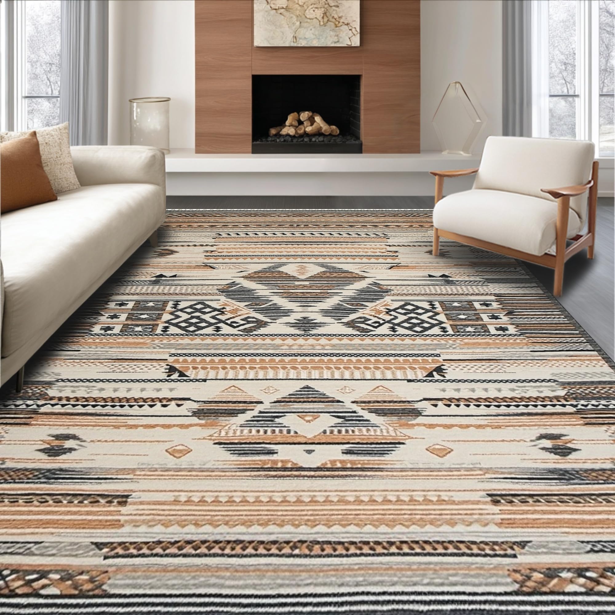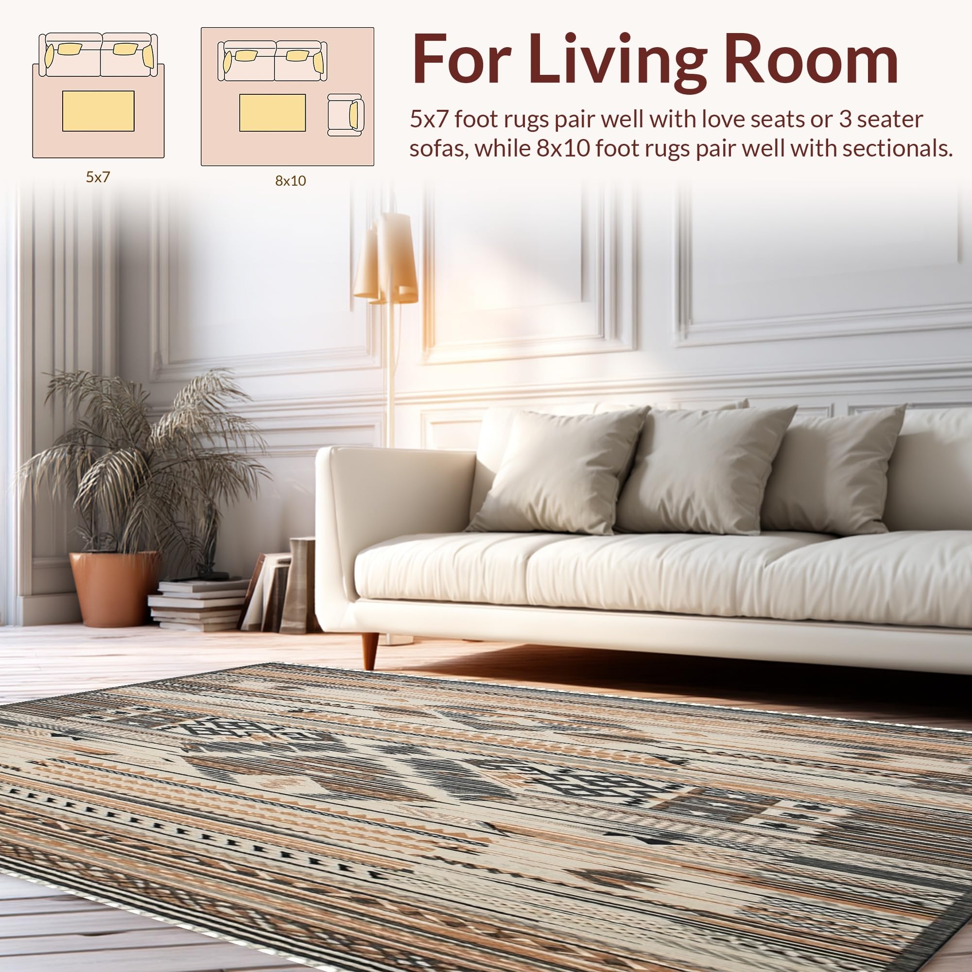 Ultra Soft Area Rug, Non Slip, Stain Resistant, Washable Area Rugs for Living Room, Bedroom, Boho Tassel with(Brown) Overview: