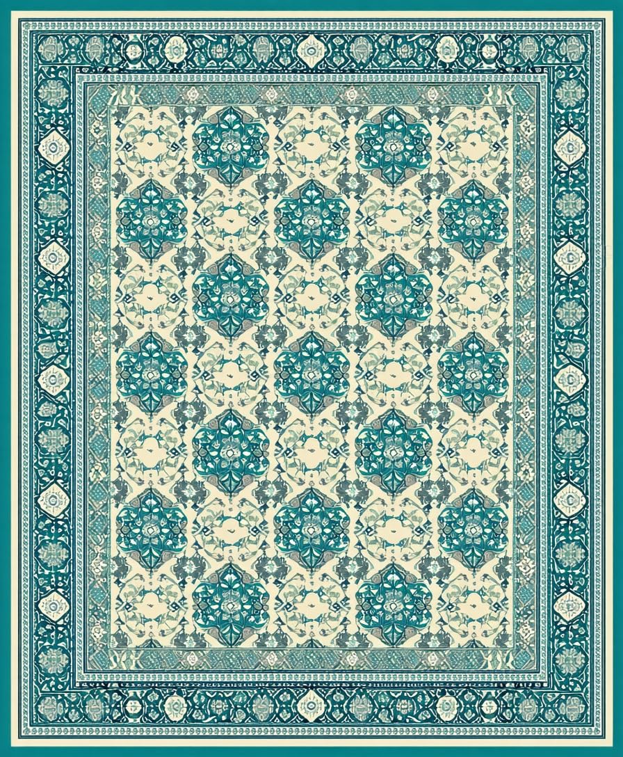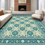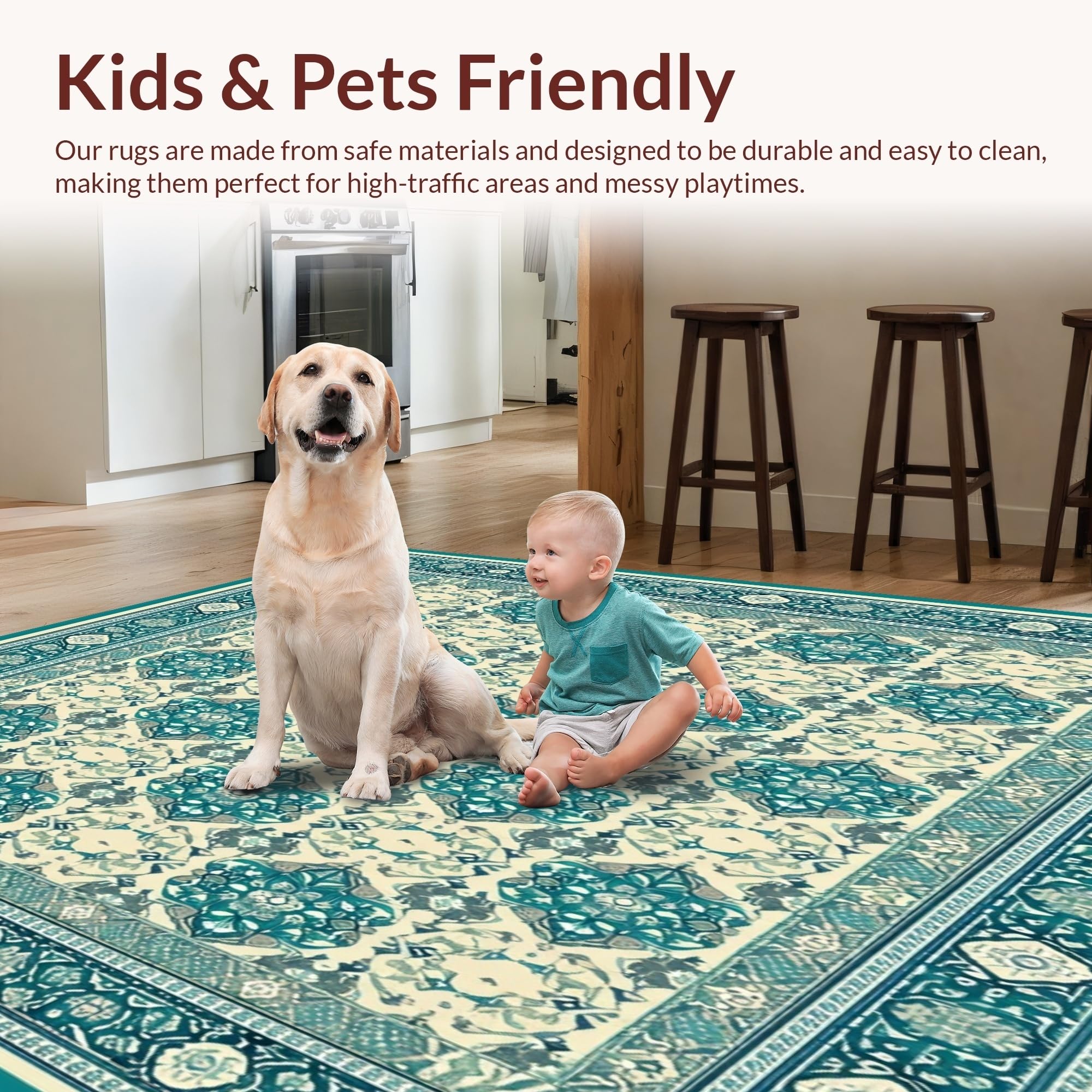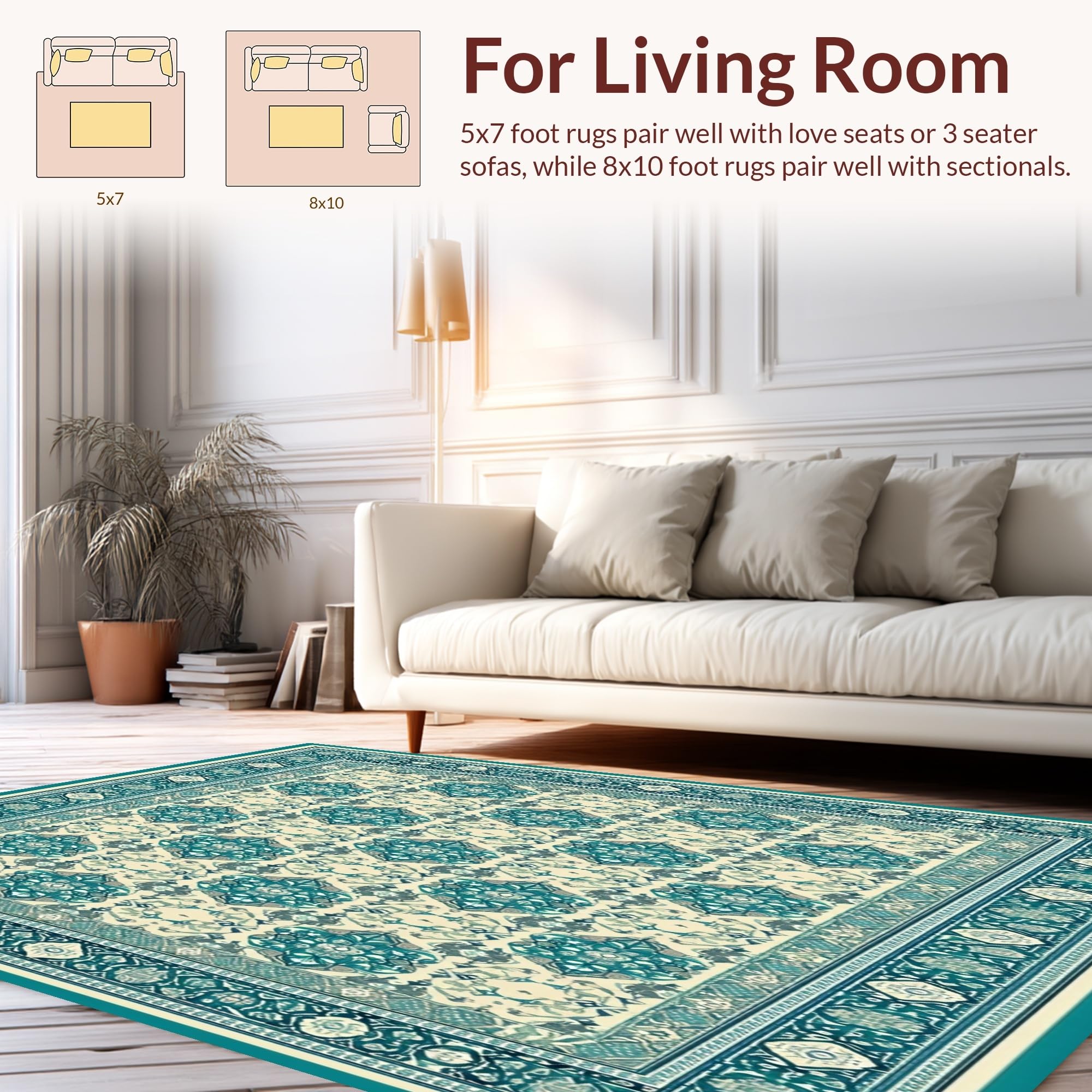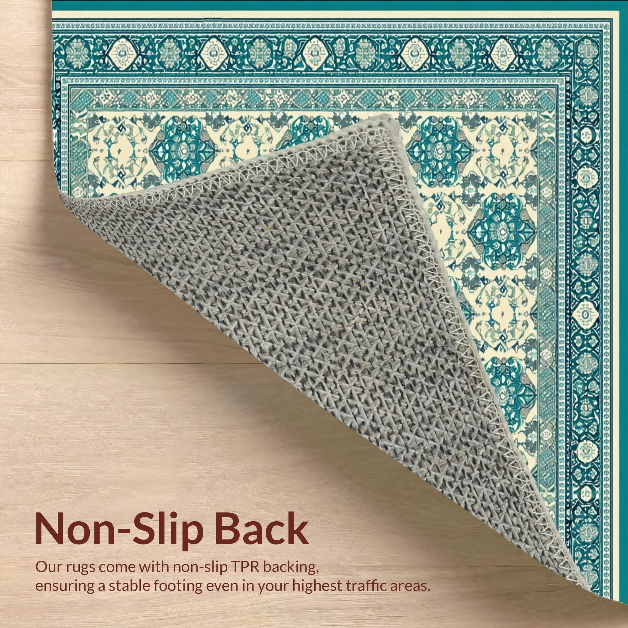 Ultra Soft Area Rug, Non Slip, Stain Resistant, Washable Area Rugs for Living Room, Bedroom, Boho Turquoise Beige Ornate Area(Ivory) Overview: