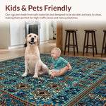 Ultra Soft Area Rug, Non Slip, Stain Resistant, Washable Area Rugs for Living Room, Bedroom, Boho Vintage with Deep Blue and Brown Accents(Blue) Overview: