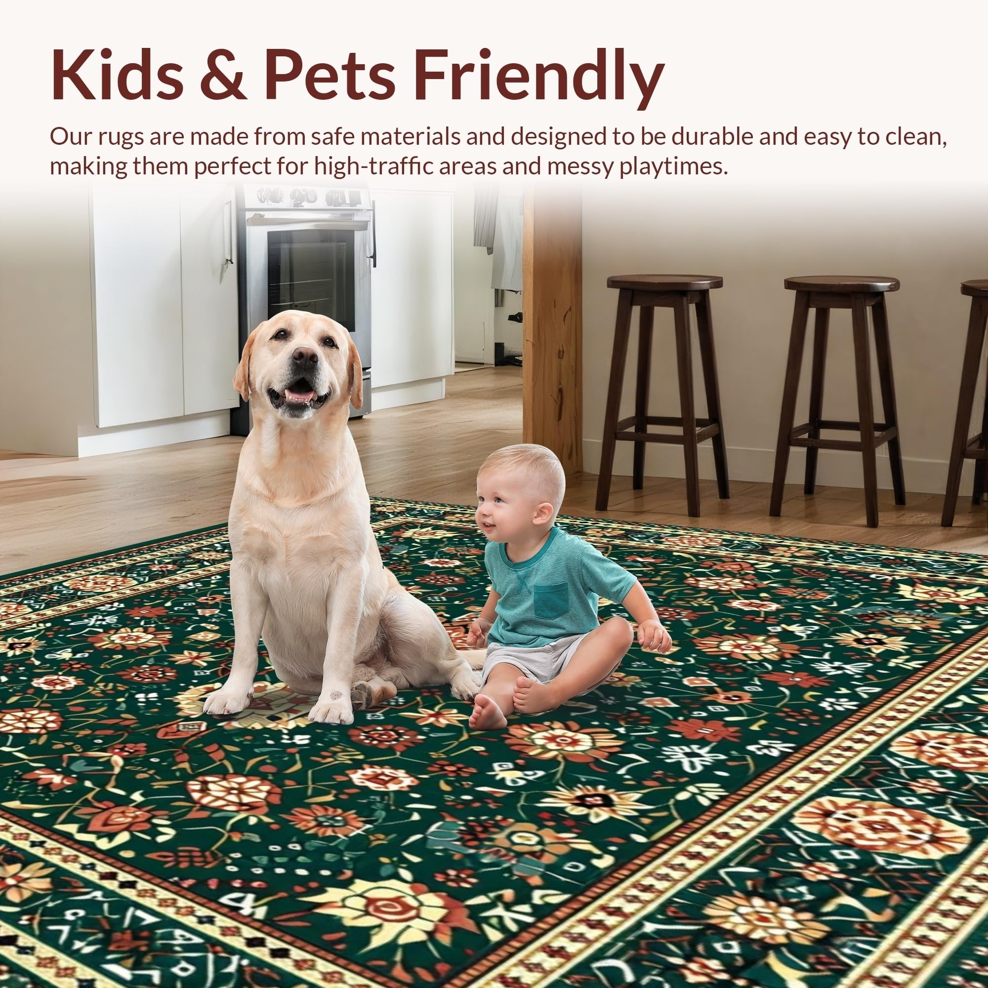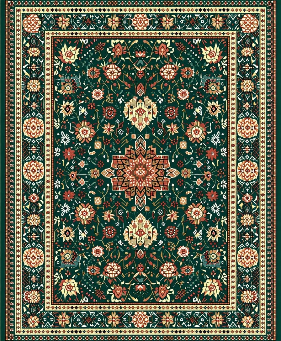 Ultra Soft Area Rug, Non Slip, Stain Resistant, Washable Area Rugs for Living Room, Bedroom, Boho Woven Area(Green) Overview: