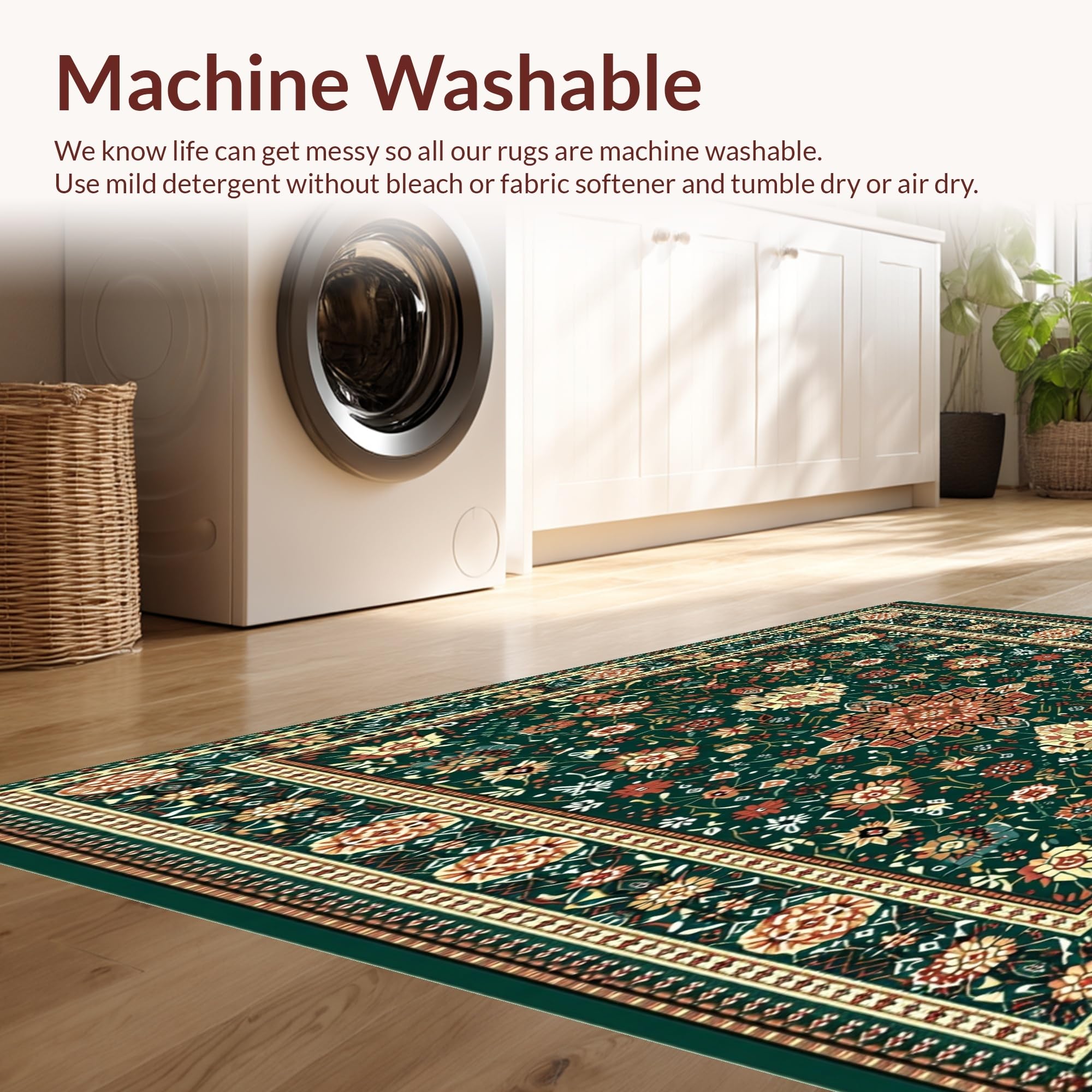 - Machine Washable: Our rugs can be easily thrown in the wash machine.
