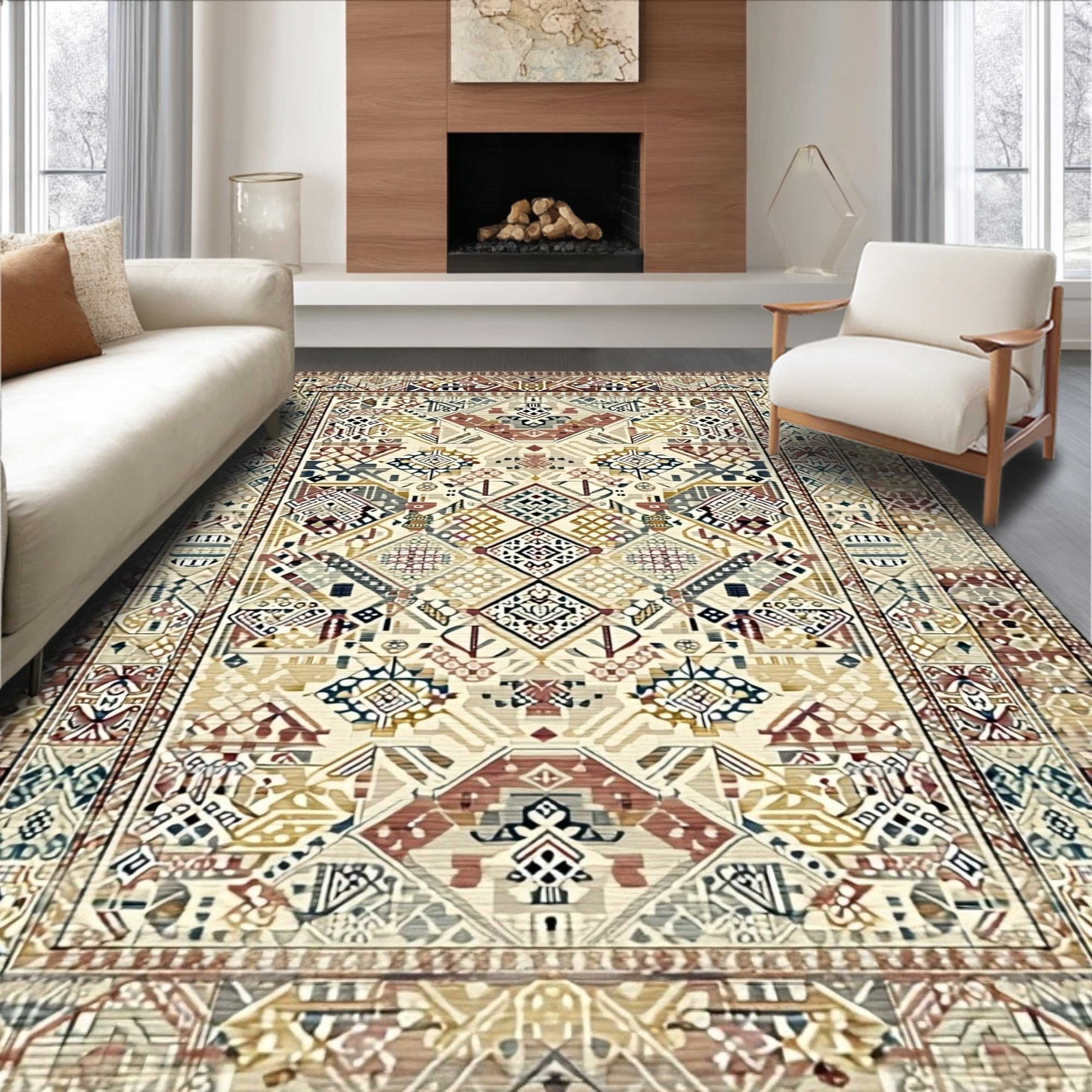 Ultra Soft Area Rug, Non Slip, Stain Resistant, Washable Area Rugs for Living Room, Bedroom, Boho Woven Neutral Area(Beige) Overview: